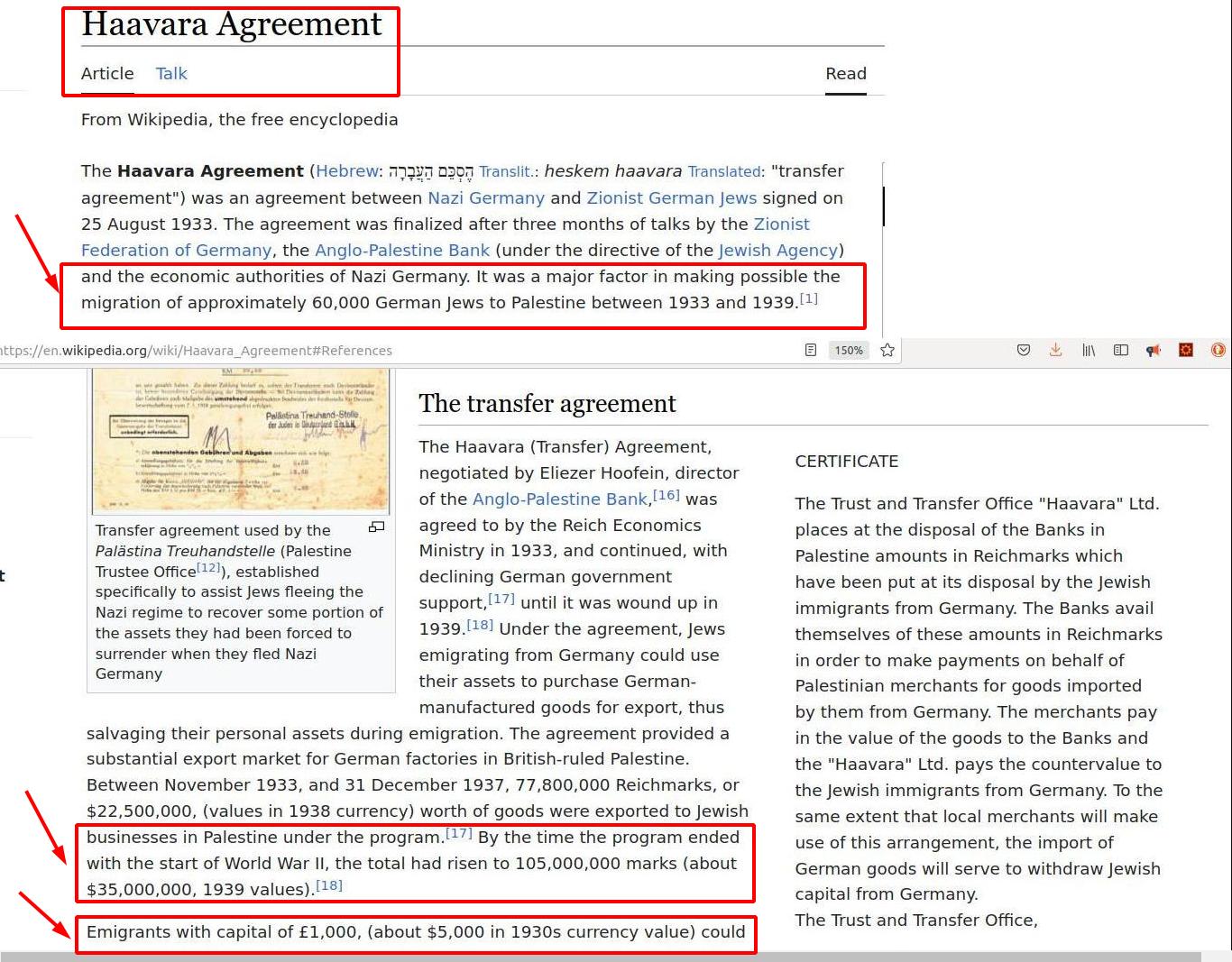 Lie #2: Wikipedia cited Edwin Black's The Transfer Agreement as its source. But when you examine Mr. Black's book on p. 397, you find Mr. Black cites no source. Where did these numbers come from, and how were they calculated? By the way, a softcopy of Mr. Black is available on Archive.org. Most of his work was cited adequately, except for these critical statistics.