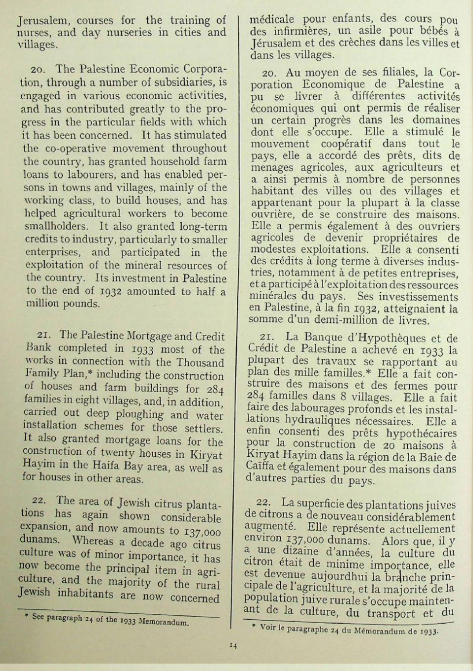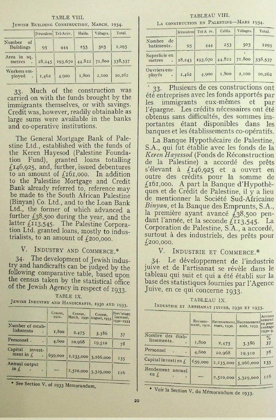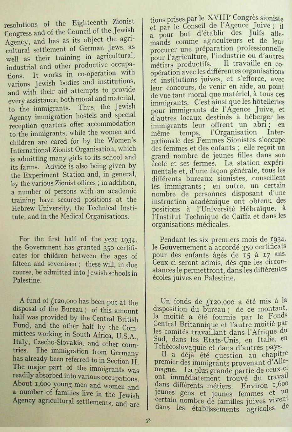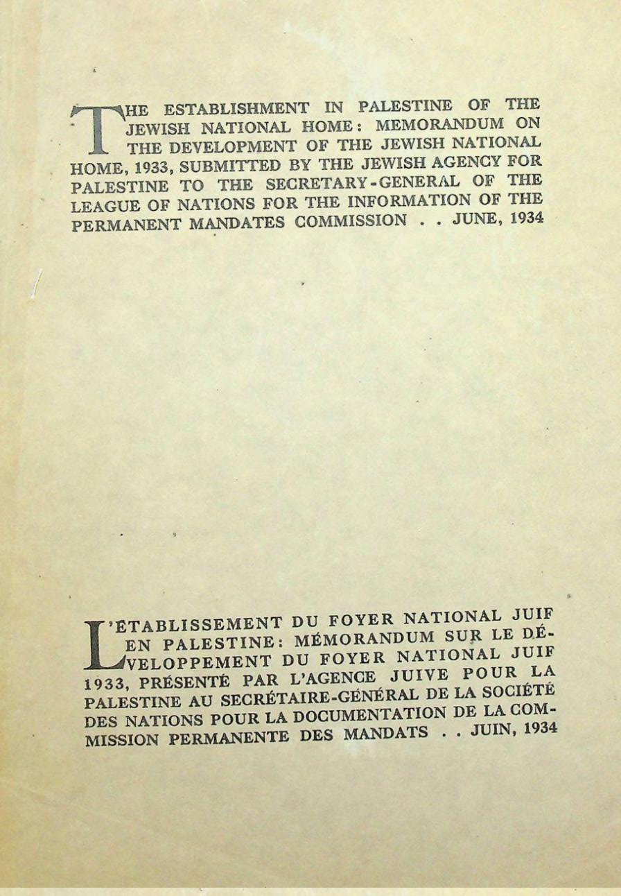 The Establishment in Palestine of the Jewish National Home For Year 1933 by the Jewish Agency Of Palestine