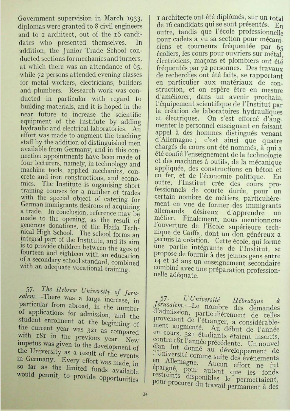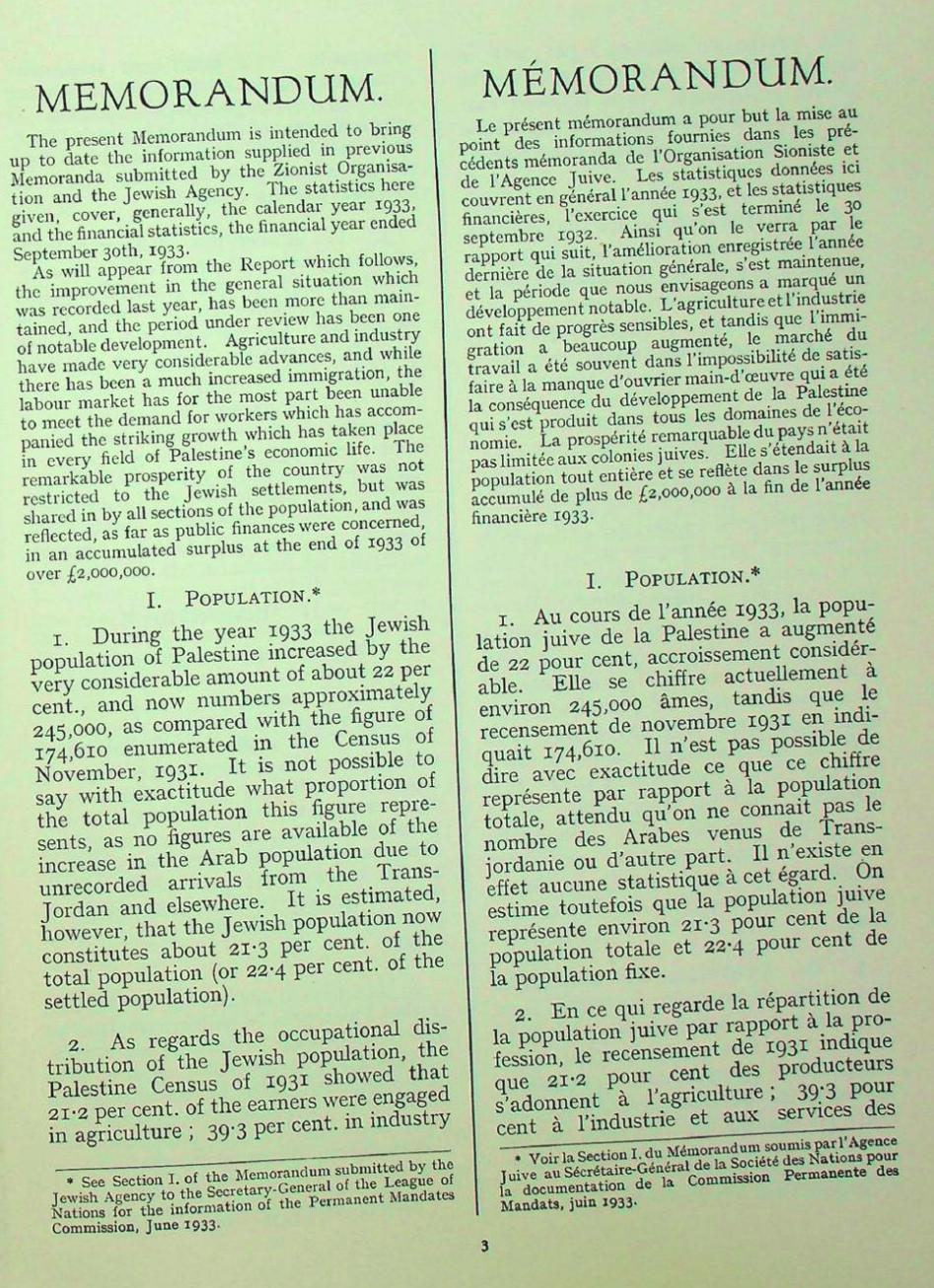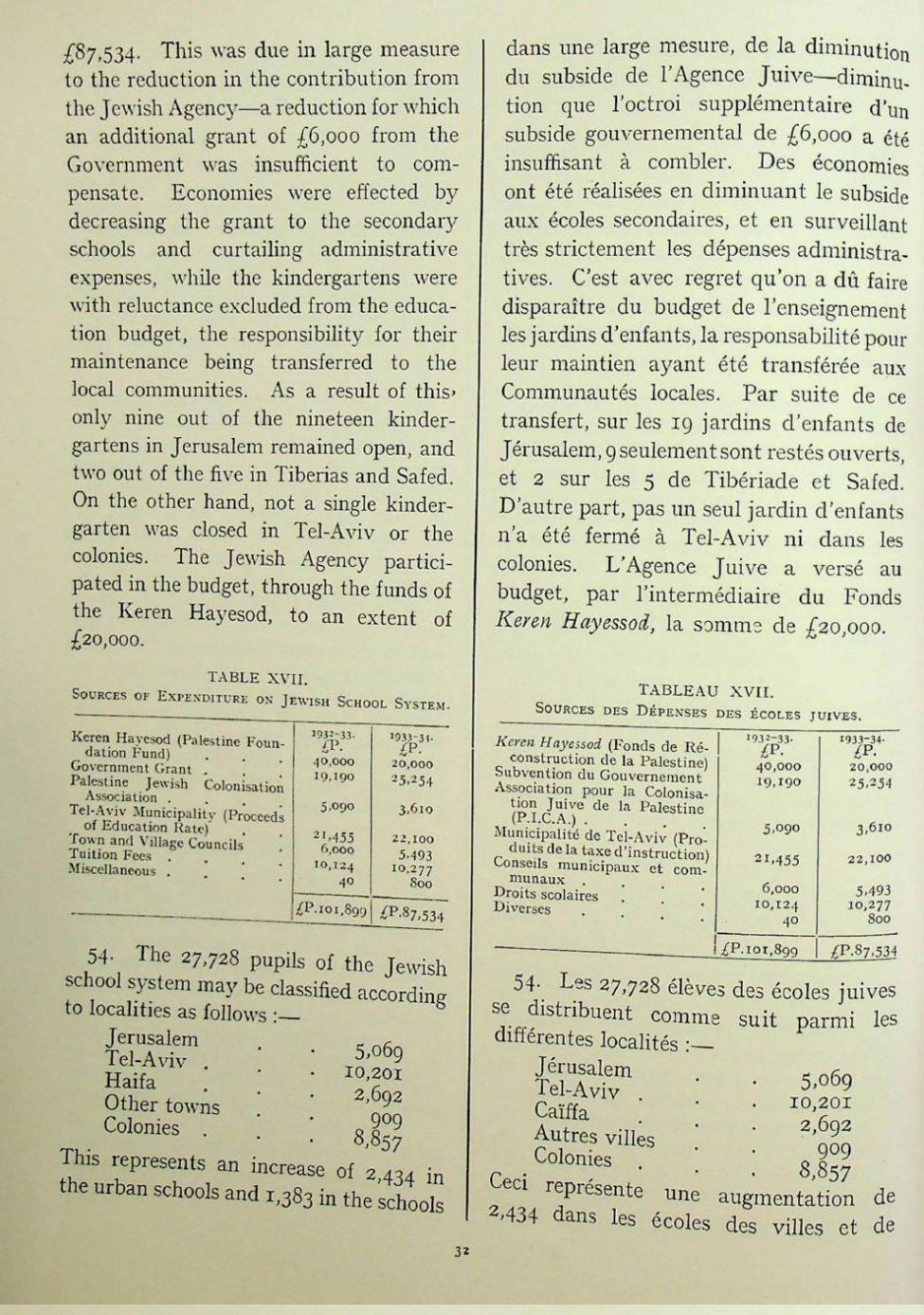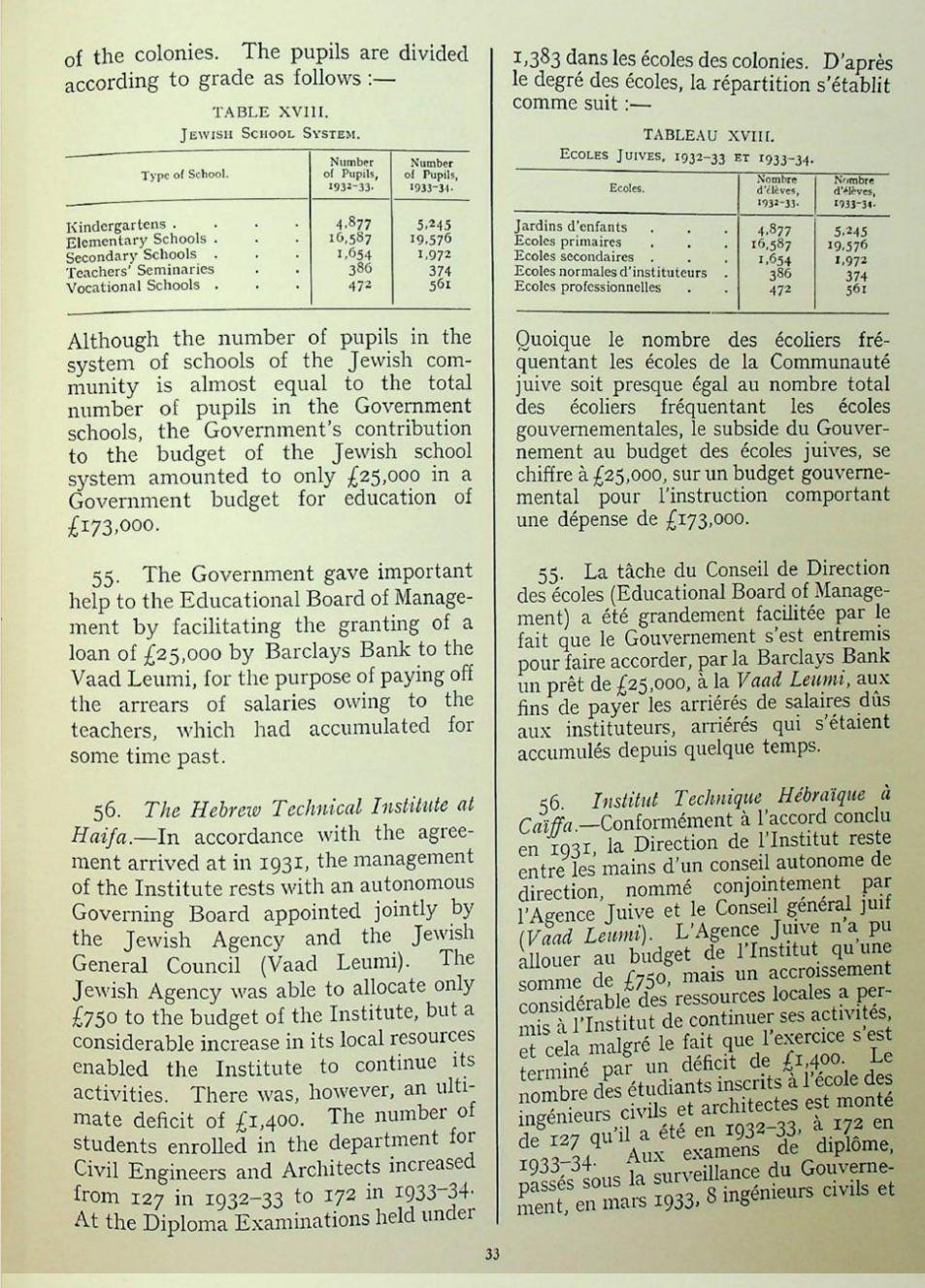 The Establishment in Palestine of the Jewish National Home For Year 1933 by the Jewish Agency Of Palestine