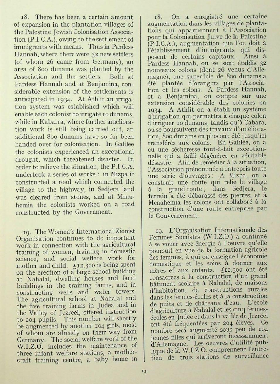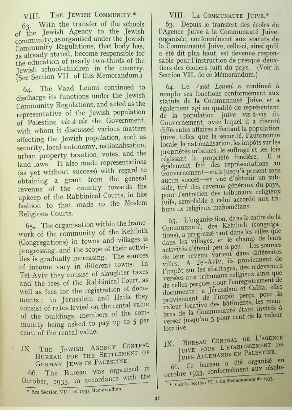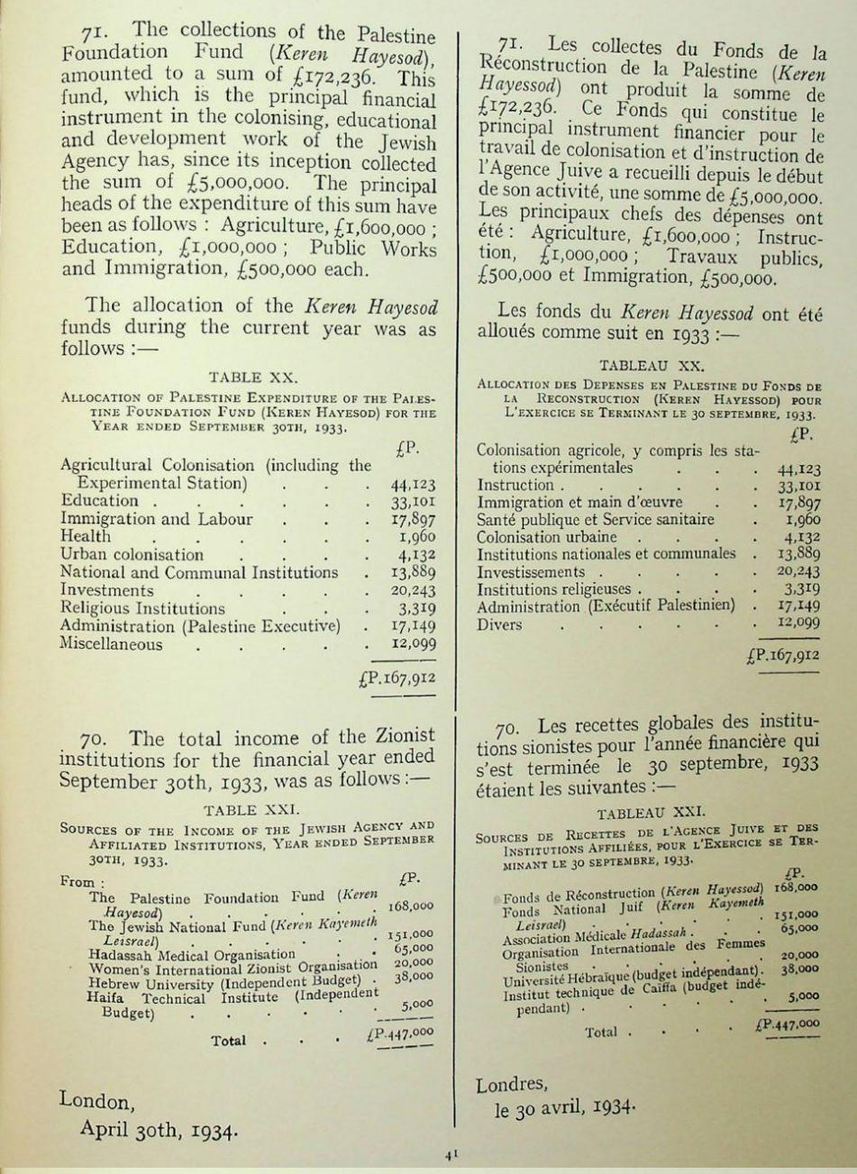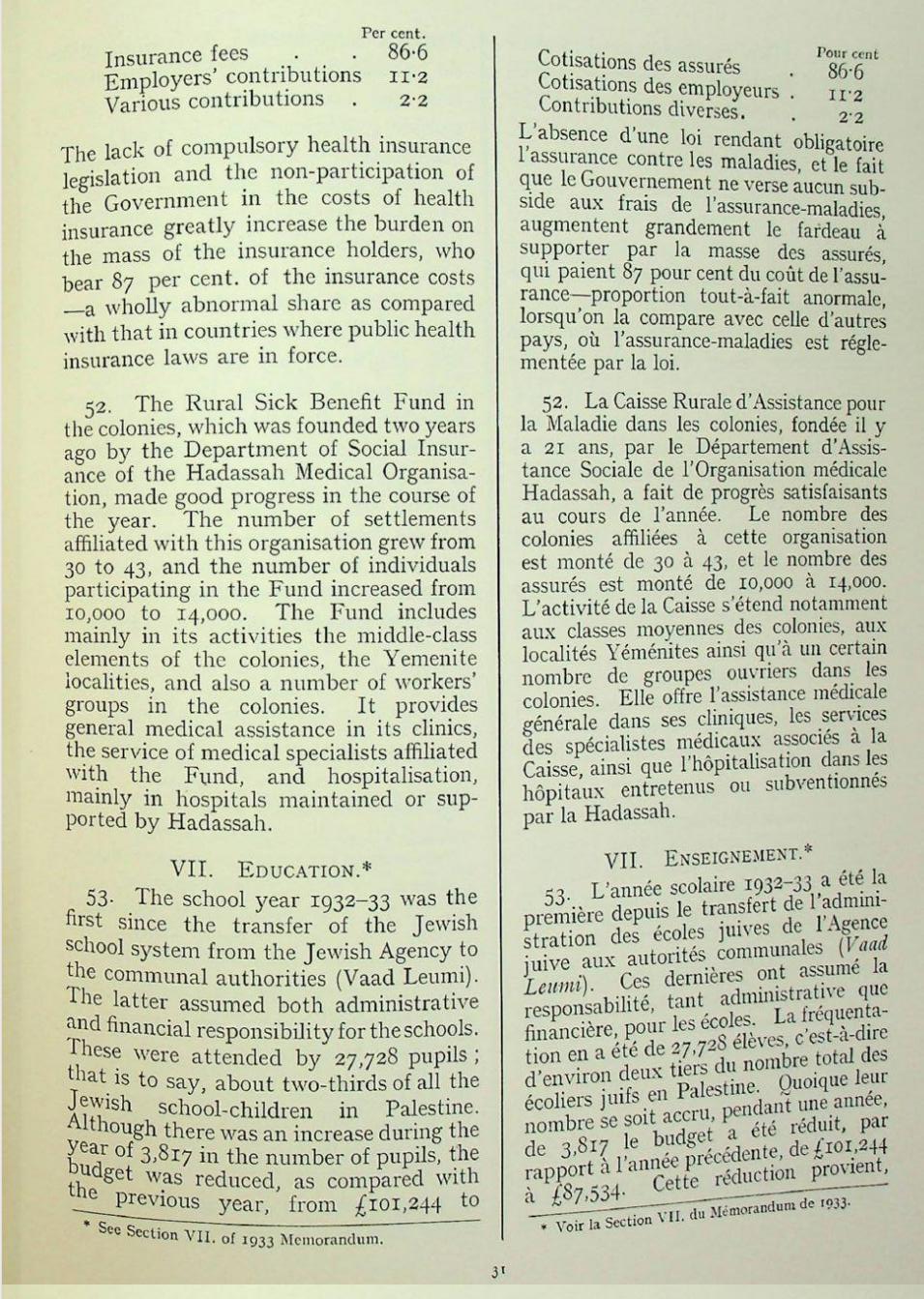 The Establishment in Palestine of the Jewish National Home For Year 1933 by the Jewish Agency Of Palestine
