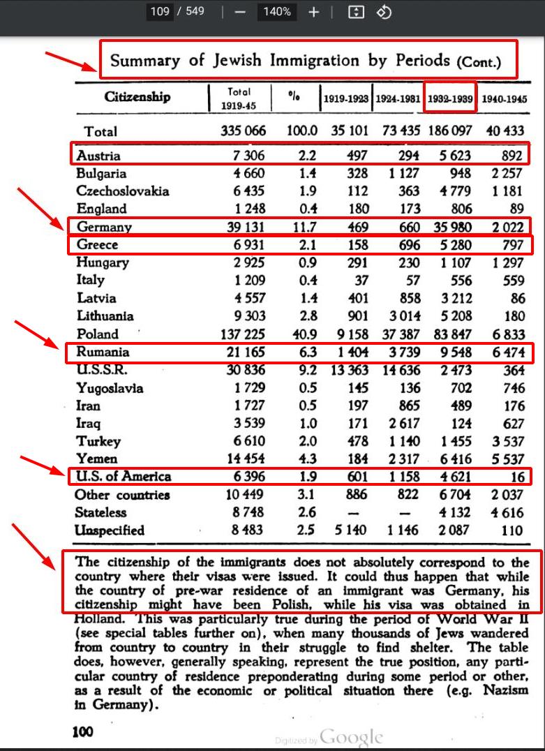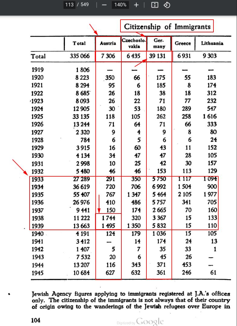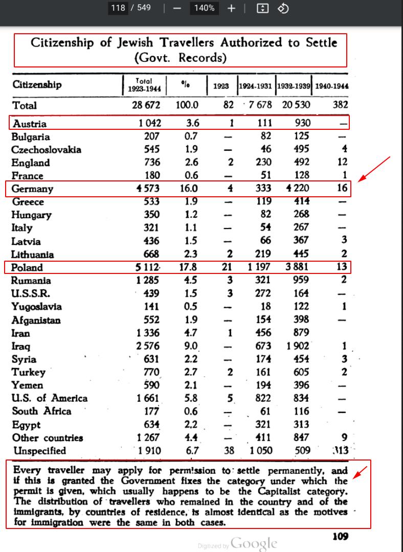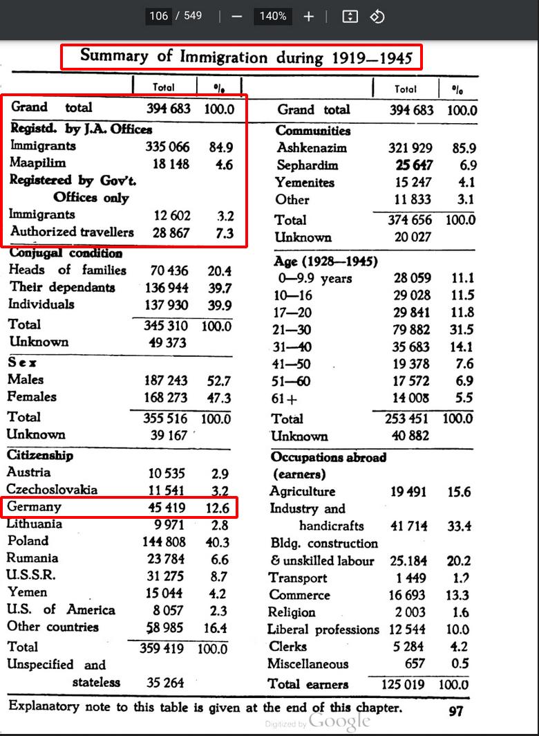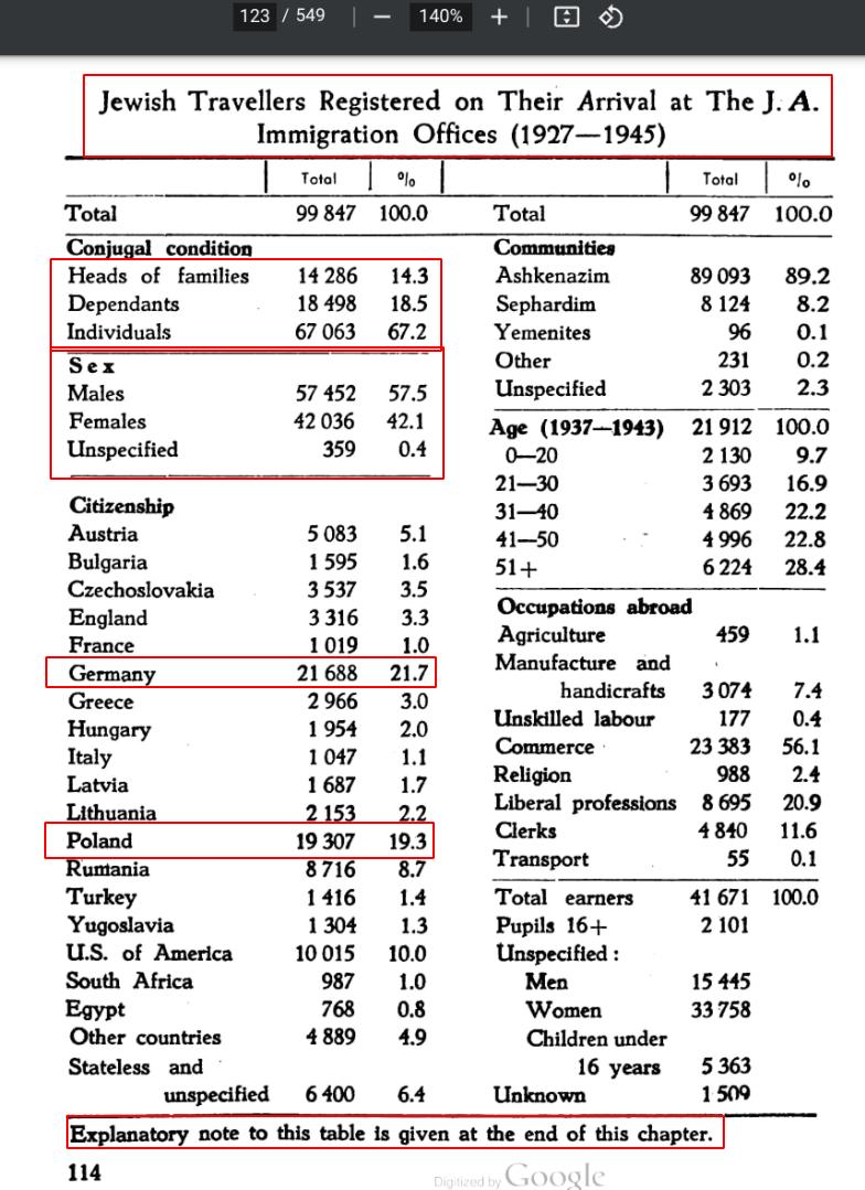 Statistical Handbook Of Jewish Palestine For 1947 by The Jewish Agency --- Immigration (Aliya) |