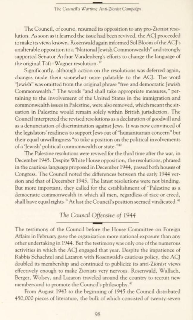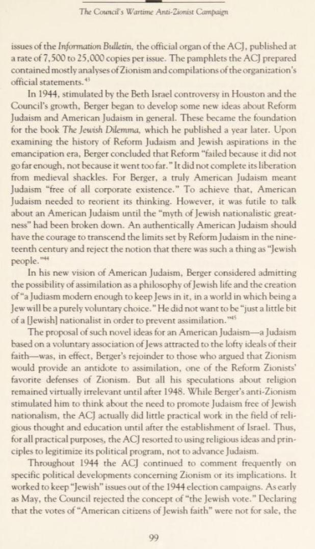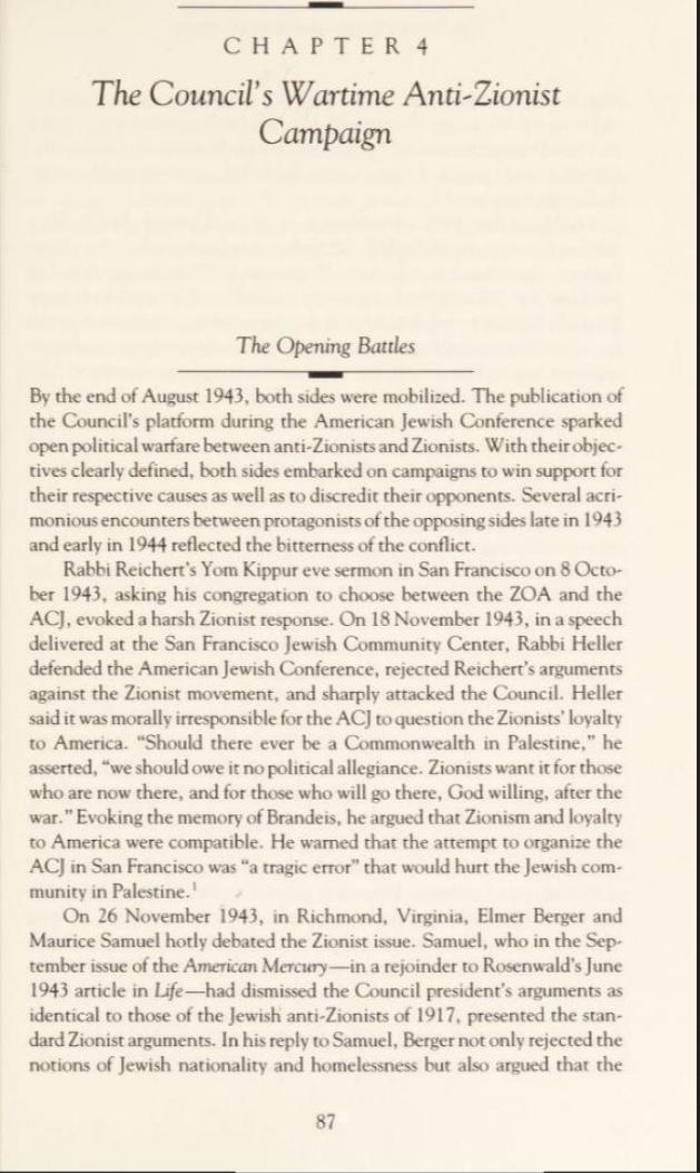 Jews against Zionism the American Council for Judaism 1942 1948 by Thomas A Kolsky - Chapter 4 |