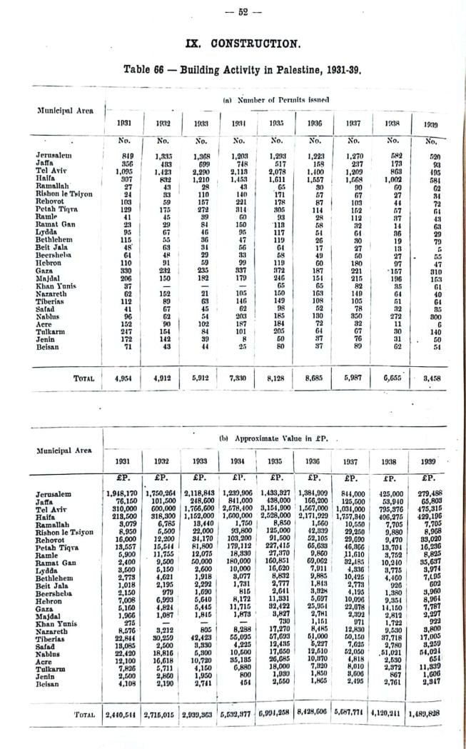 Sourced from Statistical Abstract for Palestine, 1940, pages 52, 53 & 54