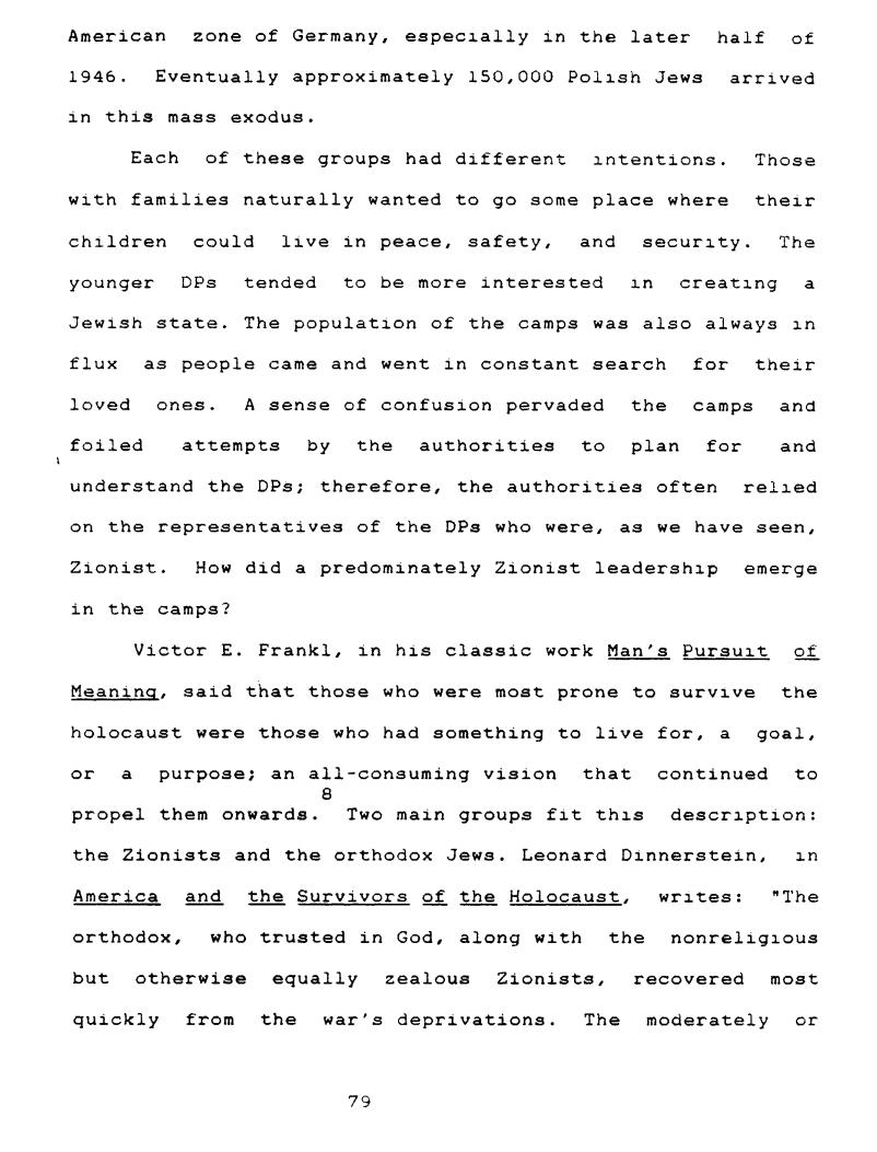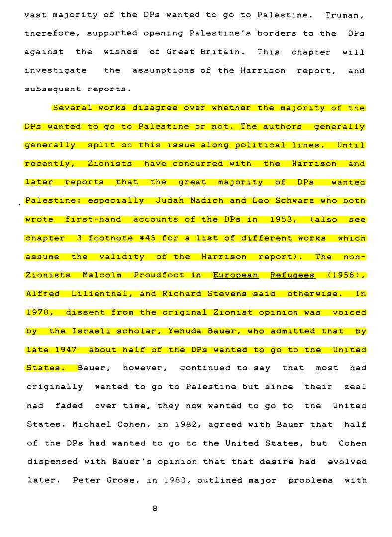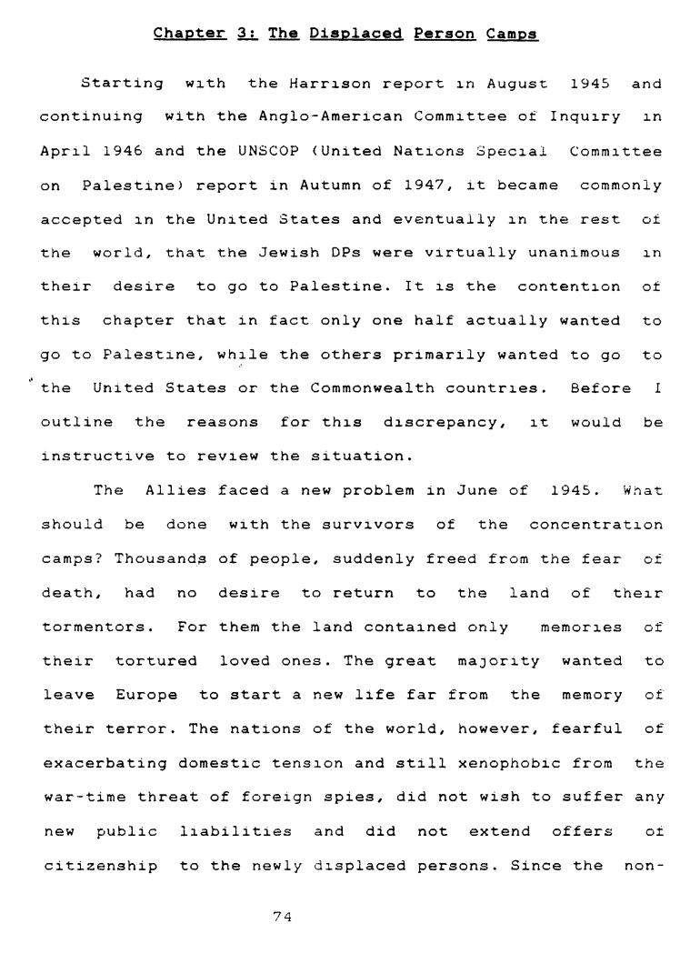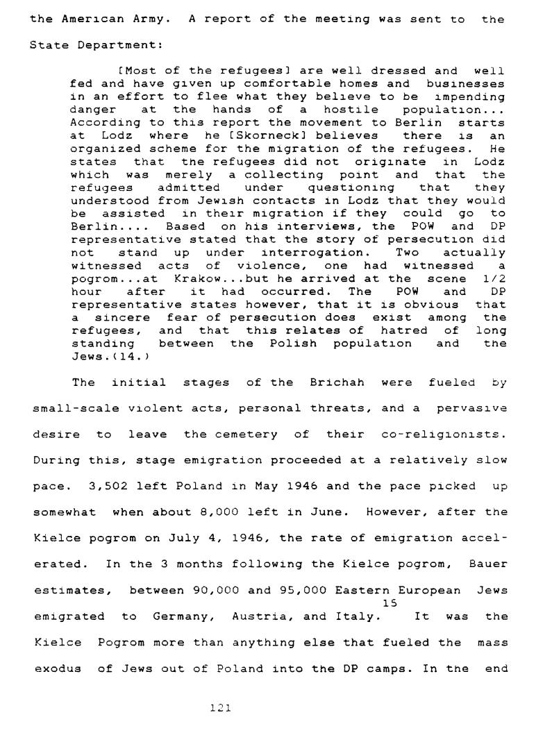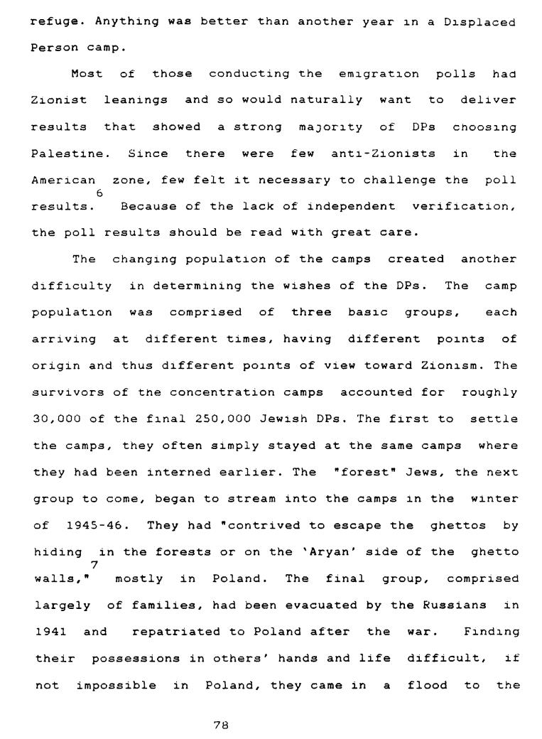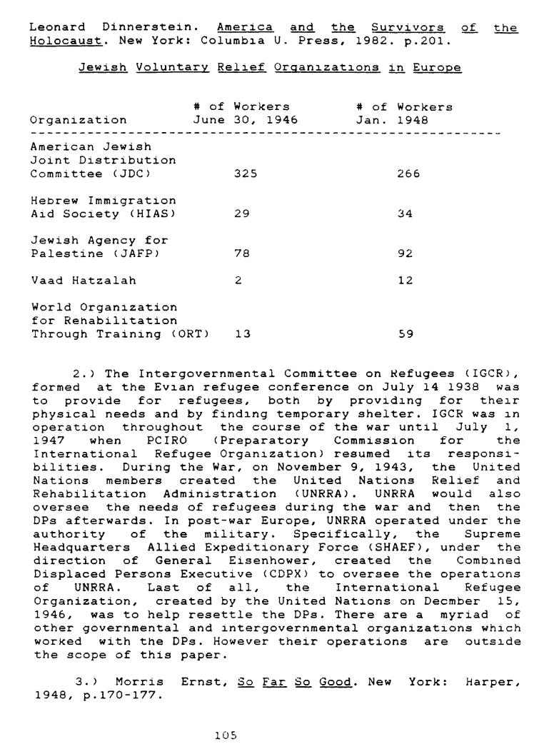 We also found Carolyn M. Lipp thesis to be relevant concerting the refugees who were in the DP camps. The reader my find it helpful.