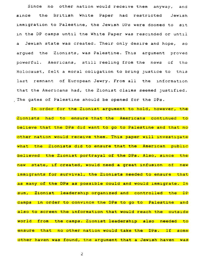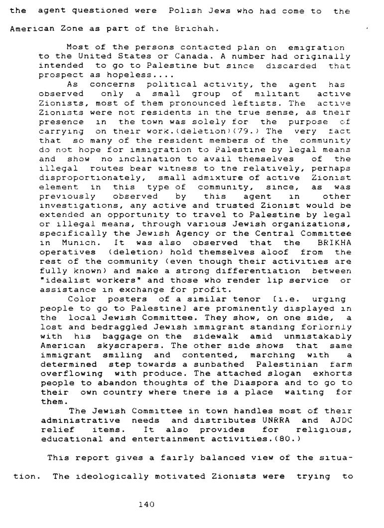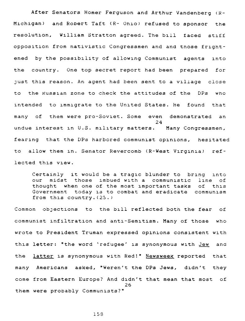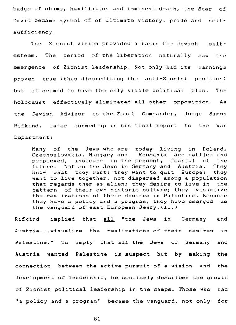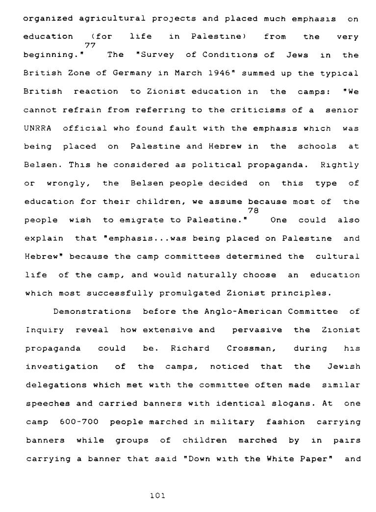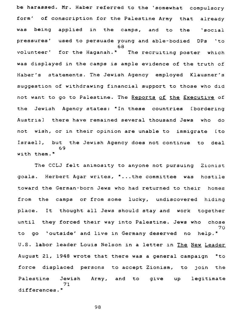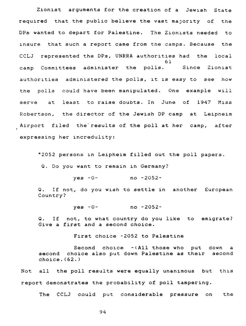 We also found Carolyn M. Lipp thesis to be relevant concerting the refugees who were in the DP camps. The reader my find it helpful.