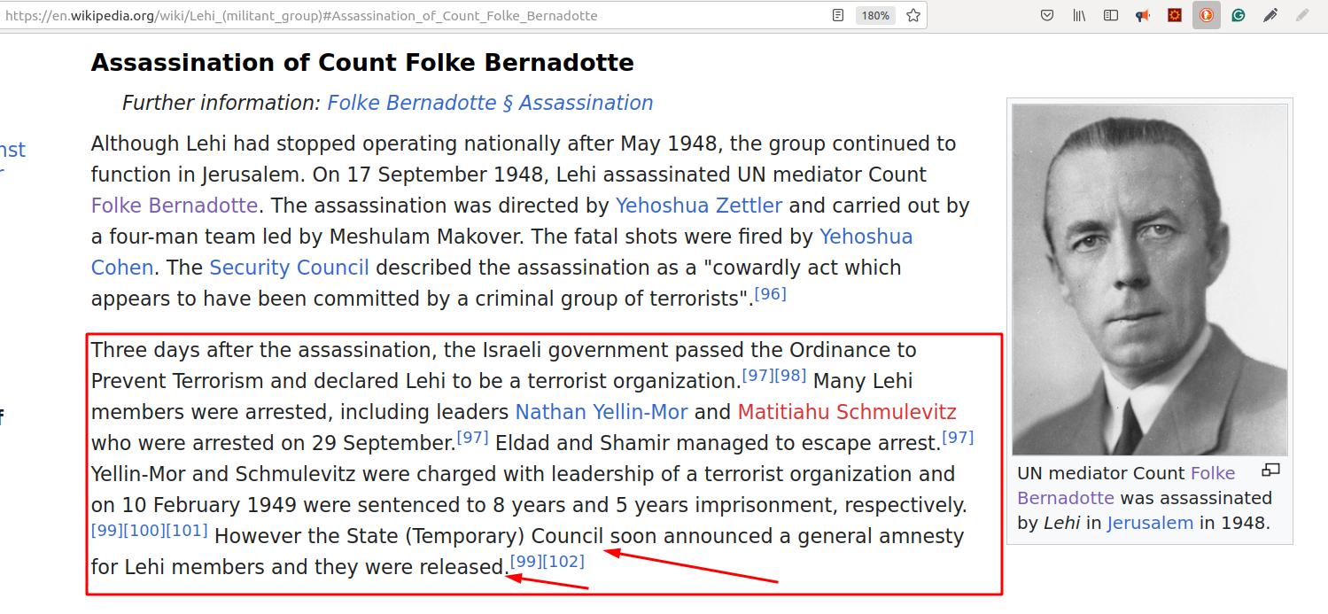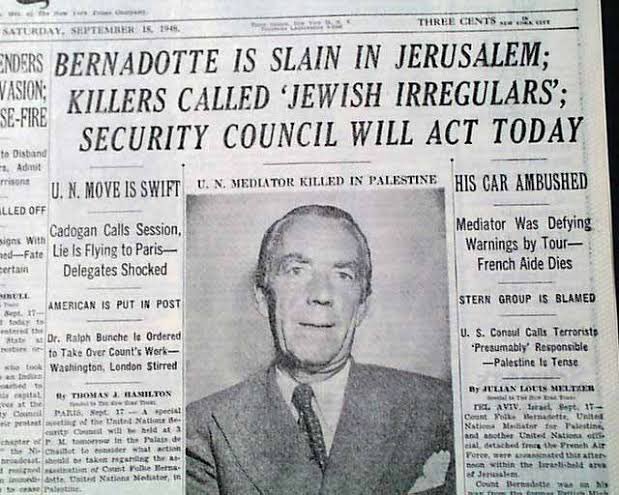 Here's about Lehi's murder for Folke Bernadotte who was one of the heroes of the Holocaust: