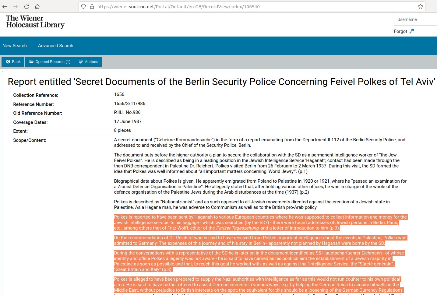 We wonder: why did Zionists' Haganah invite Adolf Eichmann to give them a visit in Palestine in 1937? Here is his own reported, which he filed upon his return to Berlin; thanks for the Holocaust Library for its translation effort: