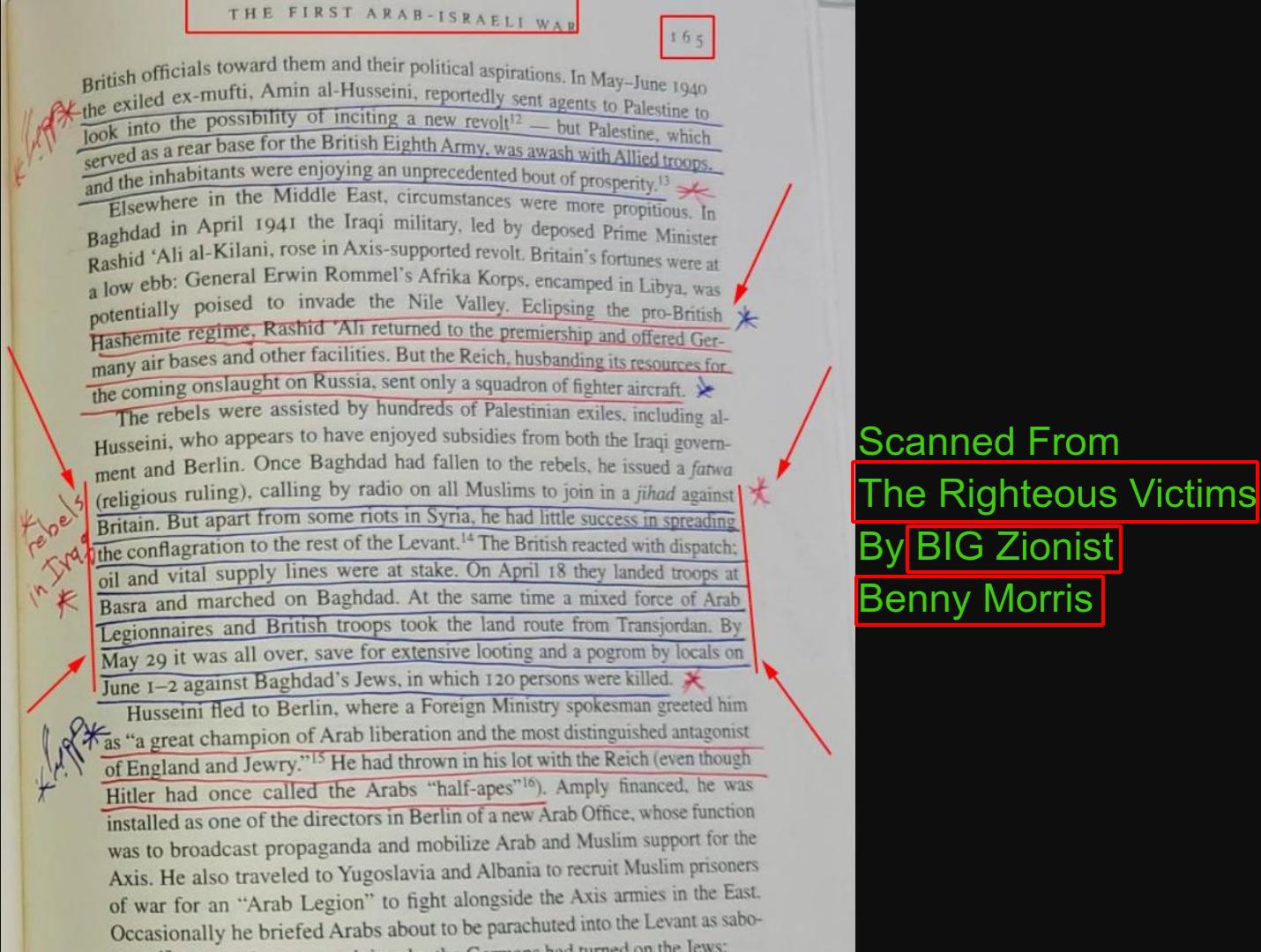 Here is BIG Zionist Benny Morris confirming the prior information: Palestinians and Arabs, in general, didn't heed Mufti's call for Jihad against the allies. For those who don't know Mr. Morris, he is a renowned Israeli historian who is a known apologist for Zionism who regrets that Nakba wasn't complete during the 1948 war: