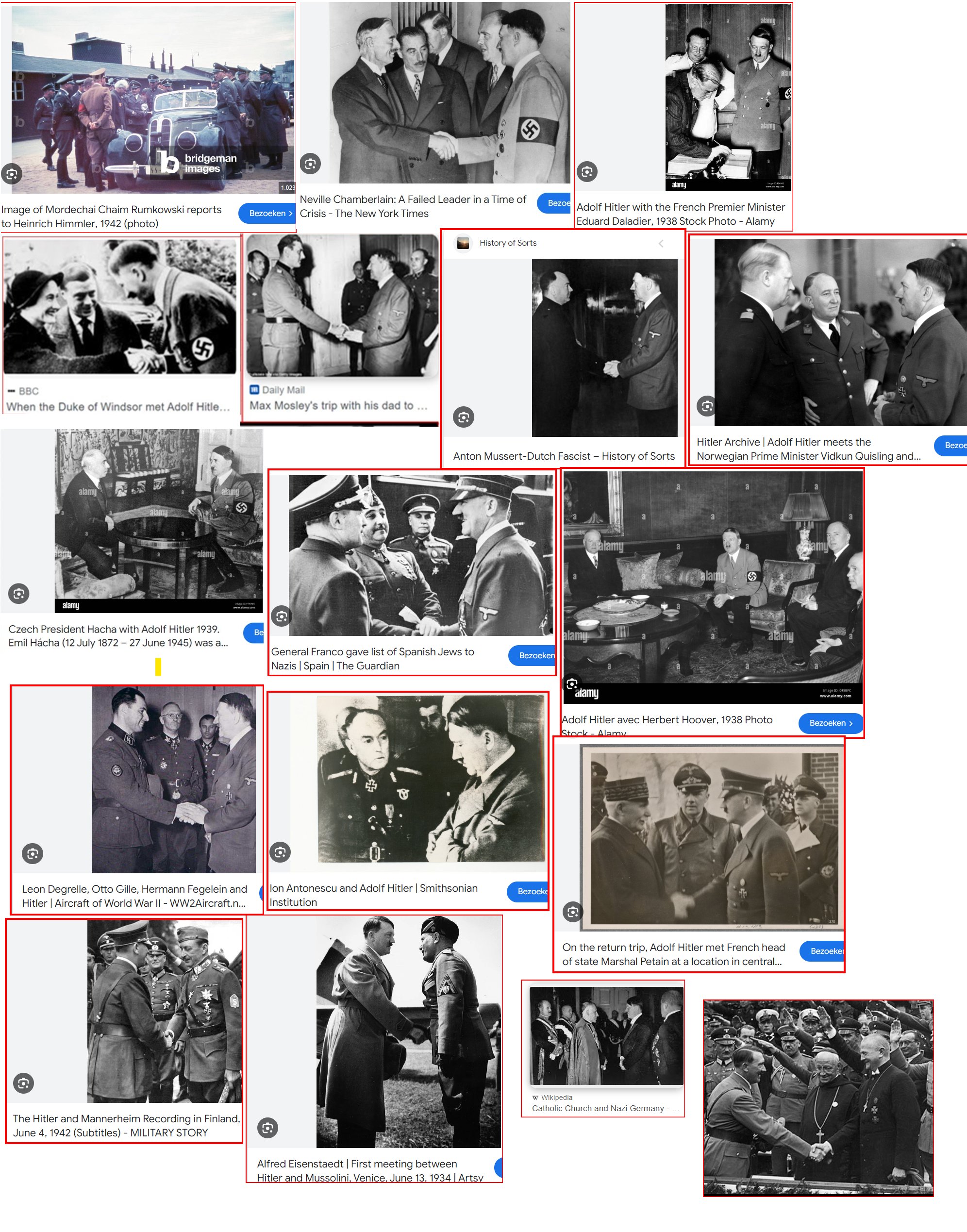 When someone shares Mufti Haj Amin's pictures with Hitler, please remind them of those European leaders who were fond of meeting Hitler as well. It should be noted that much of European nations openly sided with the Nazis before and during WWII. Aside from Greece, Yugoslavia, and Great Britain, everyone else made arrangements with the Nazis. Sadly this includes the Soviet Union (with Molotov–Ribbentrop Pact) and England (when GB handed Czechoslovakia to Hitler), too: