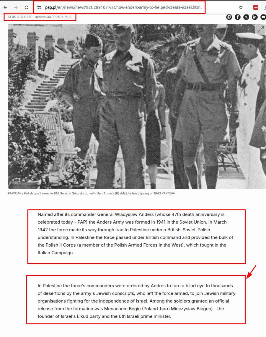 when the Polish Anders Army made it to Palestine to fight the Nazis, many of the Zionist Polish Jews (mostly made up of Revisionists; Menachem Begin was one of them) opted to fight the British and deserted the Polish Army! YES, ladies and gentlemen, during the greatest moment in Jewish history, fighting the Nazis in North Africa and Italy was left for the Gentiles! Jewish historians and intellectuals still paint these events as if they were pure valor when they were the exact opposite: