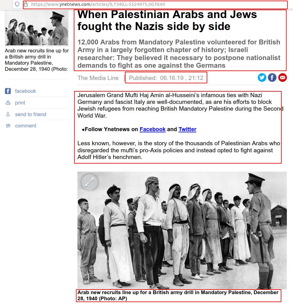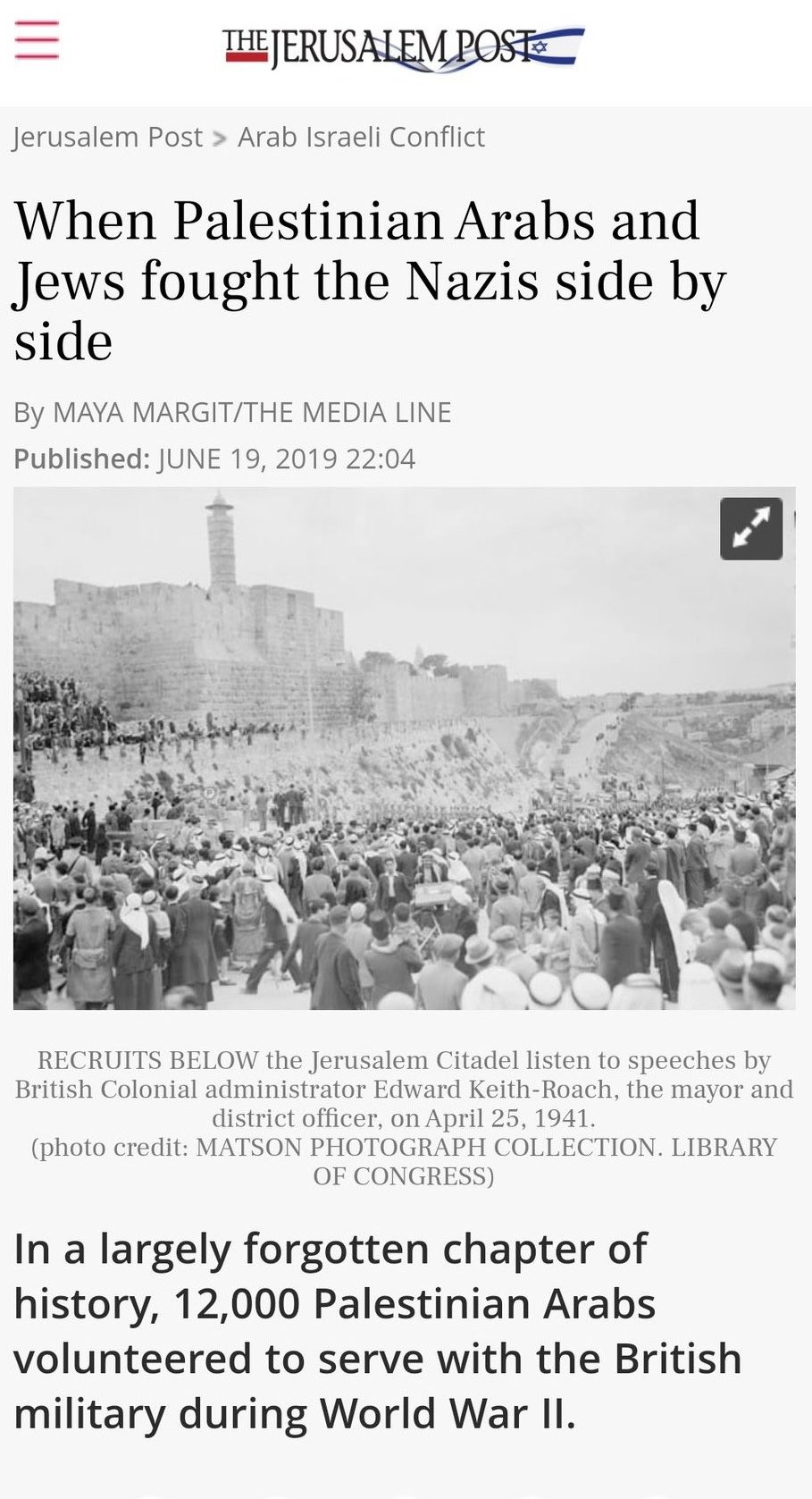Here is more on Palestinians service during WWII from the Israeli newspaper Yudo'ot Ahranut's English website: