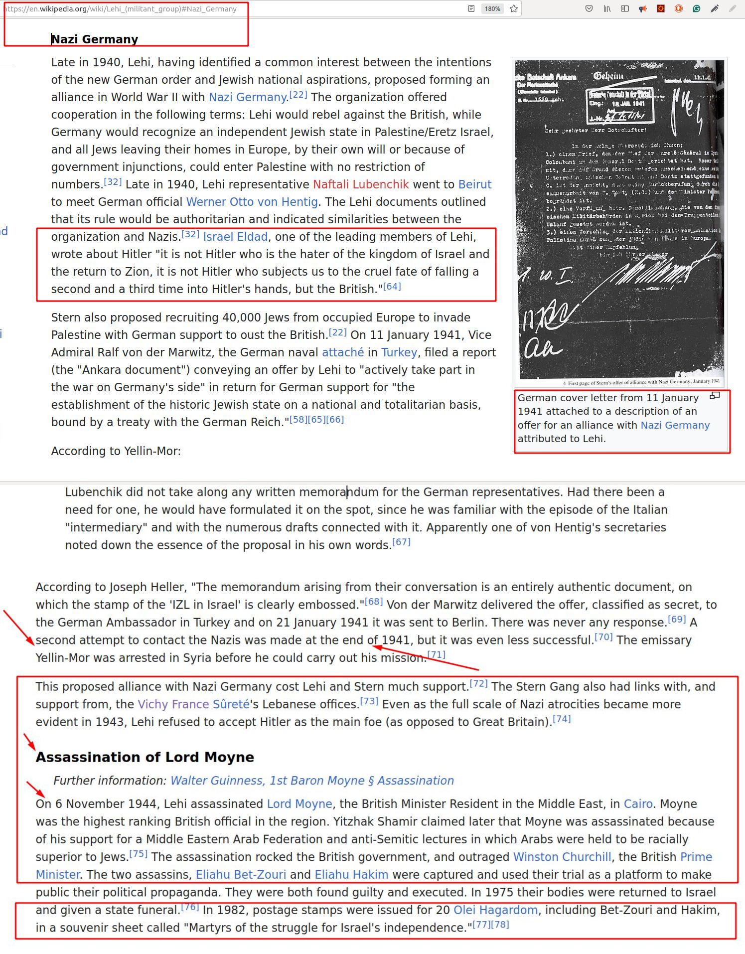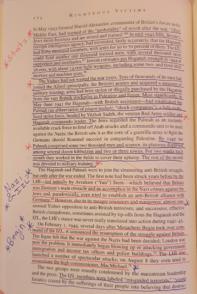 Here is what the renowned big Zionist historian, Benny Morris, had to say about Zionist Jews' contributions to defeating Nazism during WWII (see Righteous Victims, p. 176). Pay attention to A) how Benny framed Zionist Jews' fake valor as if Zionist Jews were conducting an legitimate insurgency against British occupation (yes,, not Nazis the Nazis bu the British occupation) of "their country". Keep in mind this happened while Zionists' families were being gassed in Poland during the "brave insurgency." B) Notice how Benny cited that tens of thousands of the yishuv joined the British Army during the war, but purposely, he implied they were deployed to the fronts who saw any action against the Nazis (which can not be further from the truth; the exact opposite)! This framing of the events is typical of Zionists; they often flip the English language on its head (the same thing they do for the words of peace and indigenous). For the love of God, cowardliness has become valor. Anyhow, notice too how in the first half of the page, how Benny admitted that close to 50,000 of the yishuv were already armed and ready to fight; but not the Nazis! That said, only a few of them saw action, and that by itself speaks volumes for their fake valor. C) Benny cited how the Haganah stole arms from the British during the war; OK, did the yishuv use the arms to fight the Nazis, or against their real enemy: those evil Arabs? D) Notice how Mr. Morris shamelessly framed Zionists' bombing of WWII war efforts (in the 2nd half of the page) as if it was in self-defense! From whom there was any danger, the Nazis, or the Arabs who fought the Nazis? For the records, not for the British army much of the yishuv would have been died if Erwin Rommel was able to make it to Palestine in the 1942, which was a real possibility at the time. This was Hasbarah on steroids: