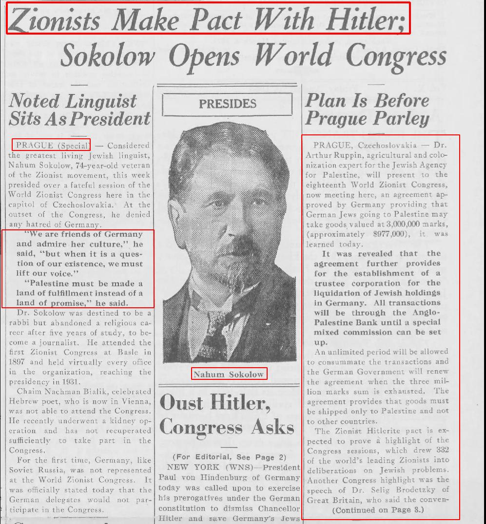 Here is the best example of Catastrophic Zionism at its worst: Zionists often spoke of the Holocaust decades before its time. What did Zionist do to confront it? They were the FIRST to normalize trade with the Nazis. Mazeltov Jews, now give yourselves a big hand: