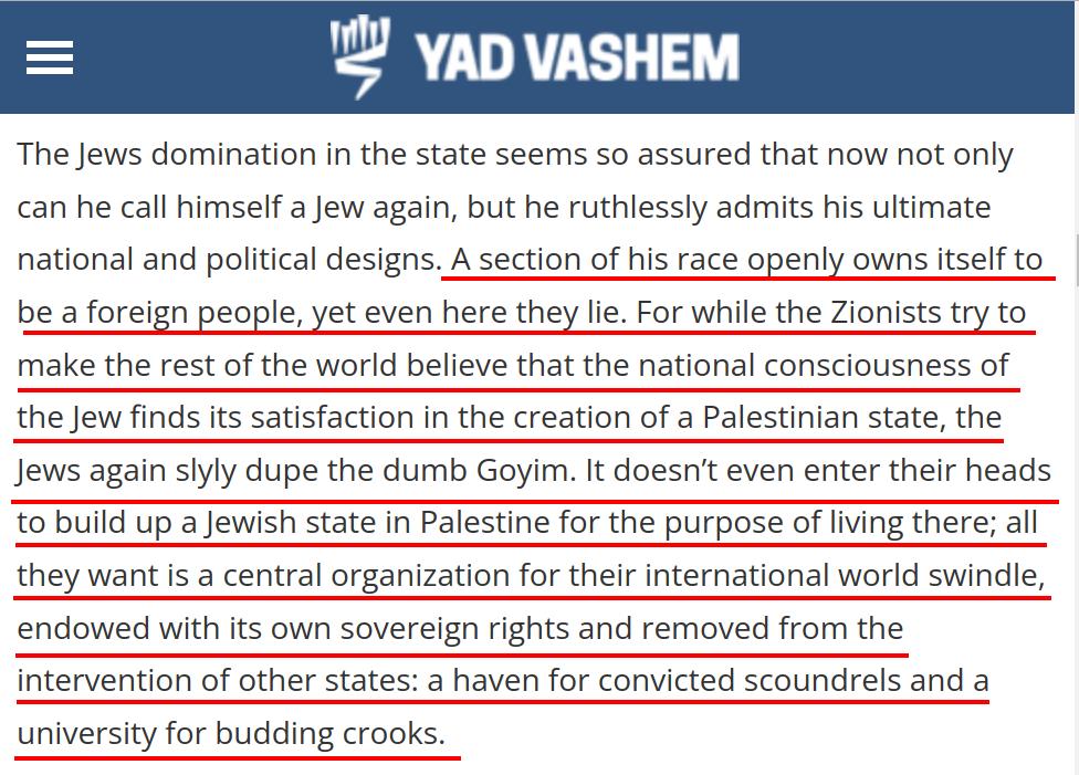 Here's Hitler's Version of "The Jew". Now, Contrast It With Today's Zionists. Extracted From Yad Vashem