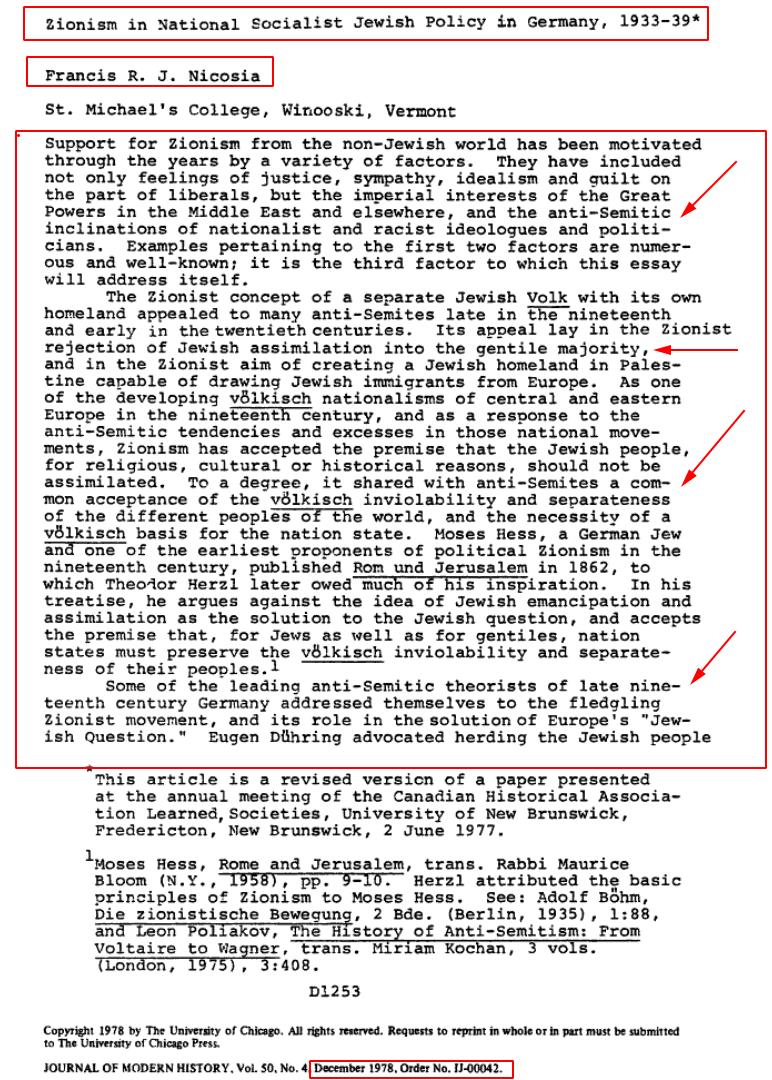 In a couple of small sentence, the renowned Zionist apologist, Prof. Francis Nicosia, explain in layman terms why the so called western liberals, fascists and antisemites were flocking to support Zionism from the get go: