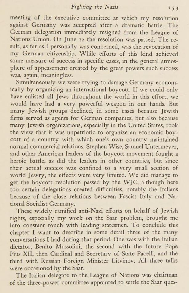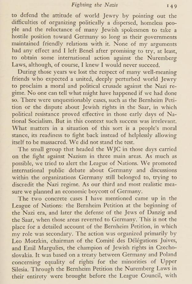 Haavara FAQs: Review of Autobiography by Nahum Goldmann, Chapter 13 -- Fighting the Nazis |