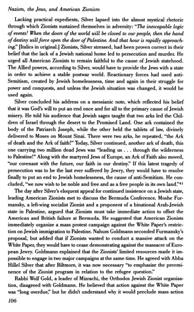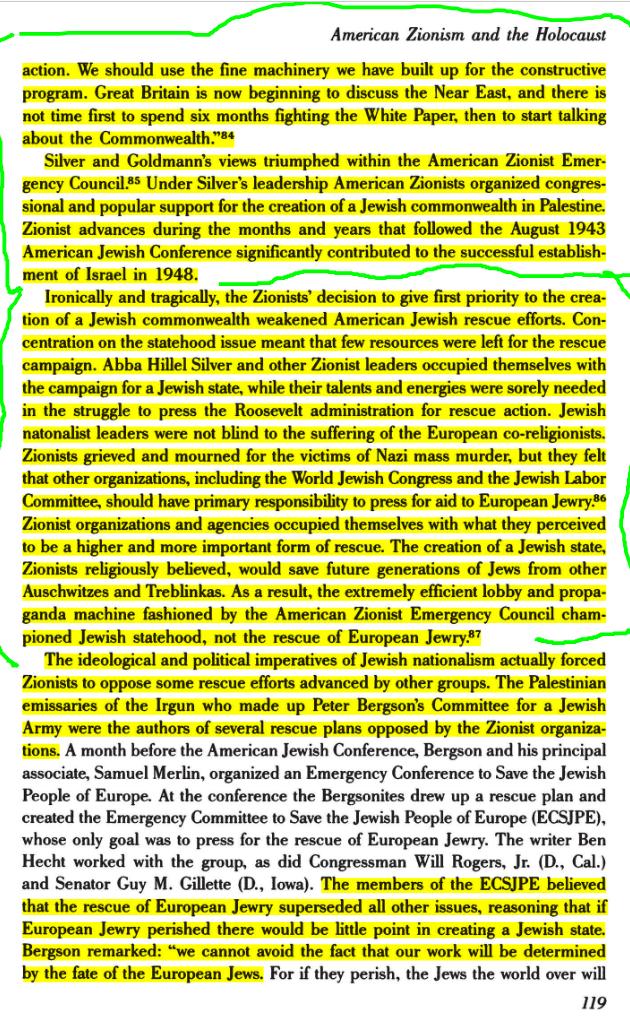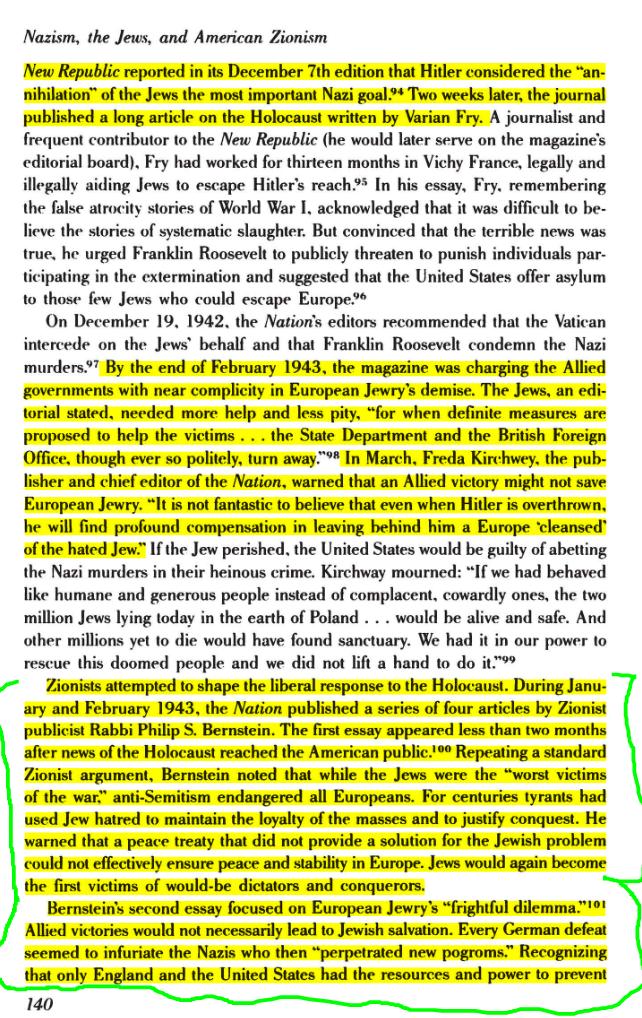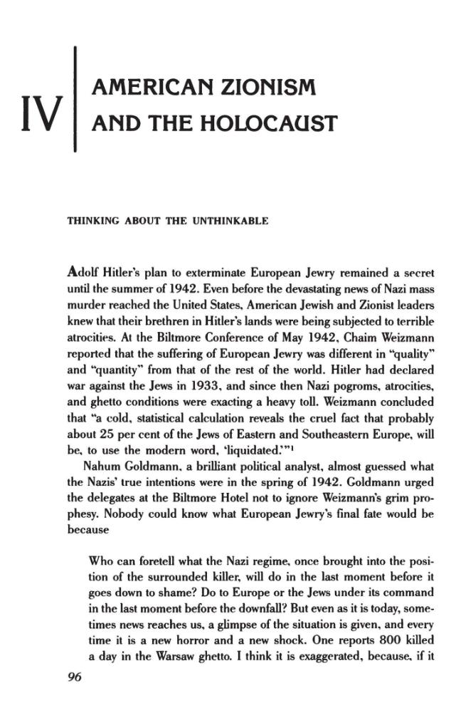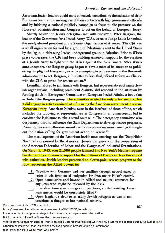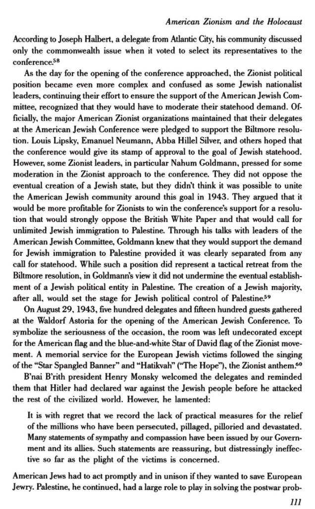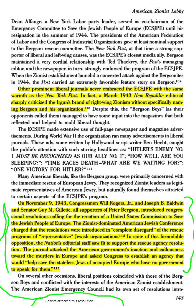 - Pay attention to how the author, Aaron Berman, blamed FDR and Churchill for the Holocaust, but he gave a free pass to his Zionist buddies. Why blame the Gentiles when American Jewry was passive in the best-case scenario? Notice how Mr. Berman, too, was fixated on Palestine as the only haven for Europe's Jews but ignored that they could have been saved in other places. For example, in his country, the United States, or in Latin and South America, where tens of thousands were saved. Most importantly, Mr. Berman said nothing about FDR's War Refugee Board which saved hundreds of thousands of Jews; this happened while American Jewish leaders were lobbying against it! It should be noted that this policy persisted even after WWII ended in the DP camps, which he completely ignored in his book. If Mr. Berman did, most likely he would have been canceled, like what happened to Hannah Arendt in 1963. For those who care, American Jews investigated many of the points we have highlighted in 1983, and they were nixed: