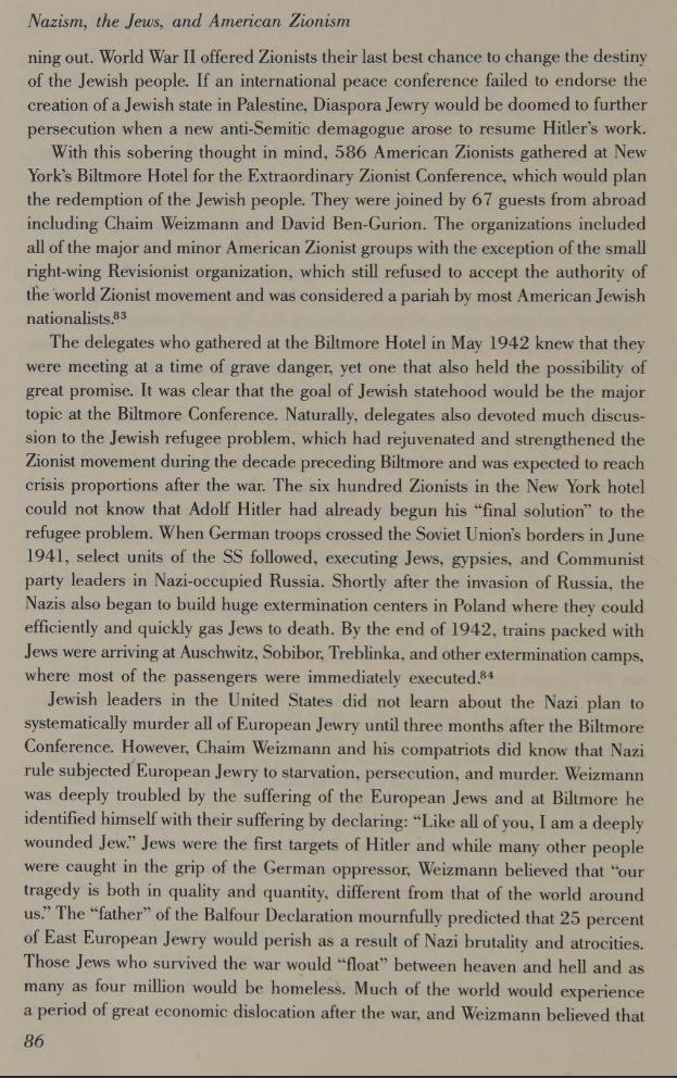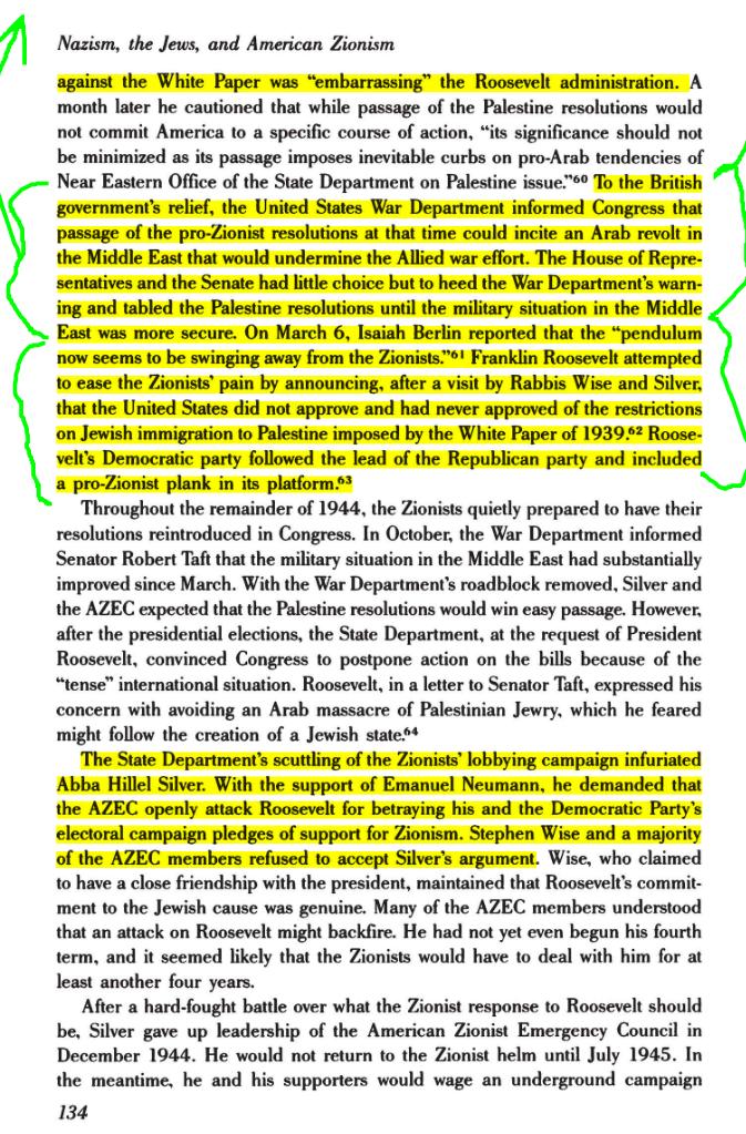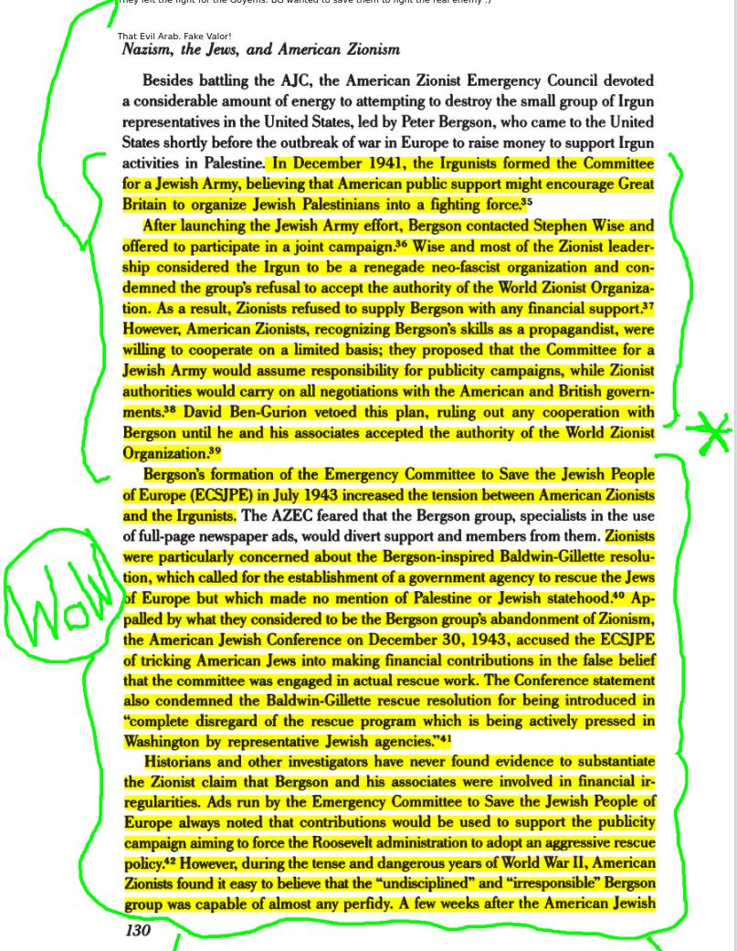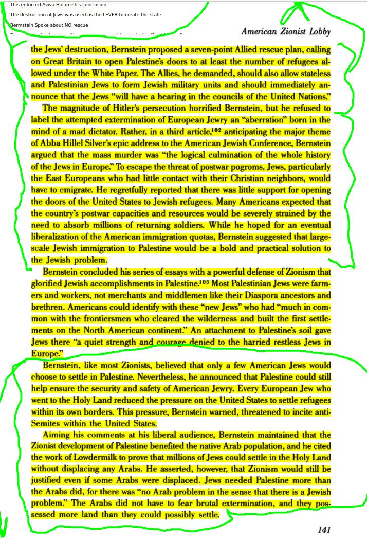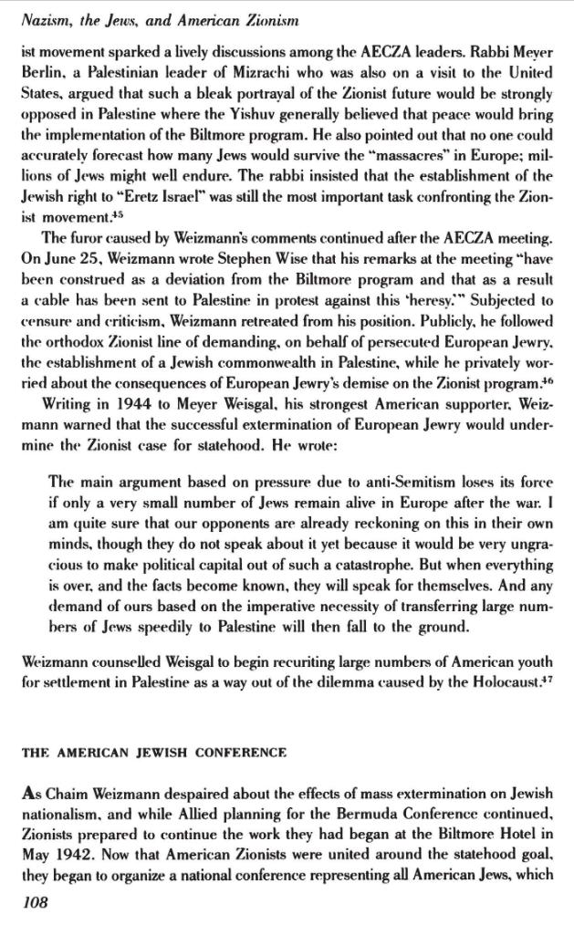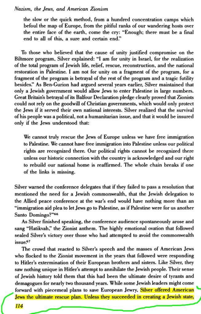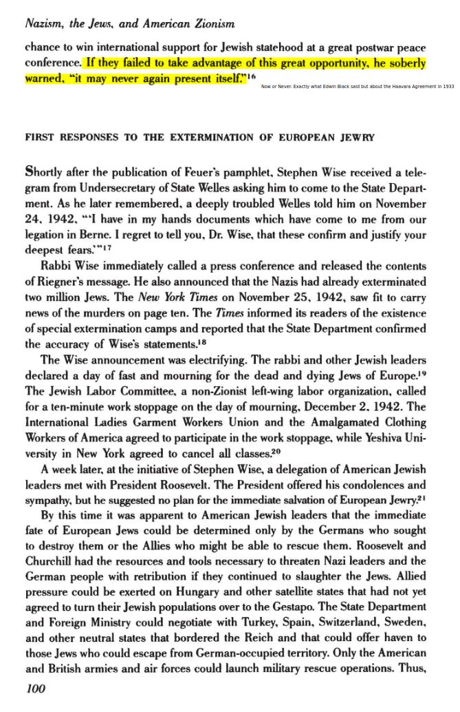 - Pay attention to how the author, Aaron Berman, blamed FDR and Churchill for the Holocaust, but he gave a free pass to his Zionist buddies. Why blame the Gentiles when American Jewry was passive in the best-case scenario? Notice how Mr. Berman, too, was fixated on Palestine as the only haven for Europe's Jews but ignored that they could have been saved in other places. For example, in his country, the United States, or in Latin and South America, where tens of thousands were saved. Most importantly, Mr. Berman said nothing about FDR's War Refugee Board which saved hundreds of thousands of Jews; this happened while American Jewish leaders were lobbying against it! It should be noted that this policy persisted even after WWII ended in the DP camps, which he completely ignored in his book. If Mr. Berman did, most likely he would have been canceled, like what happened to Hannah Arendt in 1963. For those who care, American Jews investigated many of the points we have highlighted in 1983, and they were nixed: