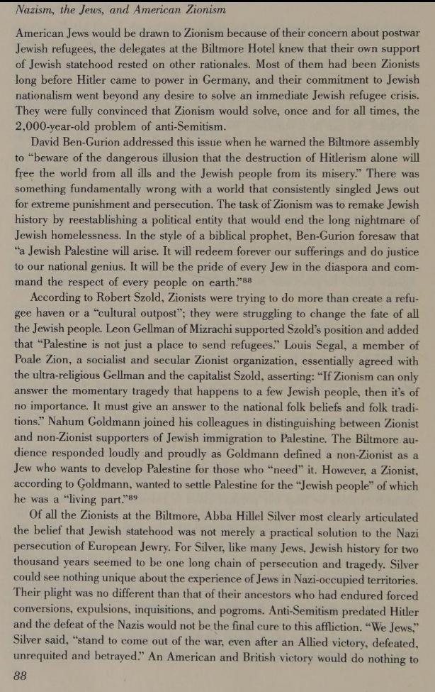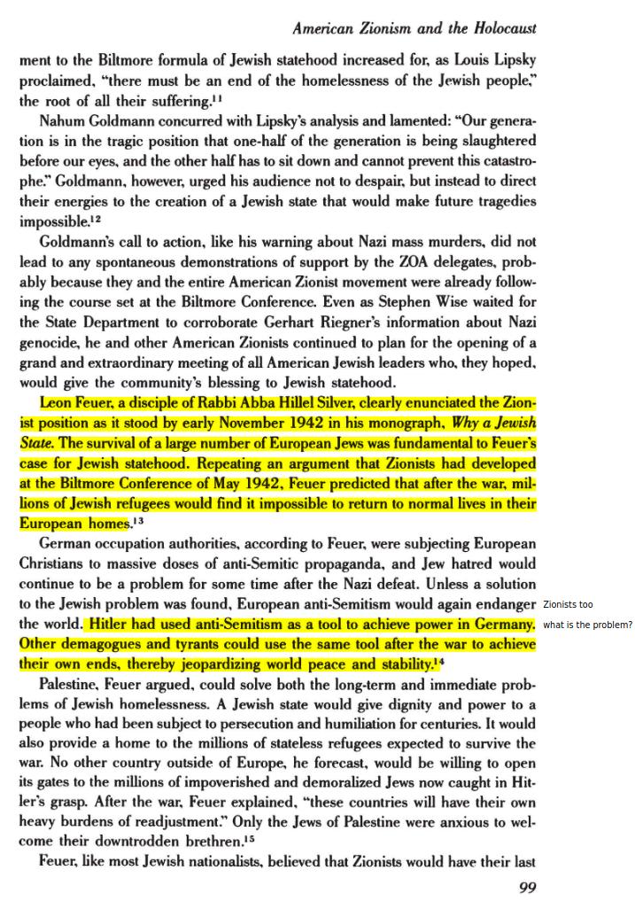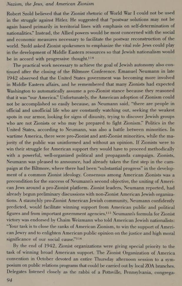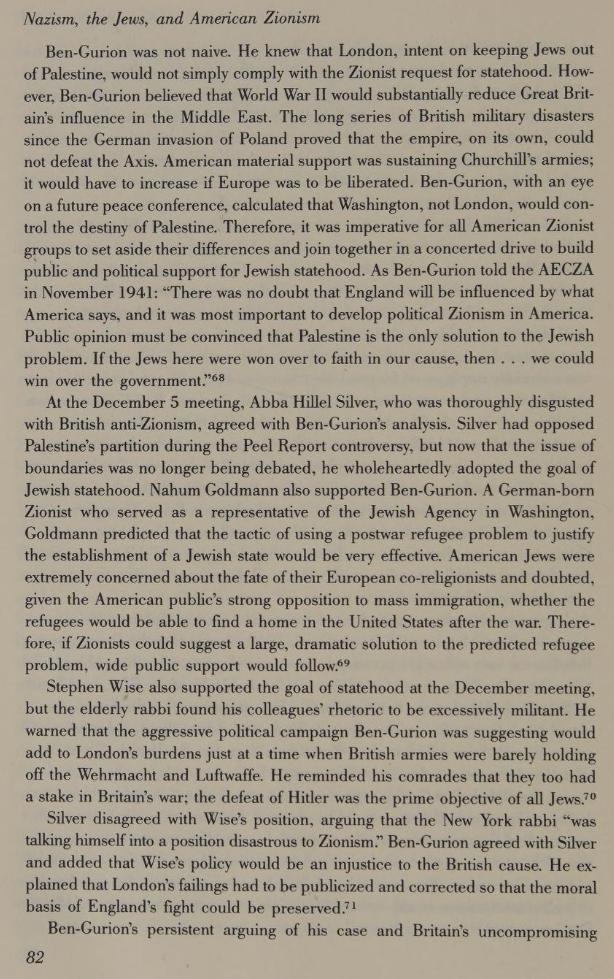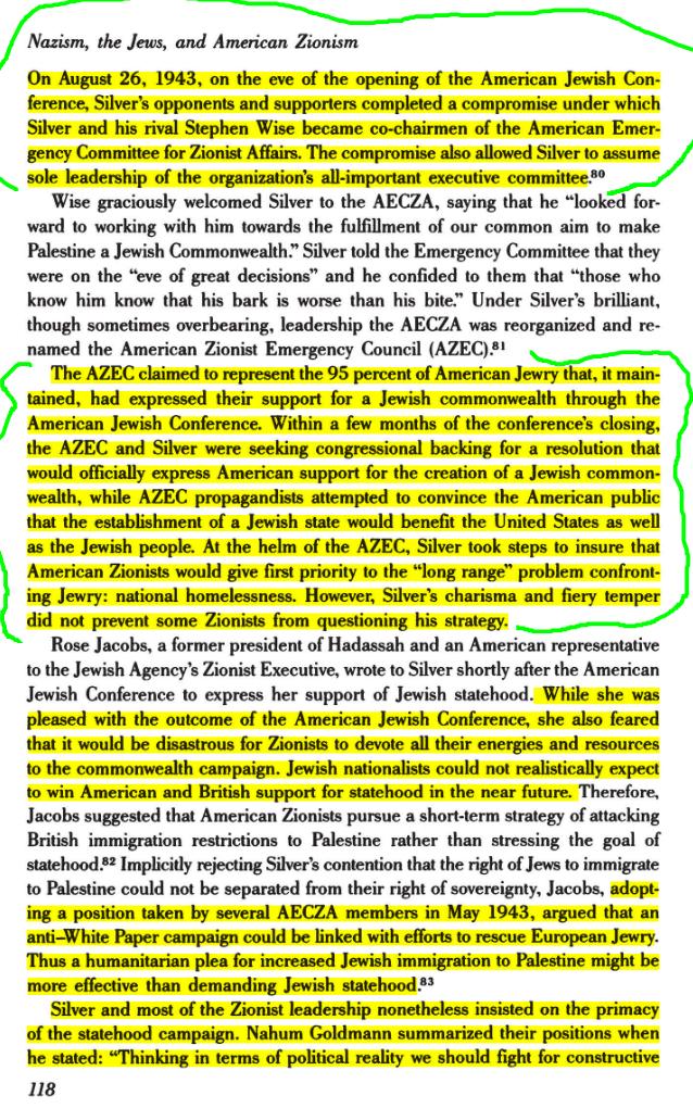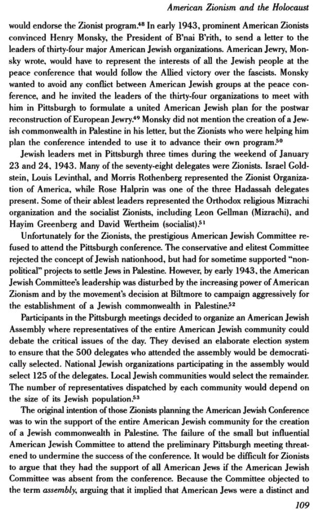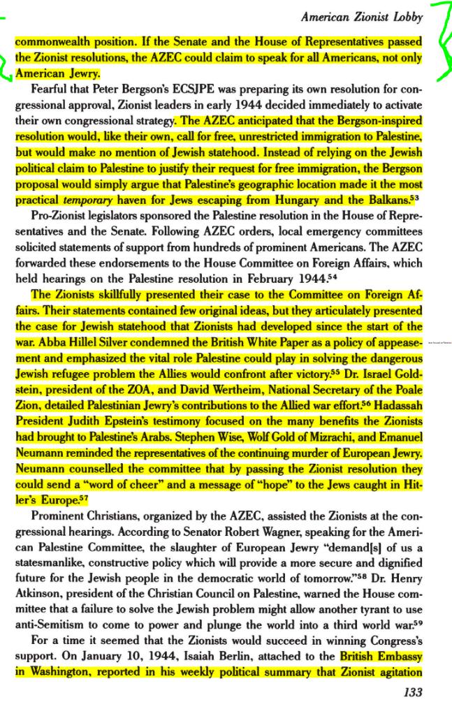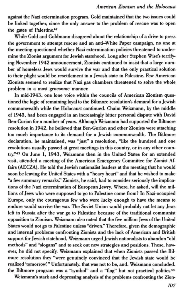 - Pay attention to how the author, Aaron Berman, blamed FDR and Churchill for the Holocaust, but he gave a free pass to his Zionist buddies. Why blame the Gentiles when American Jewry was passive in the best-case scenario? Notice how Mr. Berman, too, was fixated on Palestine as the only haven for Europe's Jews but ignored that they could have been saved in other places. For example, in his country, the United States, or in Latin and South America, where tens of thousands were saved. Most importantly, Mr. Berman said nothing about FDR's War Refugee Board which saved hundreds of thousands of Jews; this happened while American Jewish leaders were lobbying against it! It should be noted that this policy persisted even after WWII ended in the DP camps, which he completely ignored in his book. If Mr. Berman did, most likely he would have been canceled, like what happened to Hannah Arendt in 1963. For those who care, American Jews investigated many of the points we have highlighted in 1983, and they were nixed:
