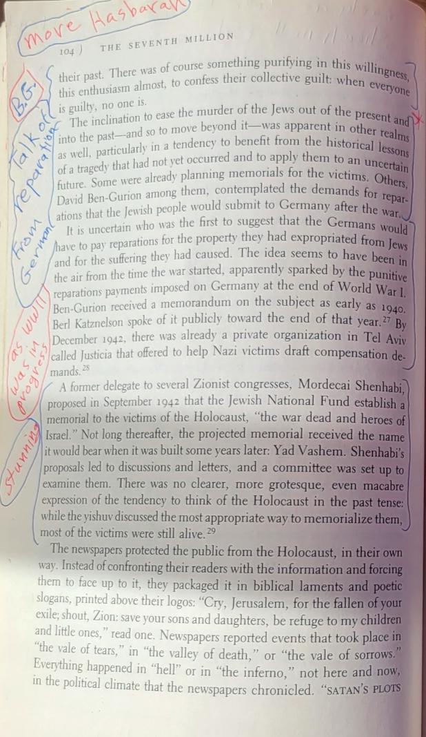 Selected scanned pages from Tom Segev's The Seventh Million |