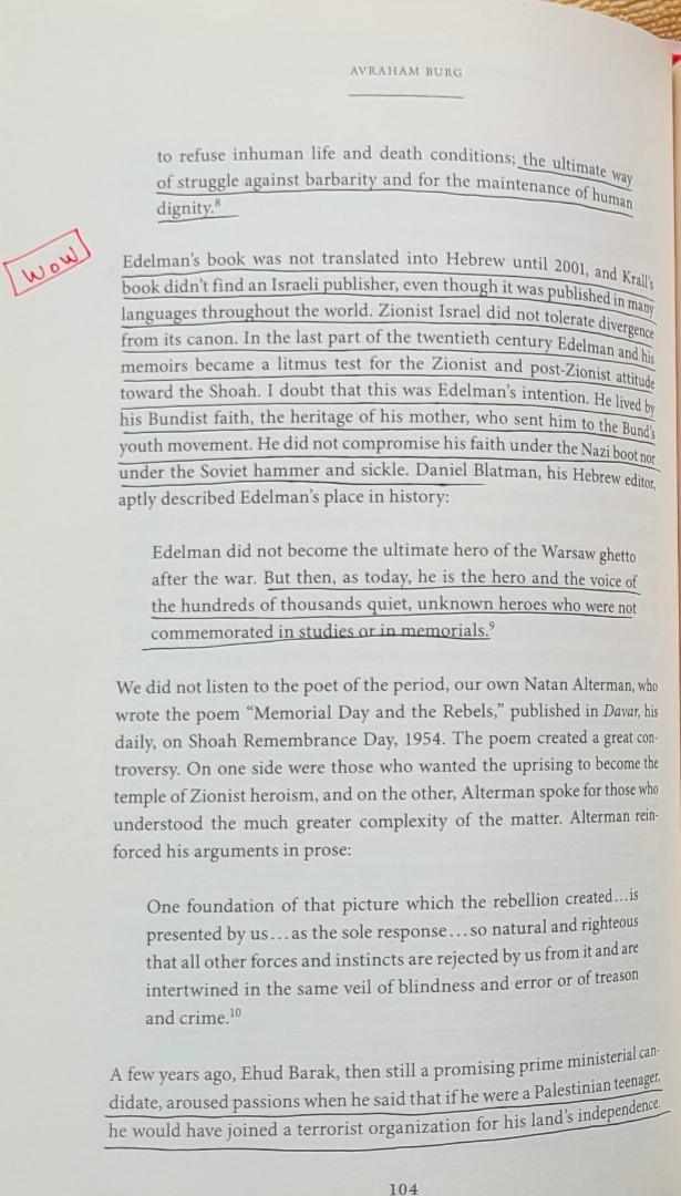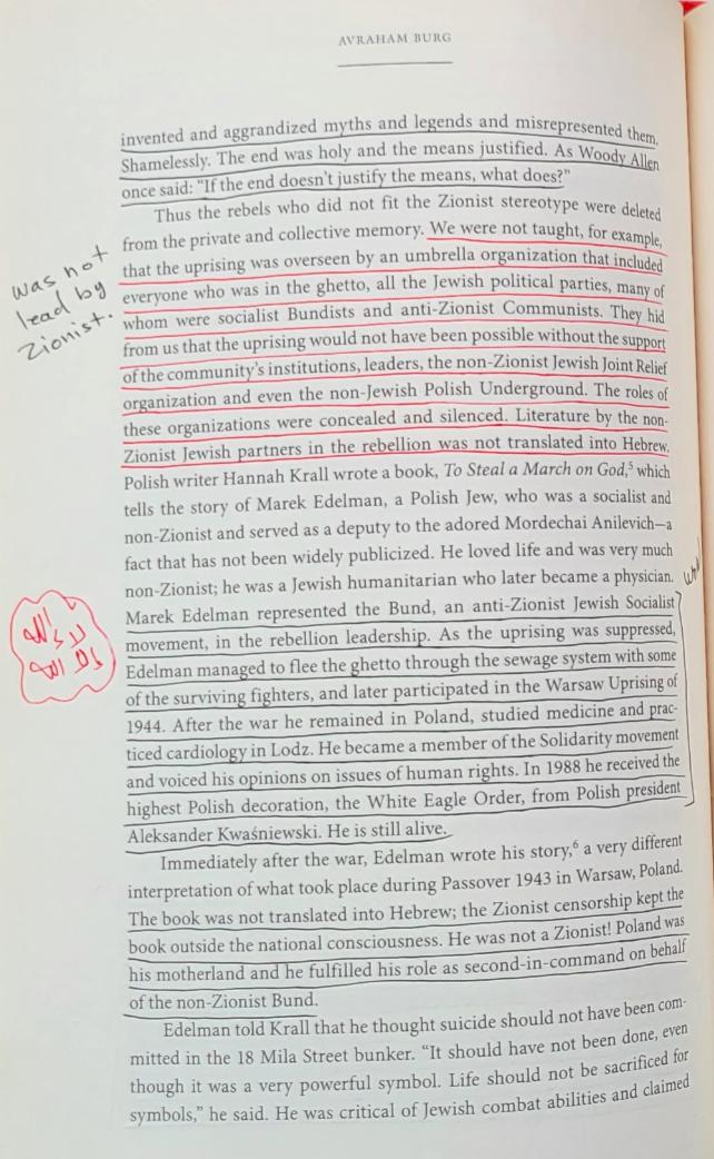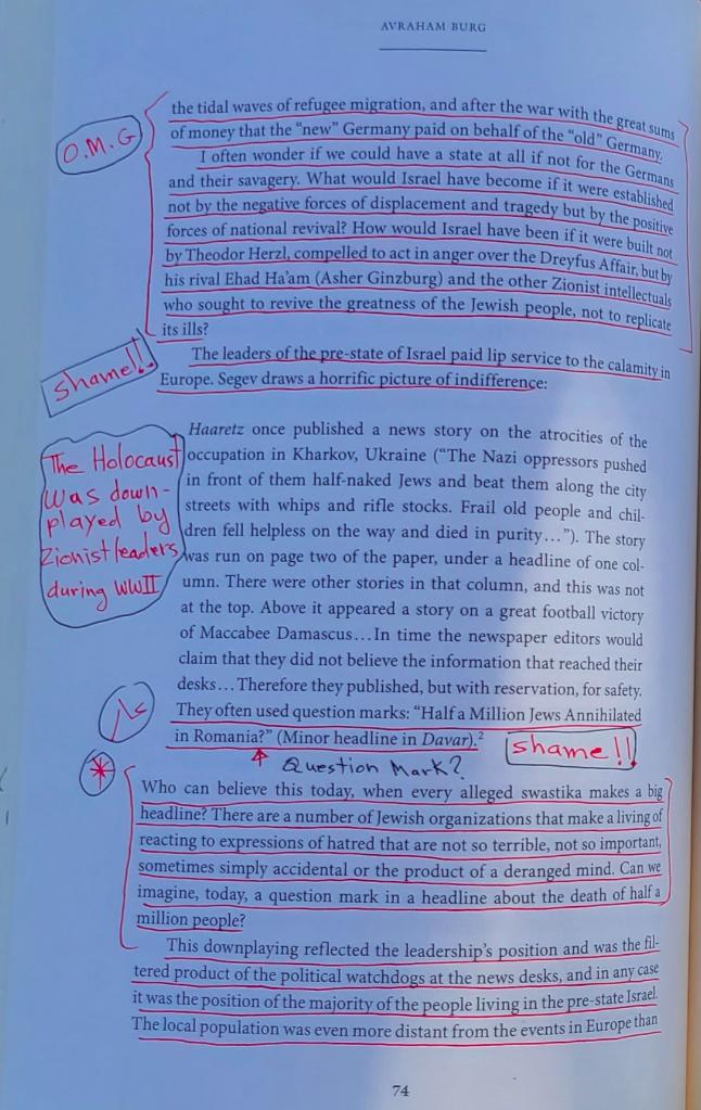 Selected page from Abraham Burg's book The Holocaust is Over |