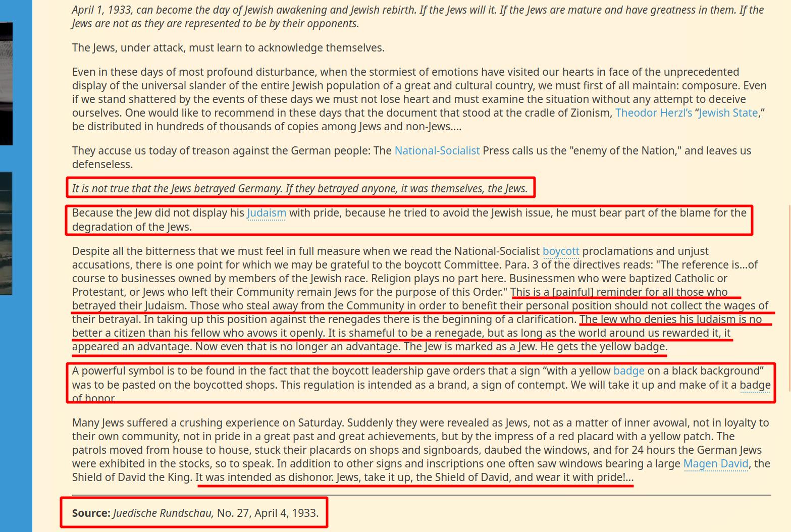 Pay attention how Robert's attack was directly against majority of German Jewry who were assimilationist. Therefore, the rejected Zionism and that explains why they looked upon Zionists as the enemy from within. Click here to view the live article on Zionists' Hasbarah News Network (a.k.a. JVL):