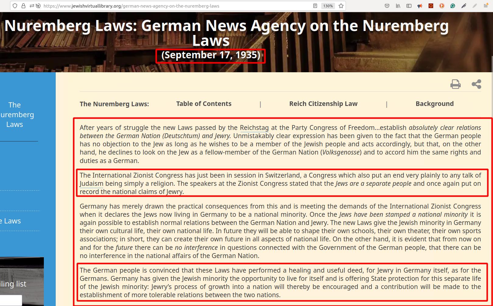 Here is Zionists response to Nuremberg Race Laws from the same source: