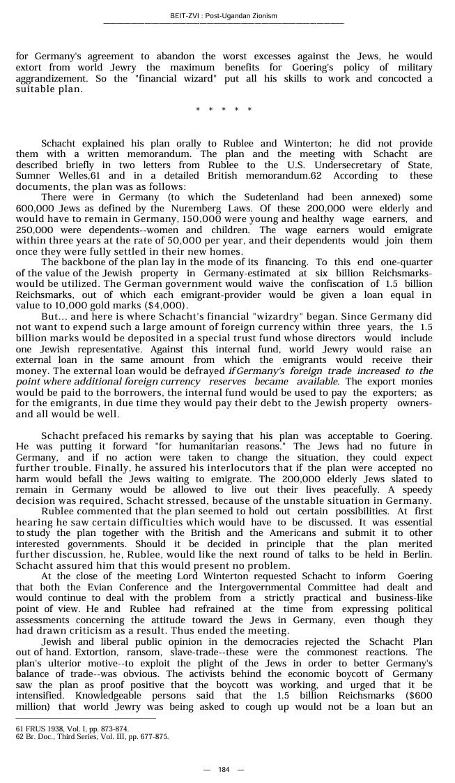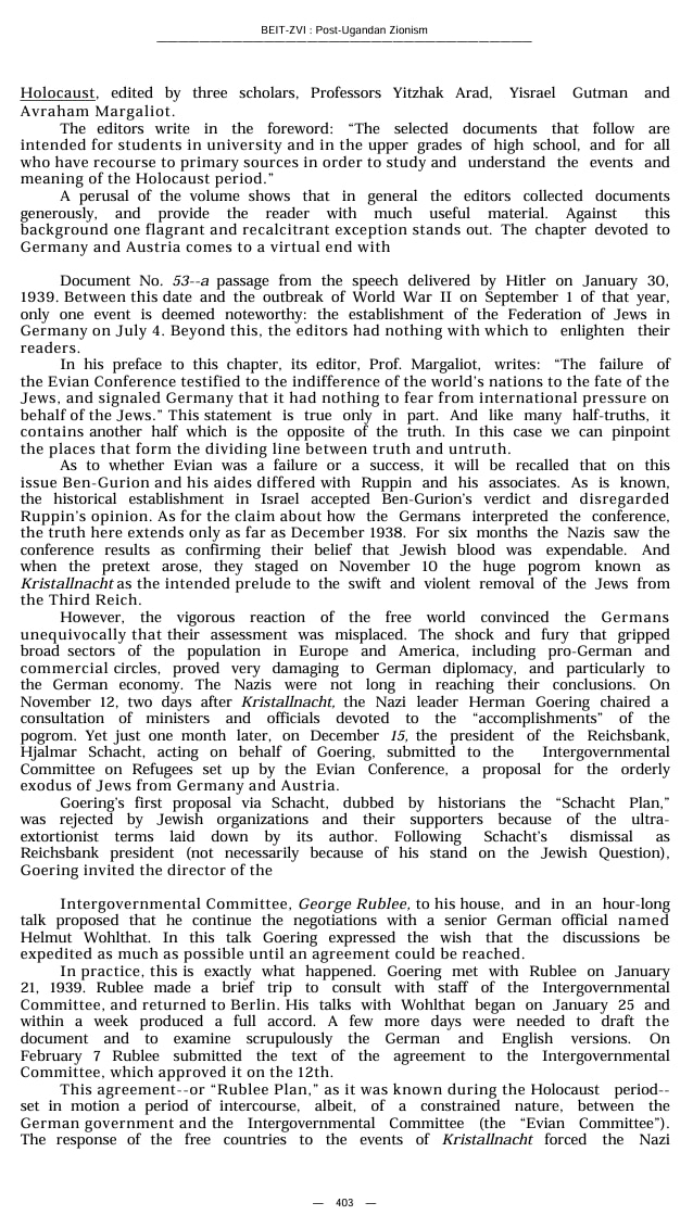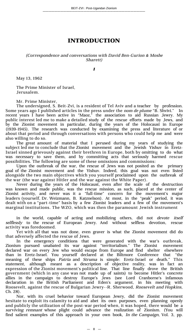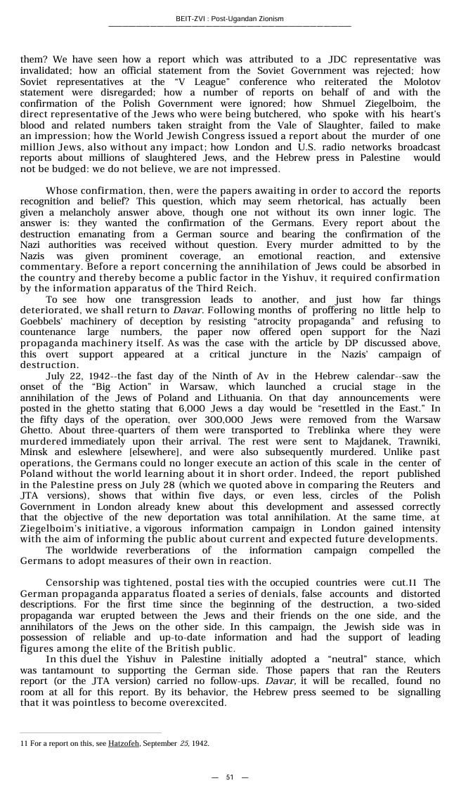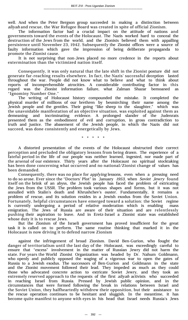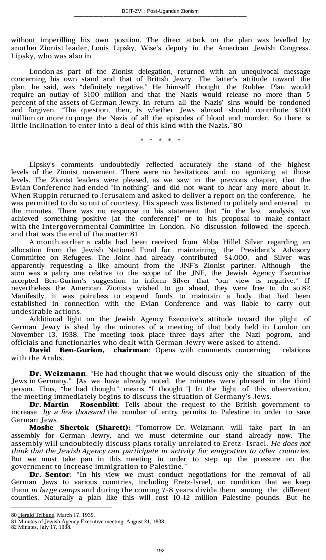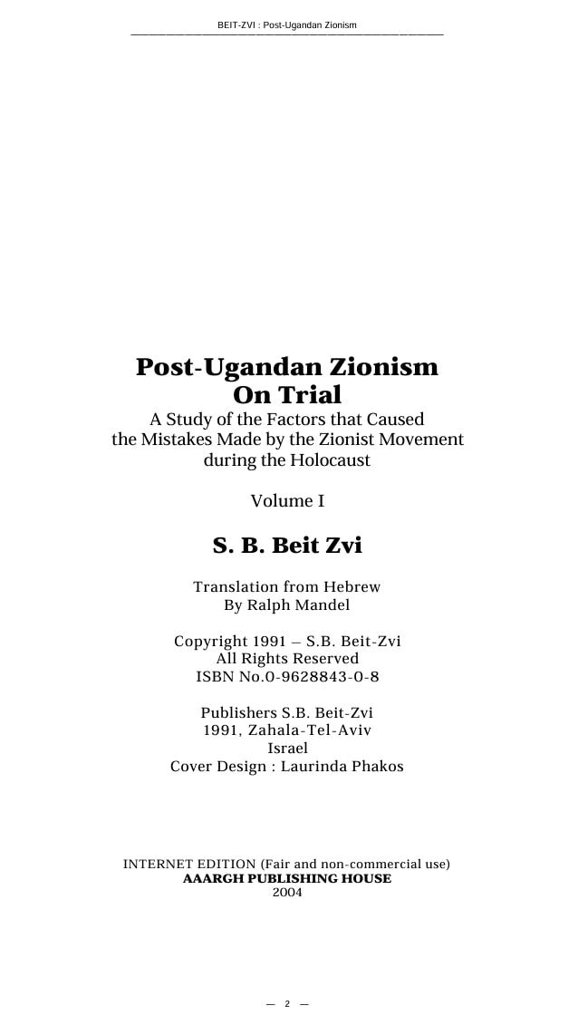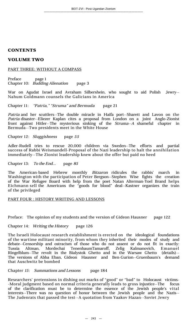As we were researching the Haavara Agreement and Zionists' response to the Holocaust, this excellent book kept coming up as a resource. Although the author, Beit Zvi, was not trained as a historian, his research and analysis are top-notch. This book was one of the first to be released on the subject of Zionists' response to the Holocaust (the Hebrew version was first released in 1977, and this English version was released in the early 1990s), and as you shall see, he even corresponded with David Ben-Gurion and other Zionist leaders, too. Before using his research, we spent a lot of time verifying the sources, and honestly, Zvi's is top quality. Anyhow, we hope you enjoy this format, here is the same version but in PDF format.