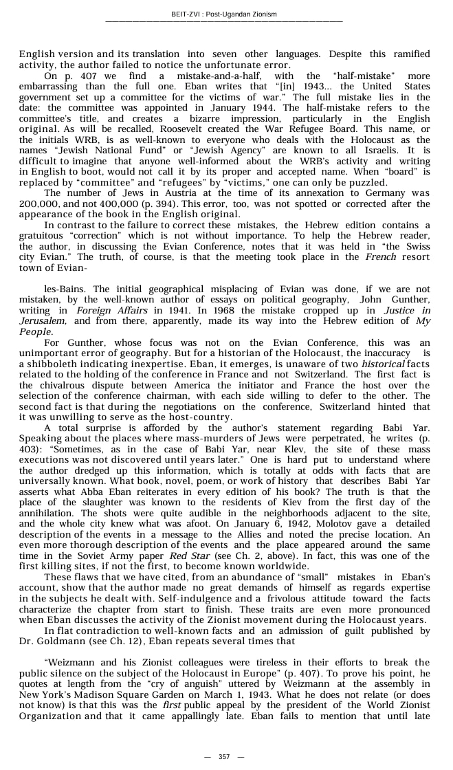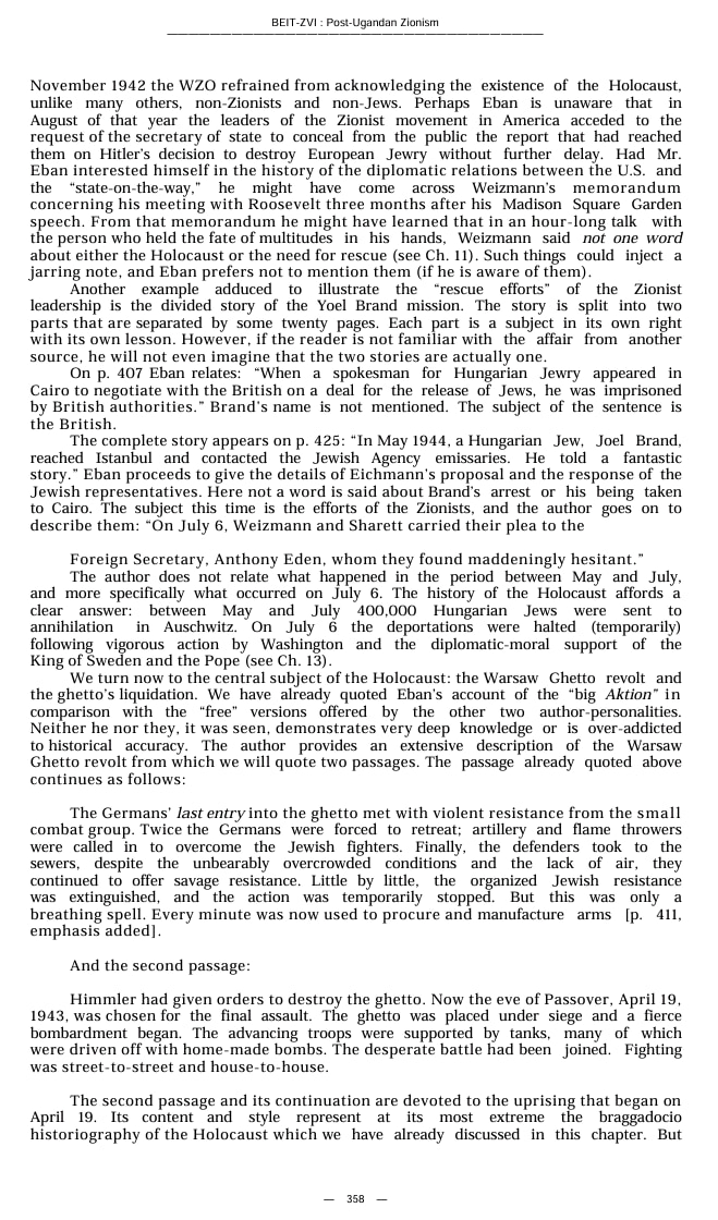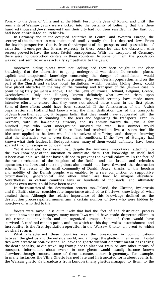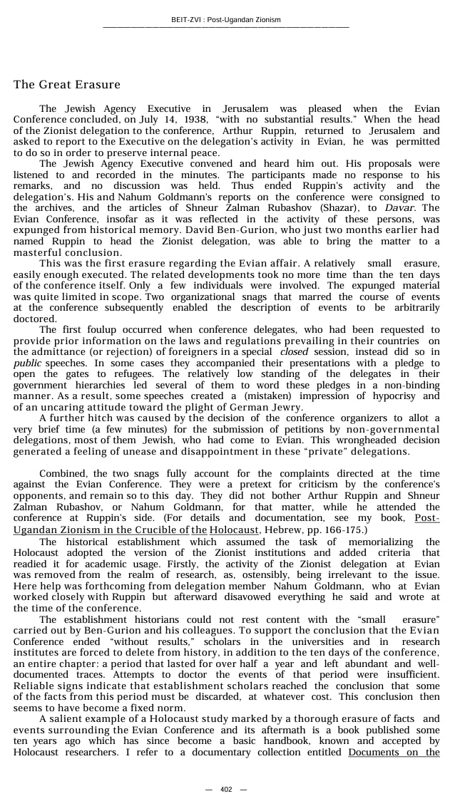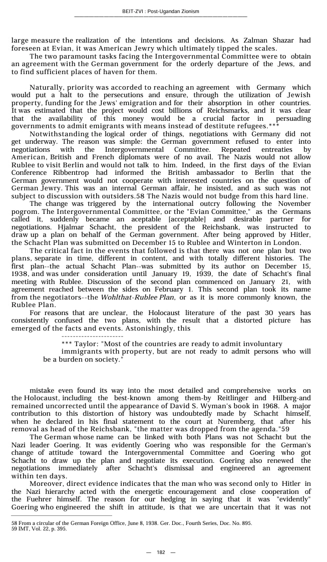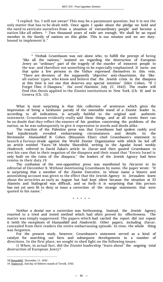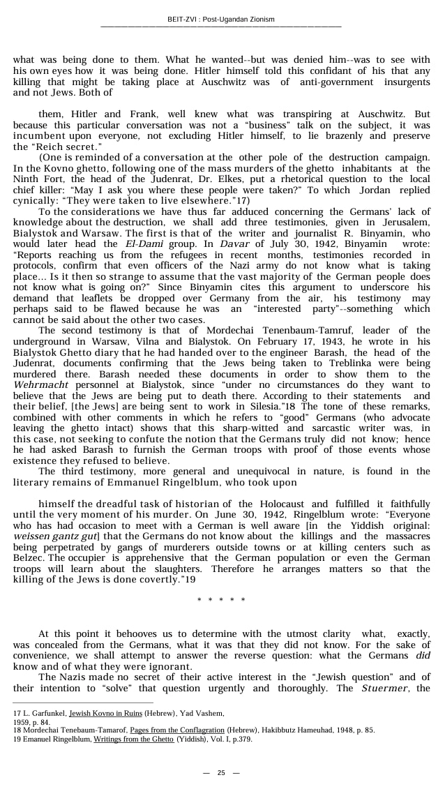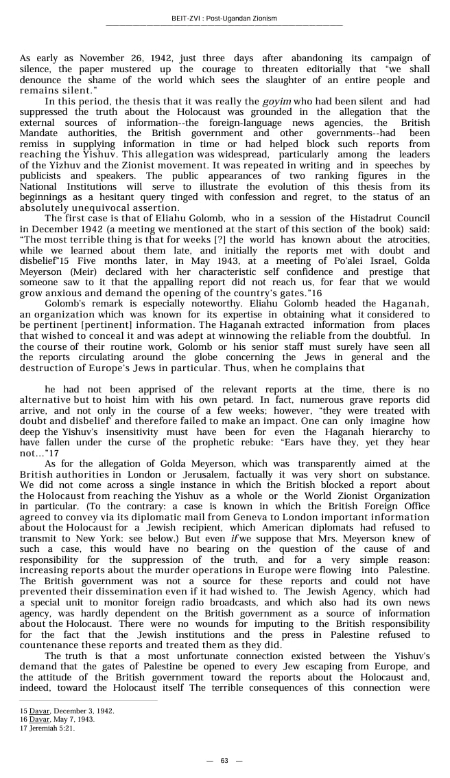 As we were researching the Haavara Agreement and Zionists' response to the Holocaust, this excellent book kept coming up as a resource. Although the author, Beit Zvi, was not trained as a historian, his research and analysis are top-notch. This book was one of the first to be released on the subject of Zionists' response to the Holocaust (the Hebrew version was first released in 1977, and this English version was released in the early 1990s), and as you shall see, he even corresponded with David Ben-Gurion and other Zionist leaders, too. Before using his research, we spent a lot of time verifying the sources, and honestly, Zvi's is top quality. Anyhow, we hope you enjoy this format, here is the same version but in PDF format.