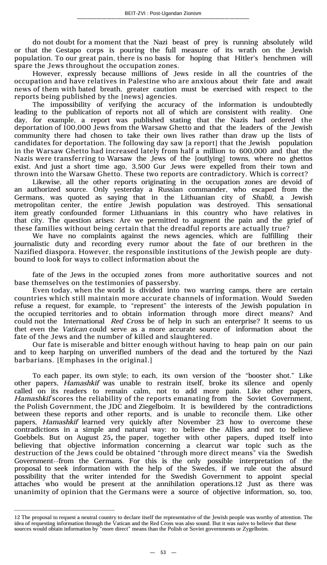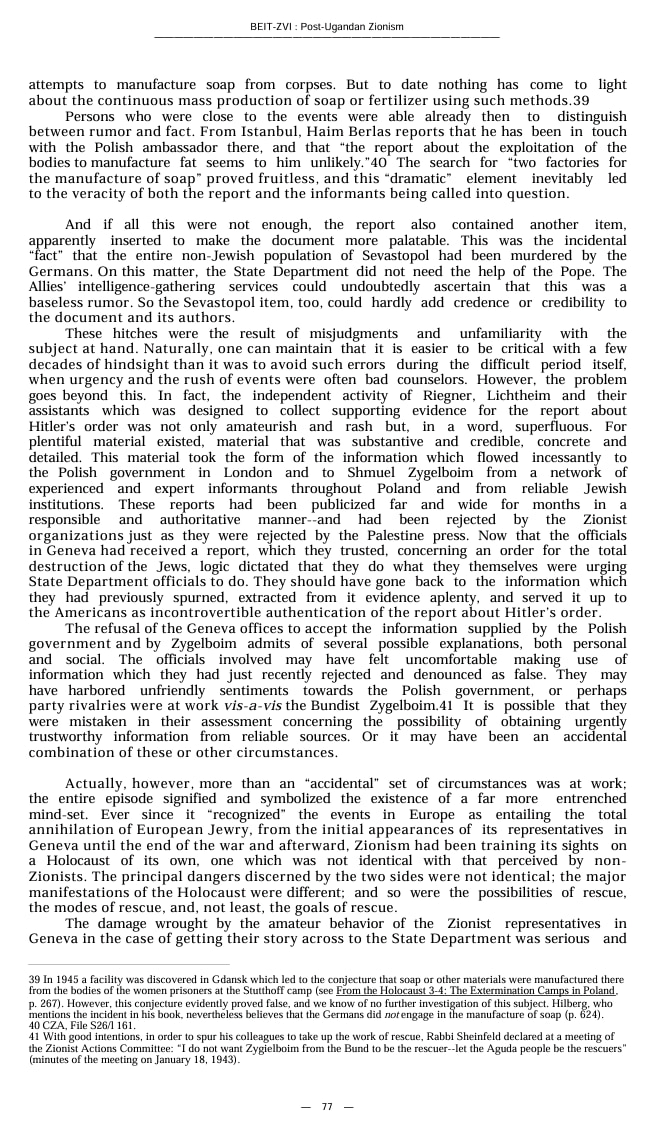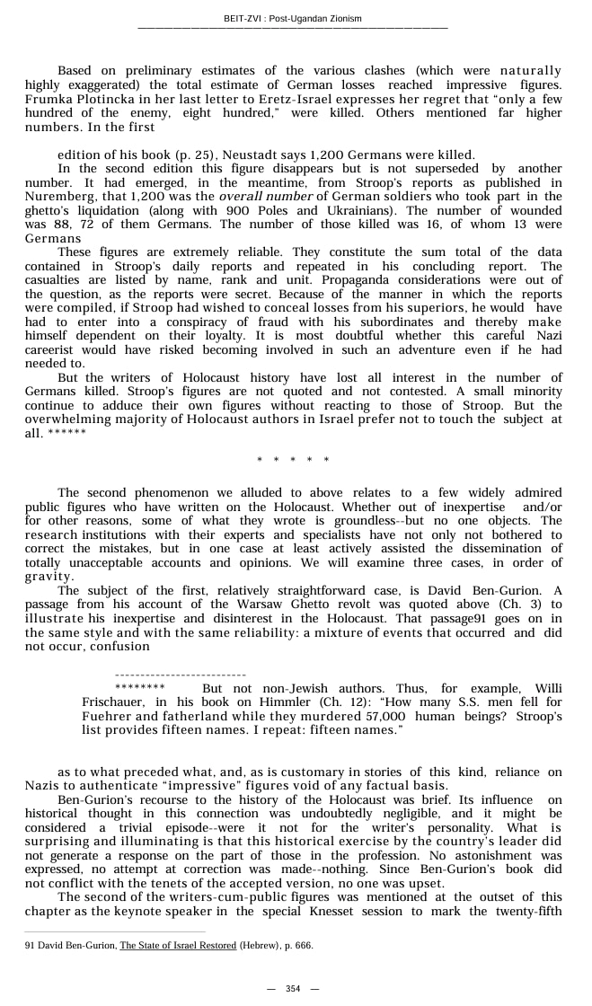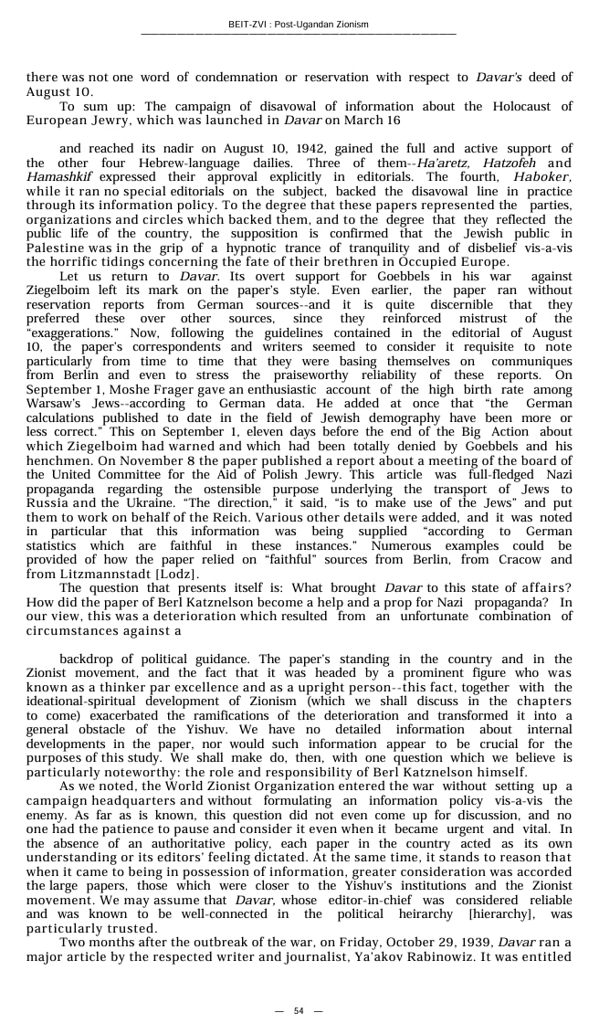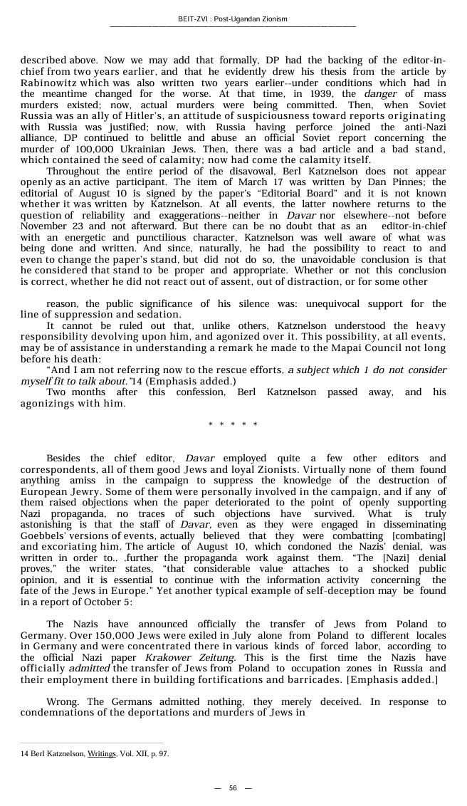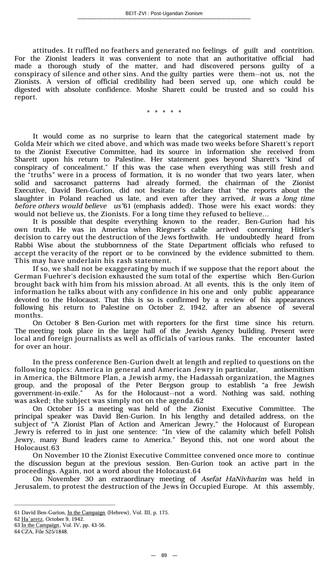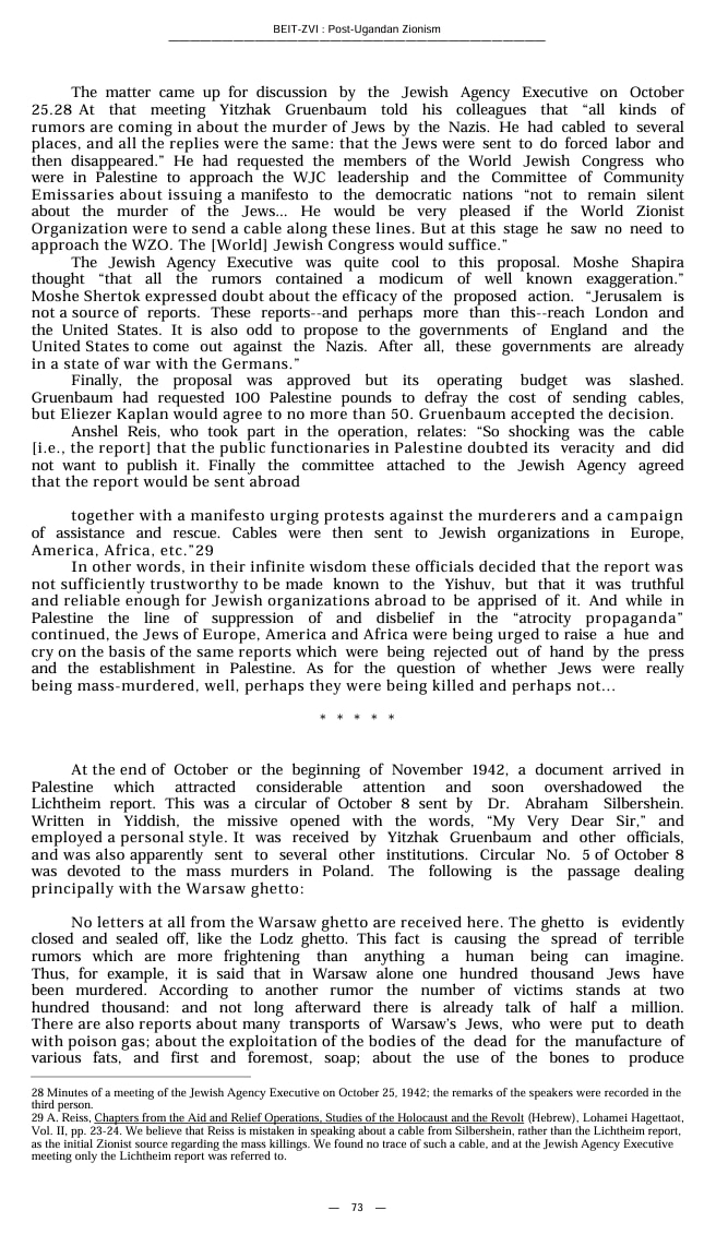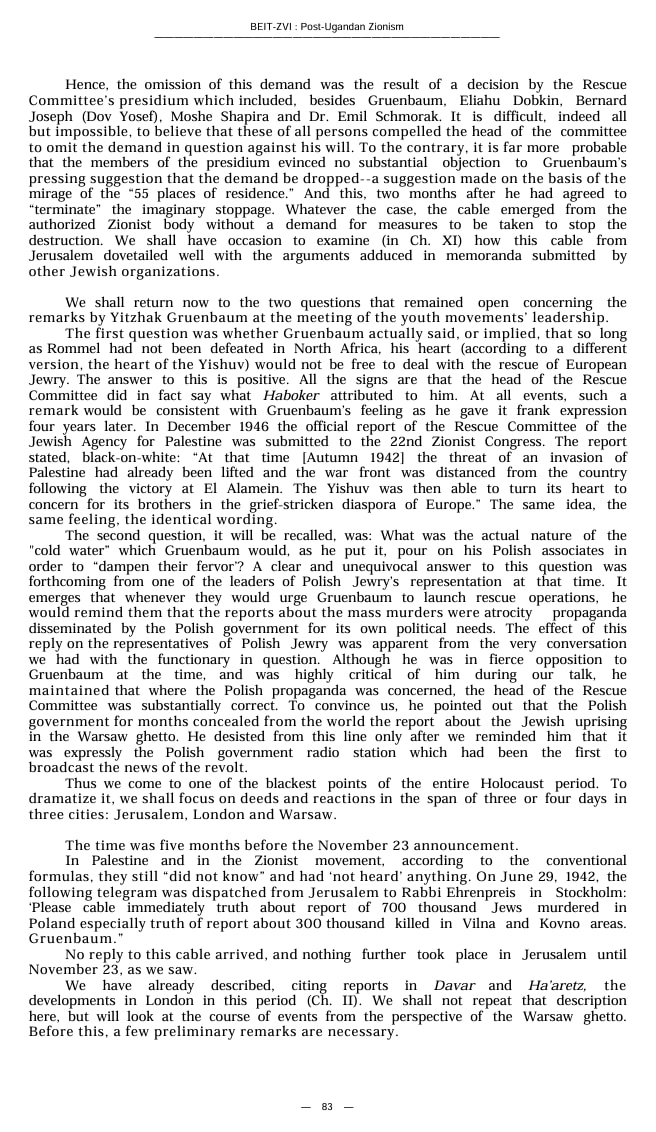 As we were researching the Haavara Agreement and Zionists' response to the Holocaust, this excellent book kept coming up as a resource. Although the author, Beit Zvi, was not trained as a historian, his research and analysis are top-notch. This book was one of the first to be released on the subject of Zionists' response to the Holocaust (the Hebrew version was first released in 1977, and this English version was released in the early 1990s), and as you shall see, he even corresponded with David Ben-Gurion and other Zionist leaders, too. Before using his research, we spent a lot of time verifying the sources, and honestly, Zvi's is top quality. Anyhow, we hope you enjoy this format, here is the same version but in PDF format.