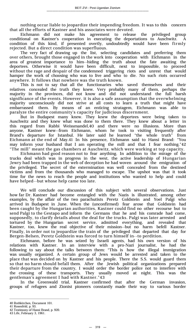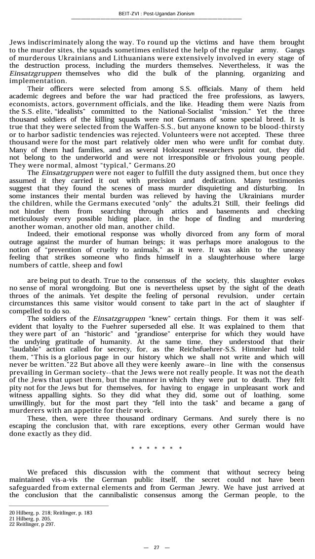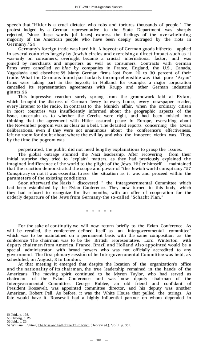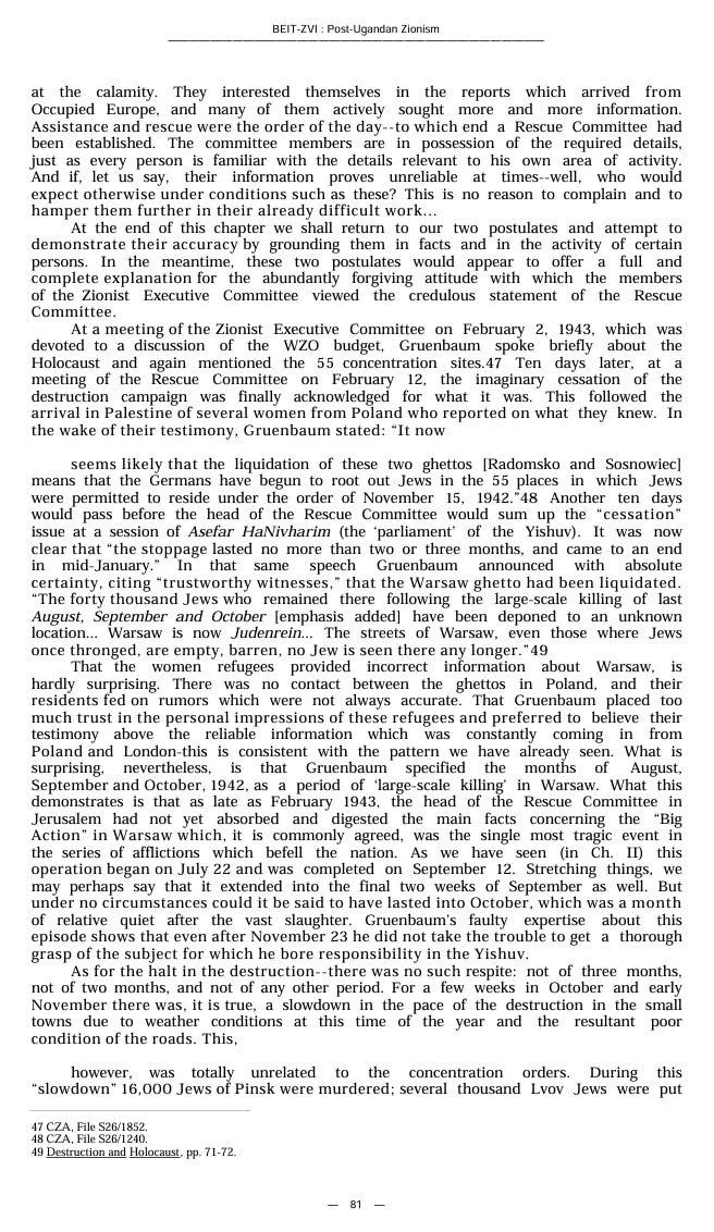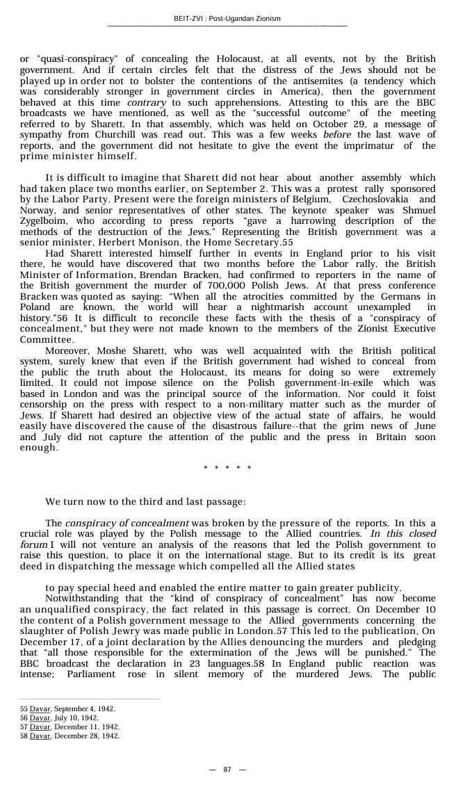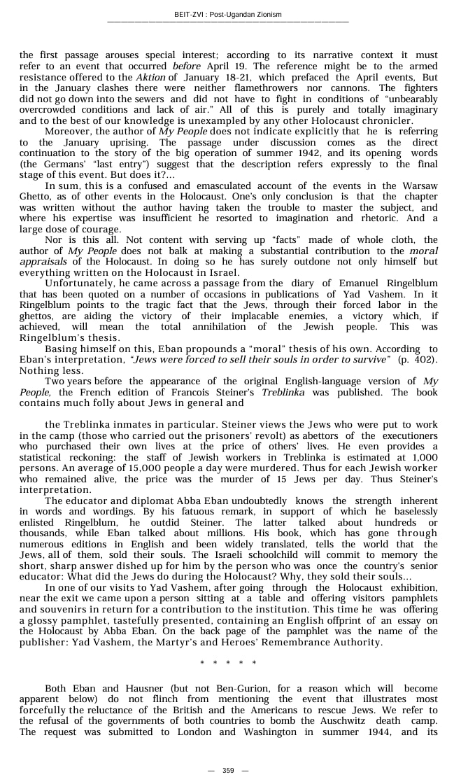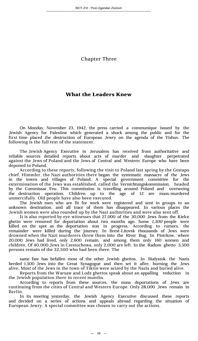 As we were researching the Haavara Agreement and Zionists' response to the Holocaust, this excellent book kept coming up as a resource. Although the author, Beit Zvi, was not trained as a historian, his research and analysis are top-notch. This book was one of the first to be released on the subject of Zionists' response to the Holocaust (the Hebrew version was first released in 1977, and this English version was released in the early 1990s), and as you shall see, he even corresponded with David Ben-Gurion and other Zionist leaders, too. Before using his research, we spent a lot of time verifying the sources, and honestly, Zvi's is top quality. Anyhow, we hope you enjoy this format, here is the same version but in PDF format.