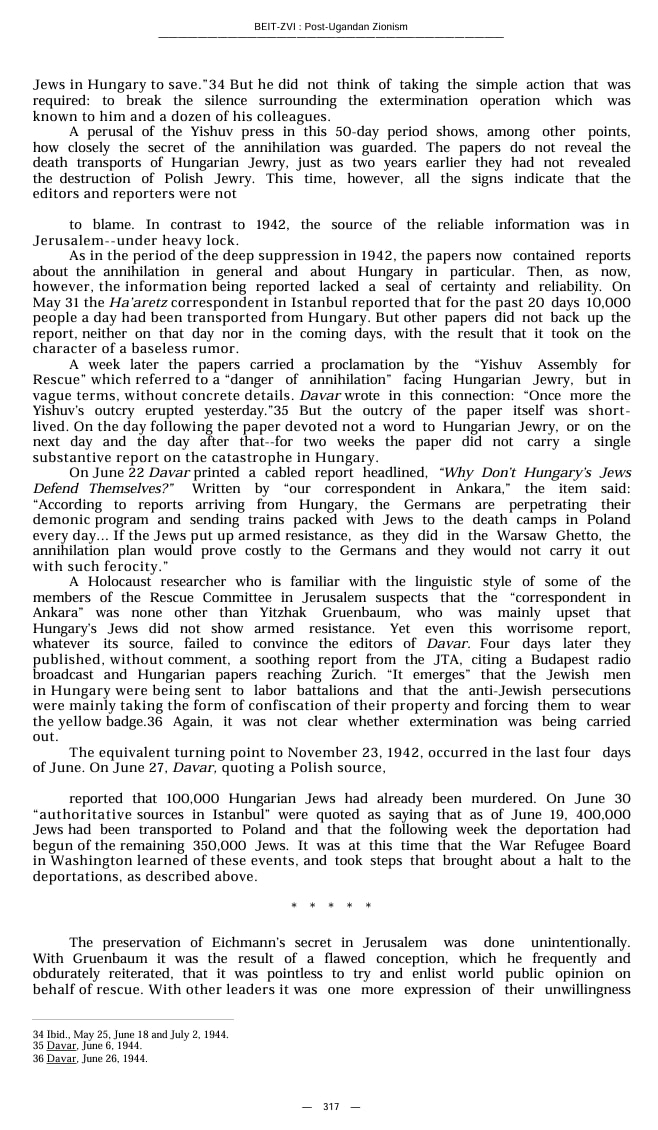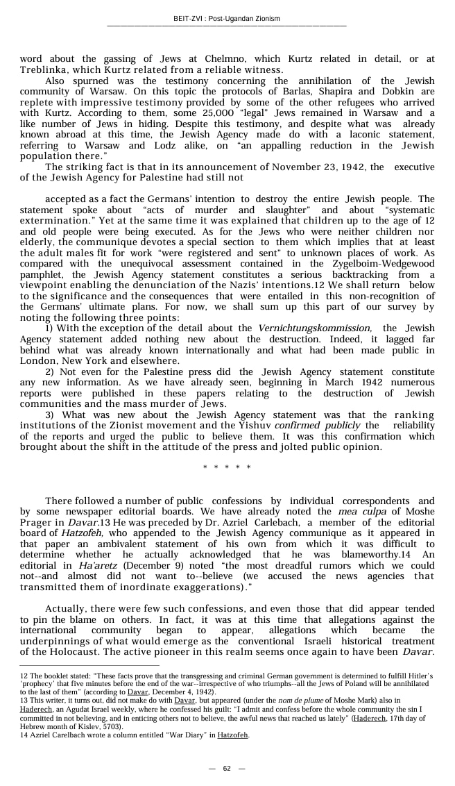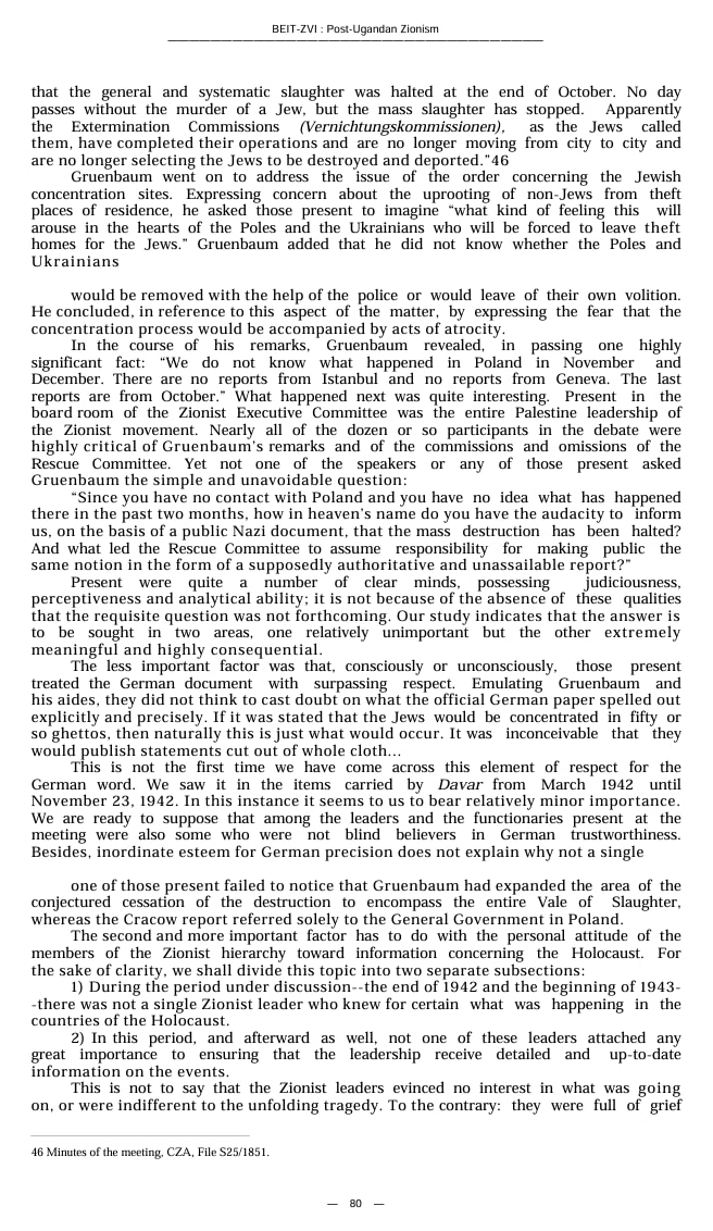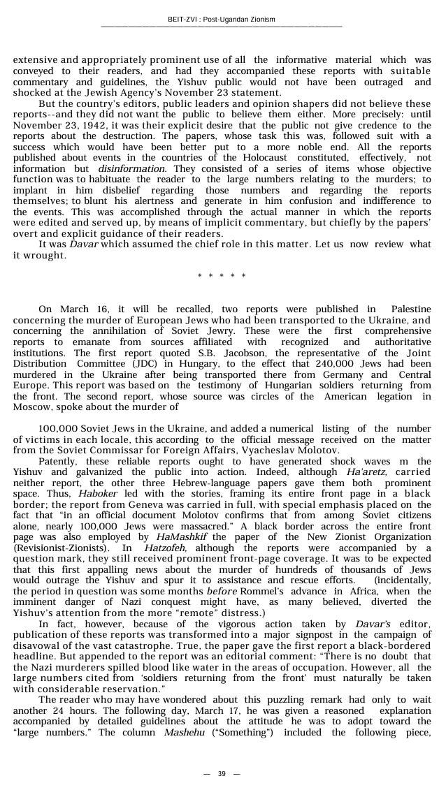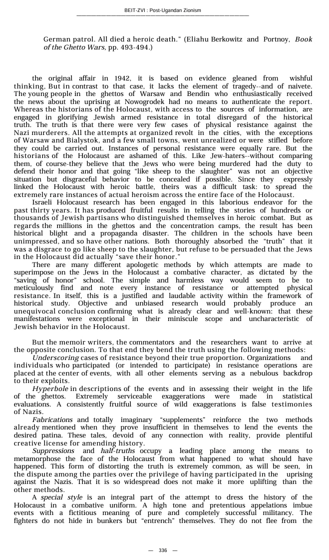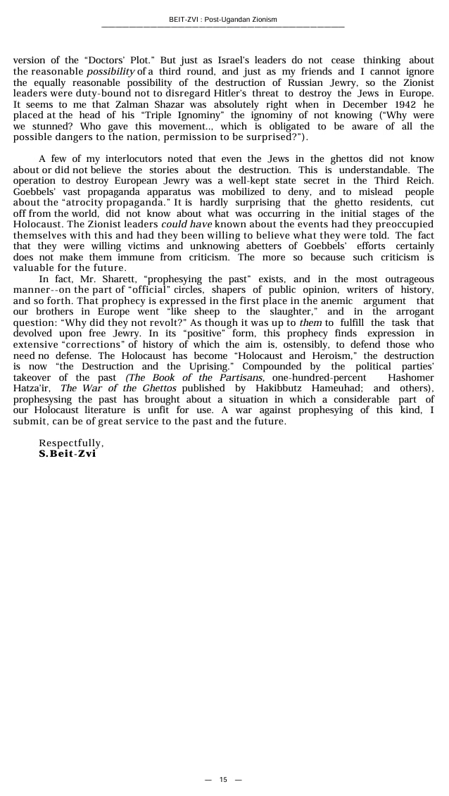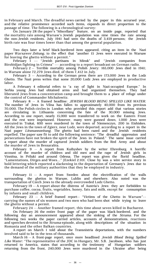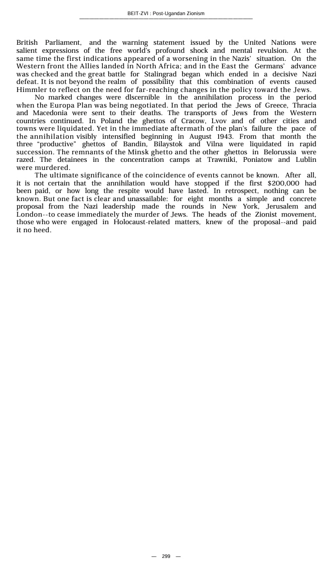 As we were researching the Haavara Agreement and Zionists' response to the Holocaust, this excellent book kept coming up as a resource. Although the author, Beit Zvi, was not trained as a historian, his research and analysis are top-notch. This book was one of the first to be released on the subject of Zionists' response to the Holocaust (the Hebrew version was first released in 1977, and this English version was released in the early 1990s), and as you shall see, he even corresponded with David Ben-Gurion and other Zionist leaders, too. Before using his research, we spent a lot of time verifying the sources, and honestly, Zvi's is top quality. Anyhow, we hope you enjoy this format, here is the same version but in PDF format.