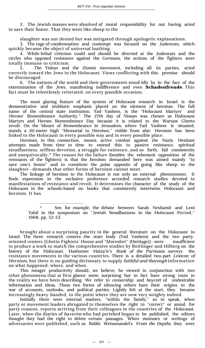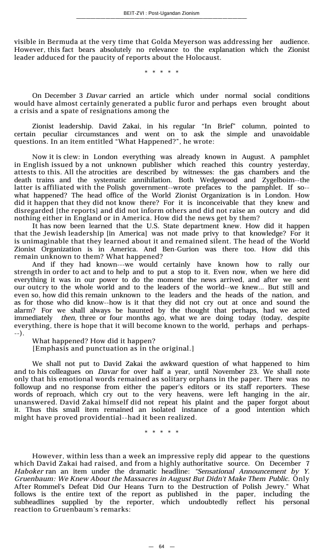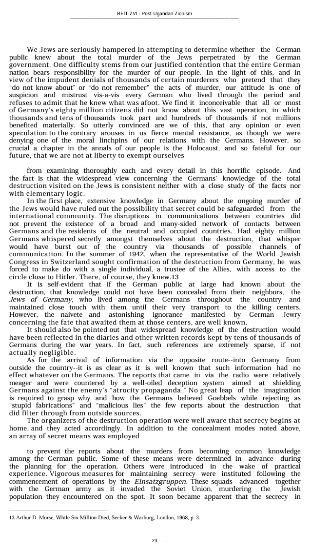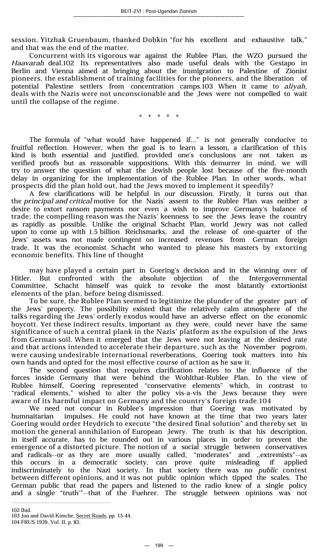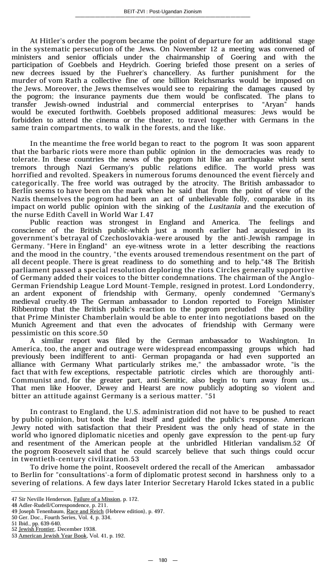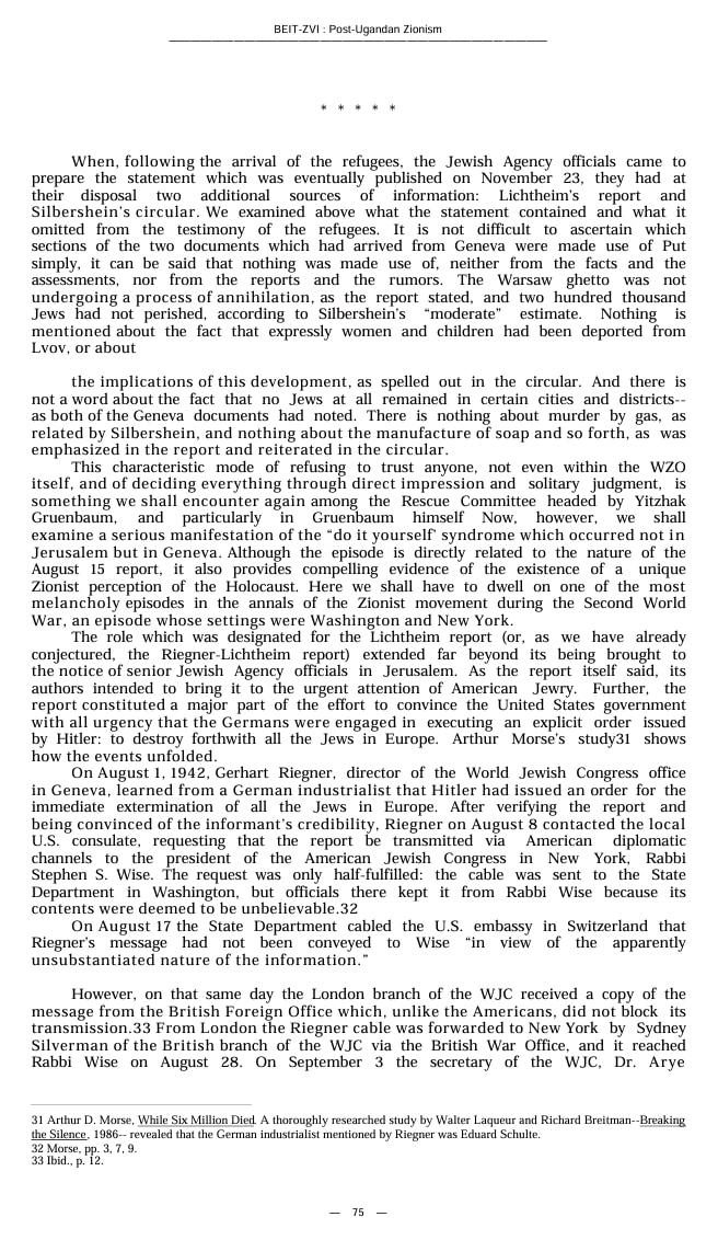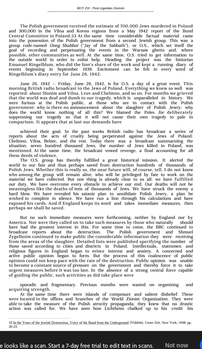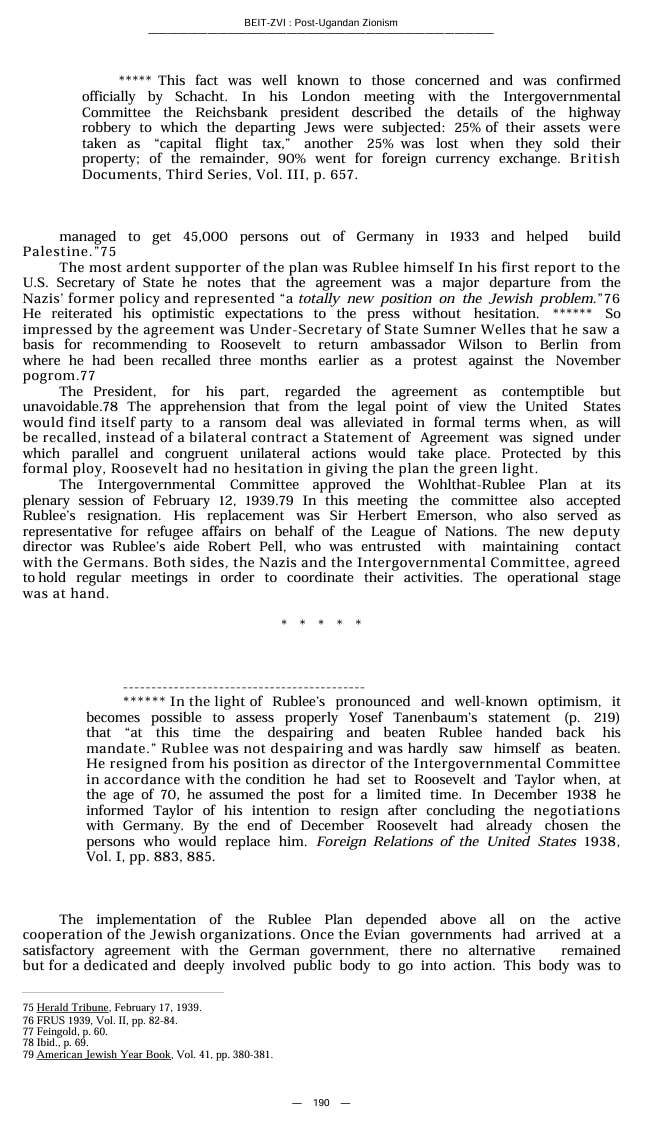 As we were researching the Haavara Agreement and Zionists' response to the Holocaust, this excellent book kept coming up as a resource. Although the author, Beit Zvi, was not trained as a historian, his research and analysis are top-notch. This book was one of the first to be released on the subject of Zionists' response to the Holocaust (the Hebrew version was first released in 1977, and this English version was released in the early 1990s), and as you shall see, he even corresponded with David Ben-Gurion and other Zionist leaders, too. Before using his research, we spent a lot of time verifying the sources, and honestly, Zvi's is top quality. Anyhow, we hope you enjoy this format, here is the same version but in PDF format.