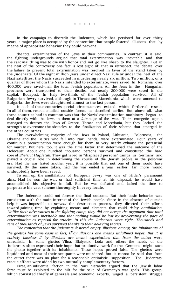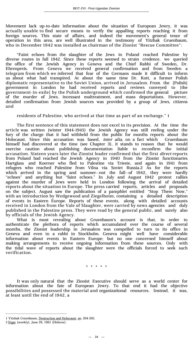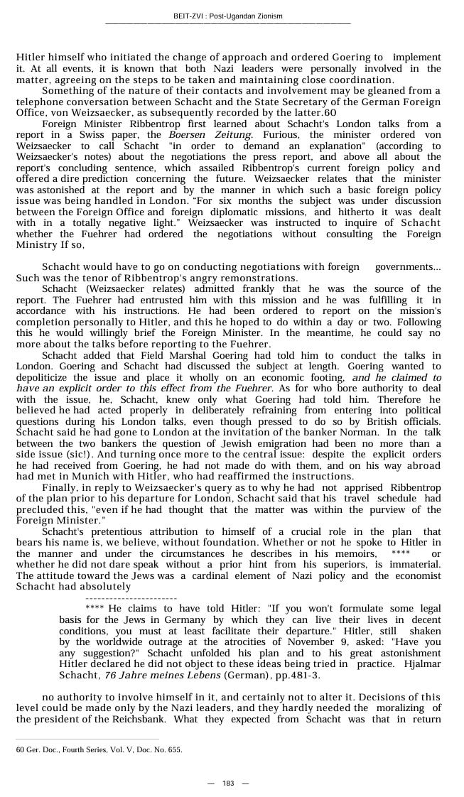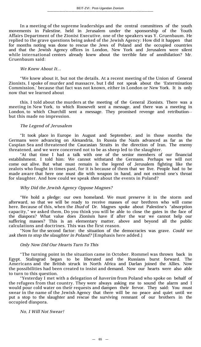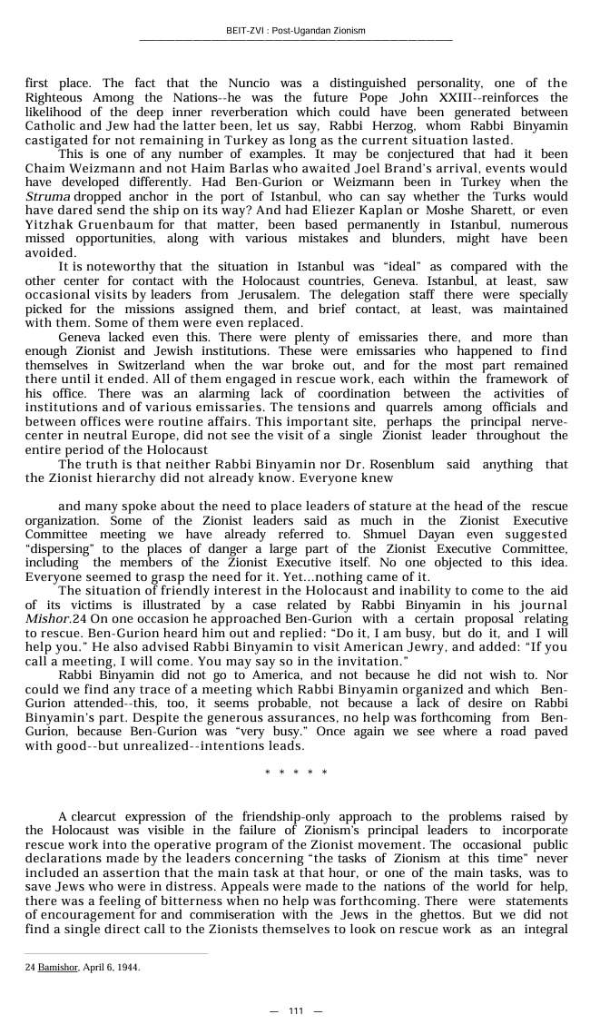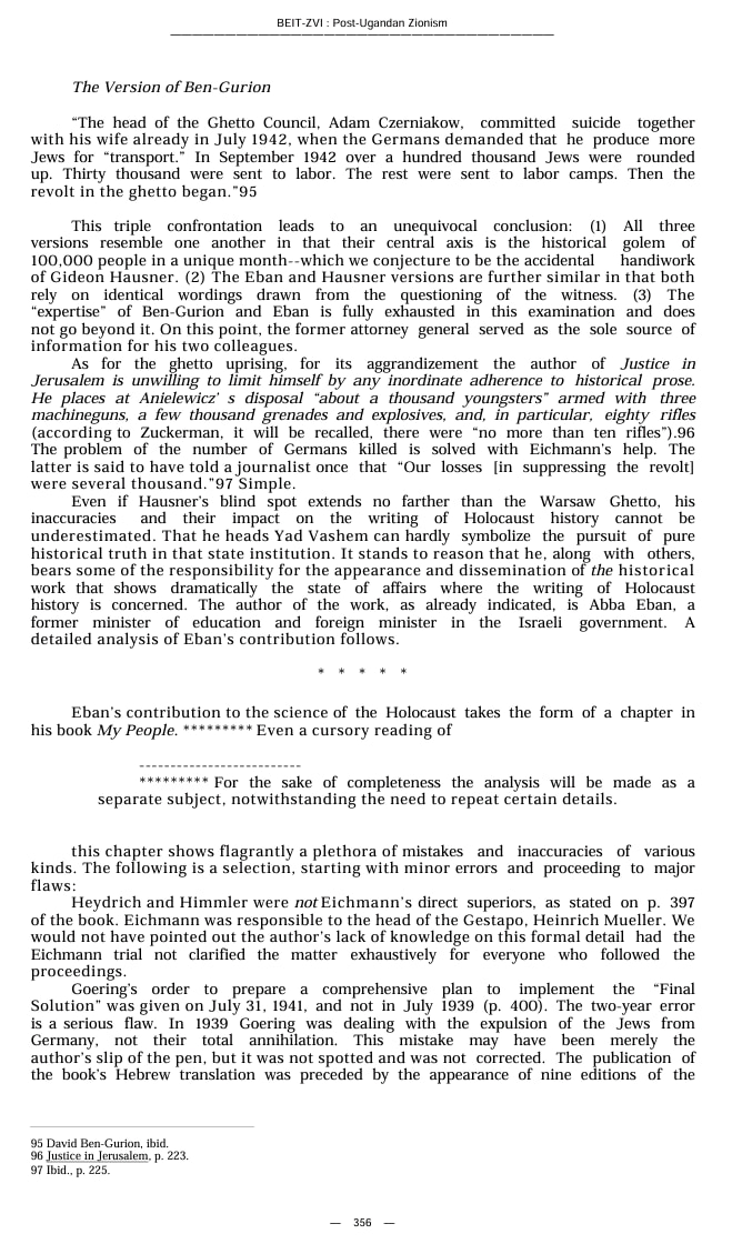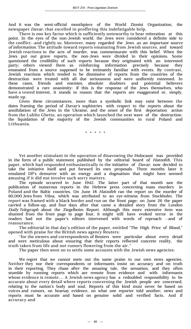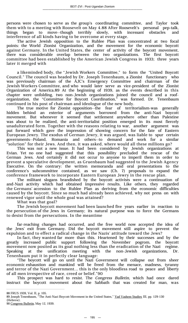 As we were researching the Haavara Agreement and Zionists' response to the Holocaust, this excellent book kept coming up as a resource. Although the author, Beit Zvi, was not trained as a historian, his research and analysis are top-notch. This book was one of the first to be released on the subject of Zionists' response to the Holocaust (the Hebrew version was first released in 1977, and this English version was released in the early 1990s), and as you shall see, he even corresponded with David Ben-Gurion and other Zionist leaders, too. Before using his research, we spent a lot of time verifying the sources, and honestly, Zvi's is top quality. Anyhow, we hope you enjoy this format, here is the same version but in PDF format.