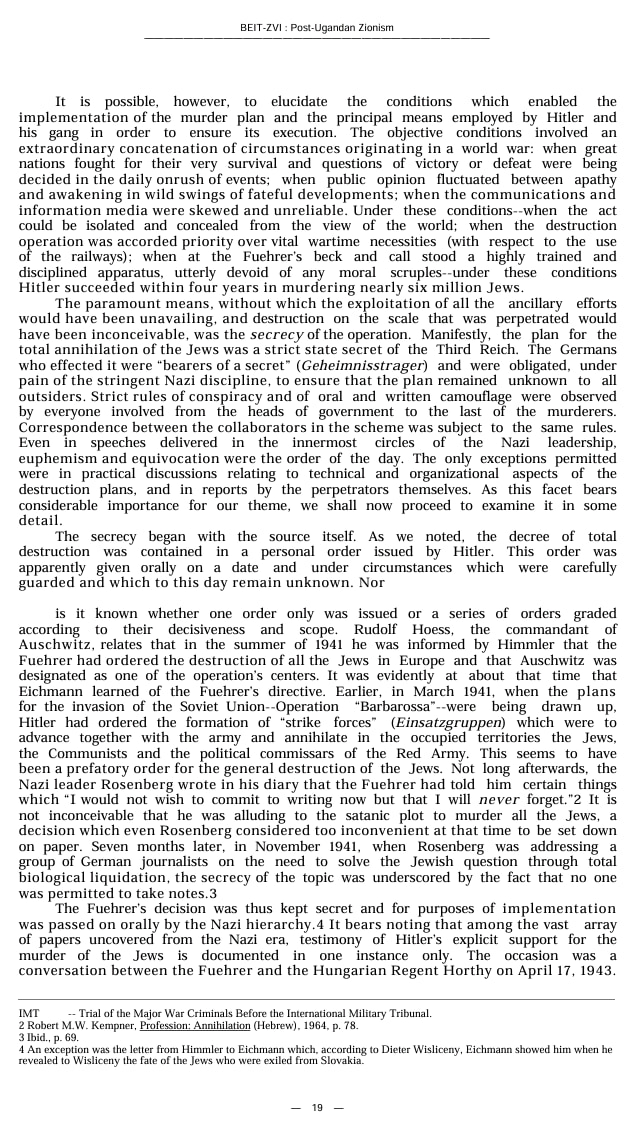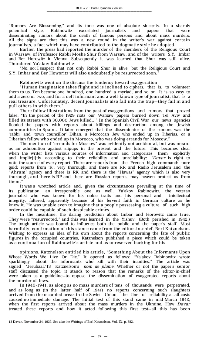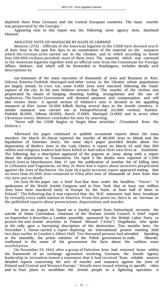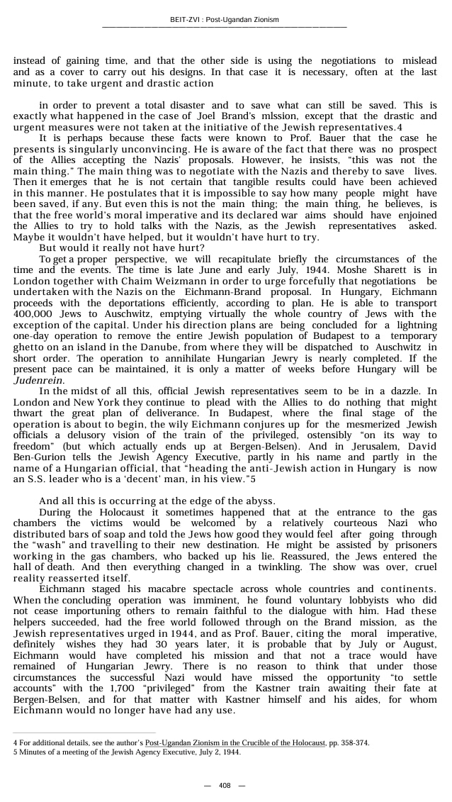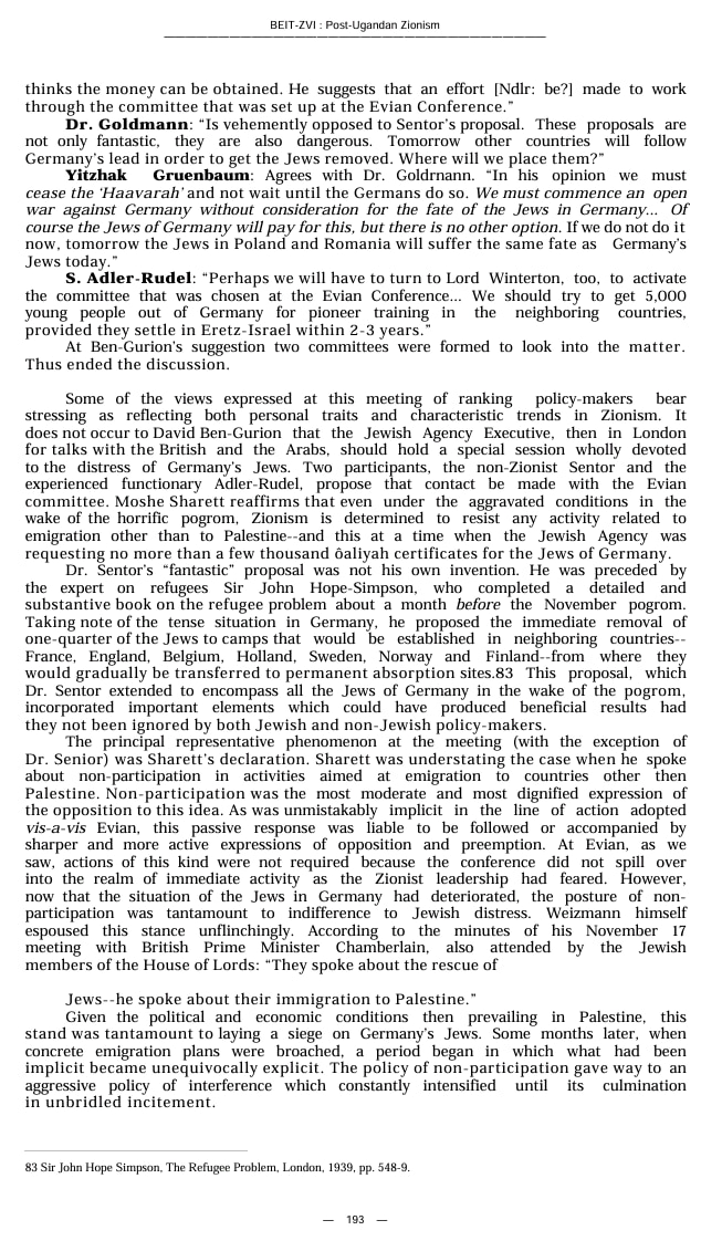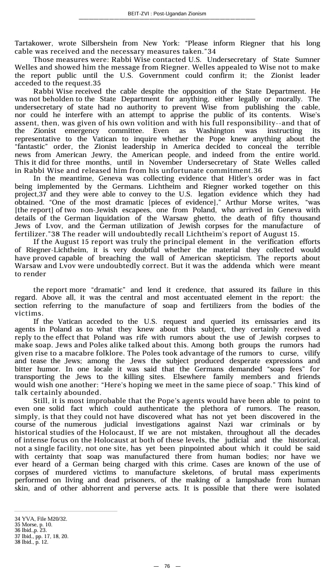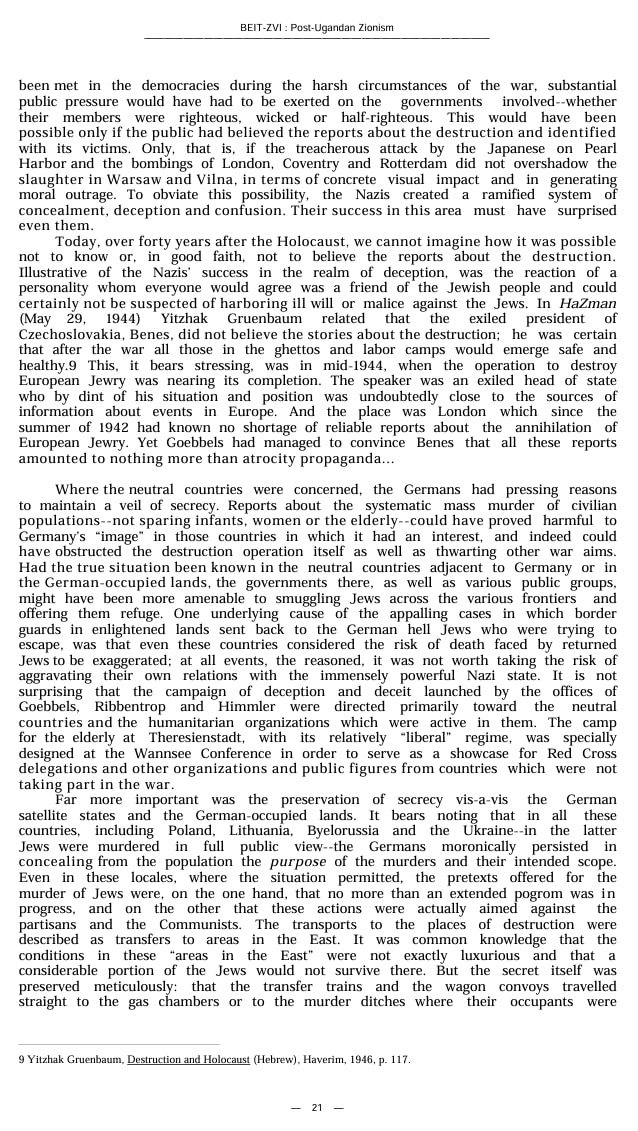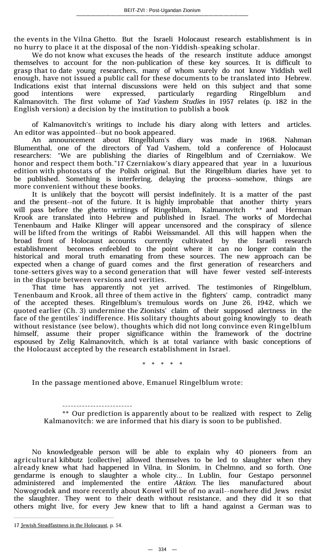 As we were researching the Haavara Agreement and Zionists' response to the Holocaust, this excellent book kept coming up as a resource. Although the author, Beit Zvi, was not trained as a historian, his research and analysis are top-notch. This book was one of the first to be released on the subject of Zionists' response to the Holocaust (the Hebrew version was first released in 1977, and this English version was released in the early 1990s), and as you shall see, he even corresponded with David Ben-Gurion and other Zionist leaders, too. Before using his research, we spent a lot of time verifying the sources, and honestly, Zvi's is top quality. Anyhow, we hope you enjoy this format, here is the same version but in PDF format.