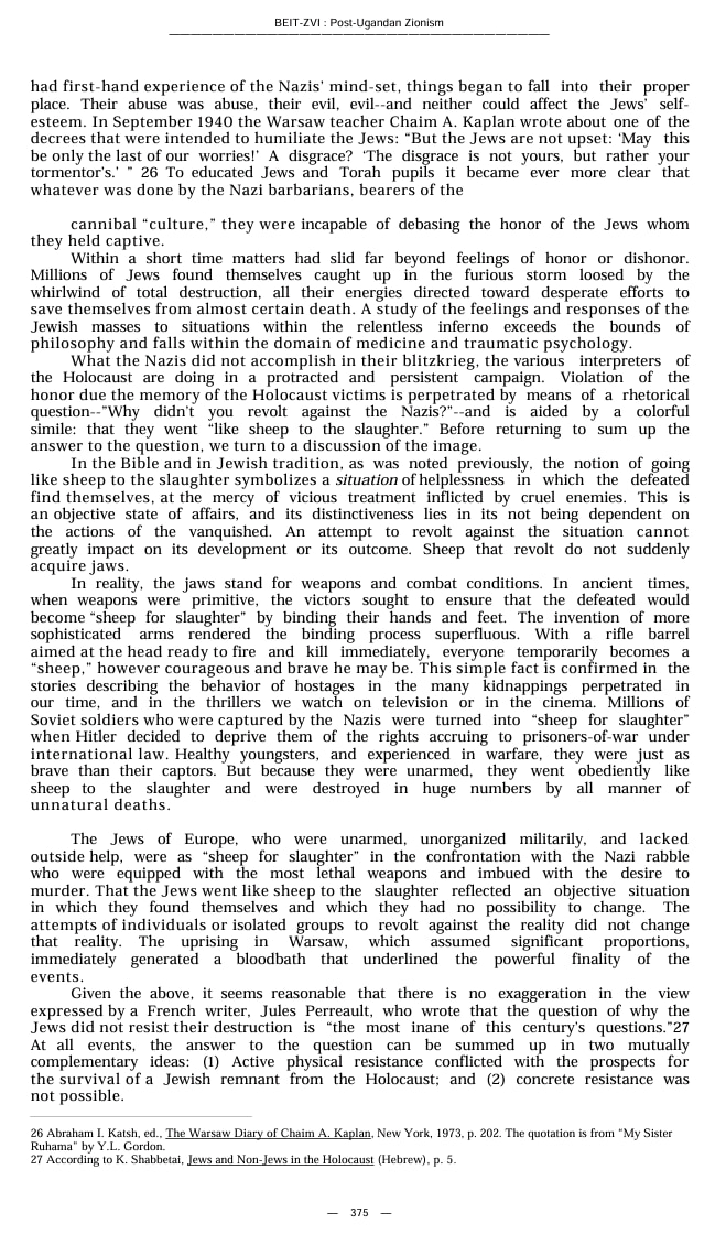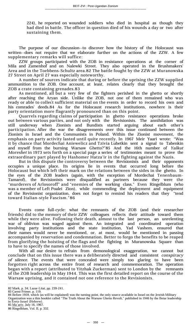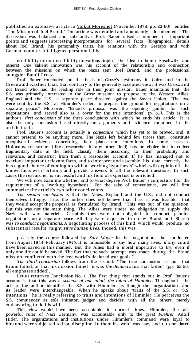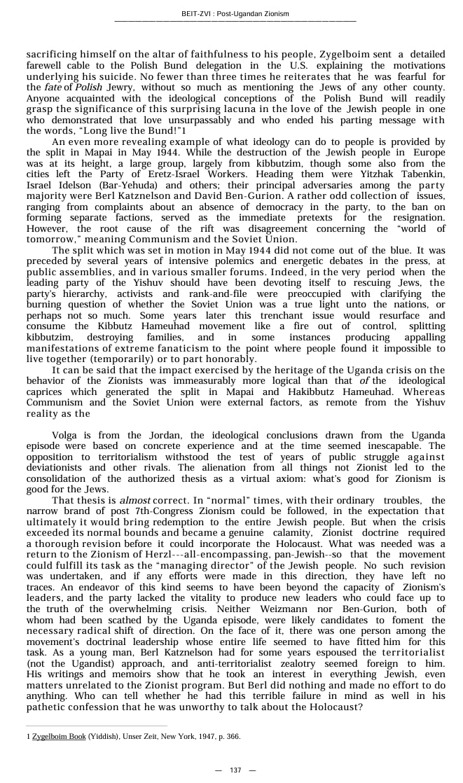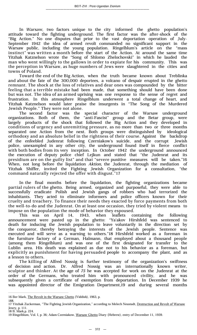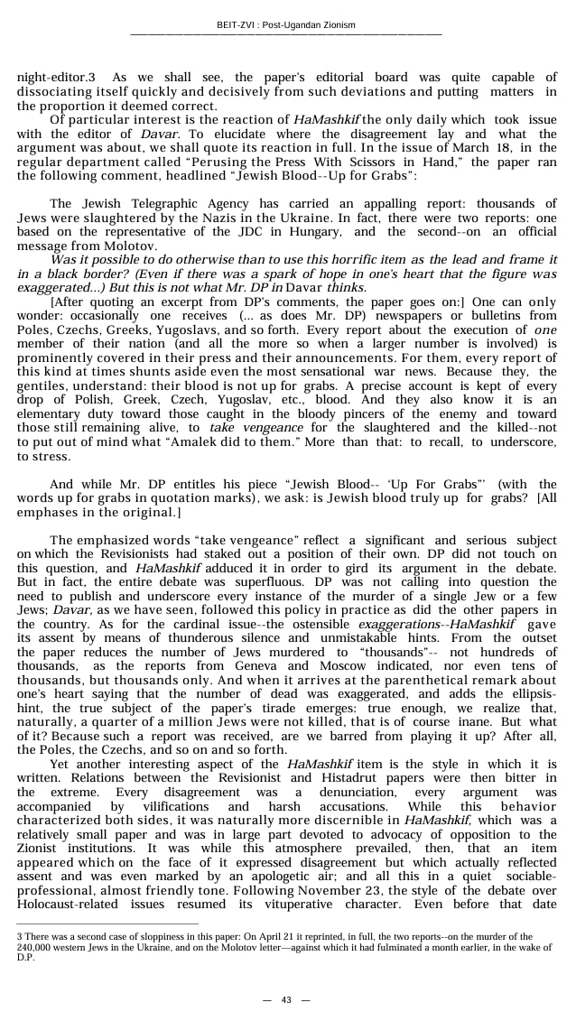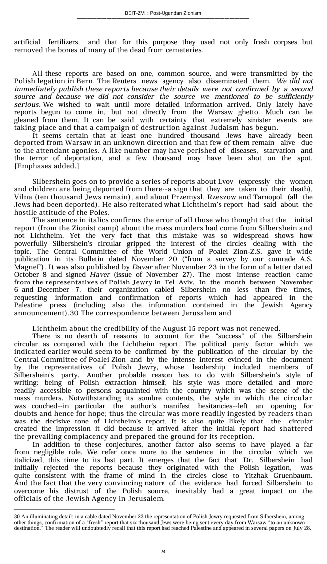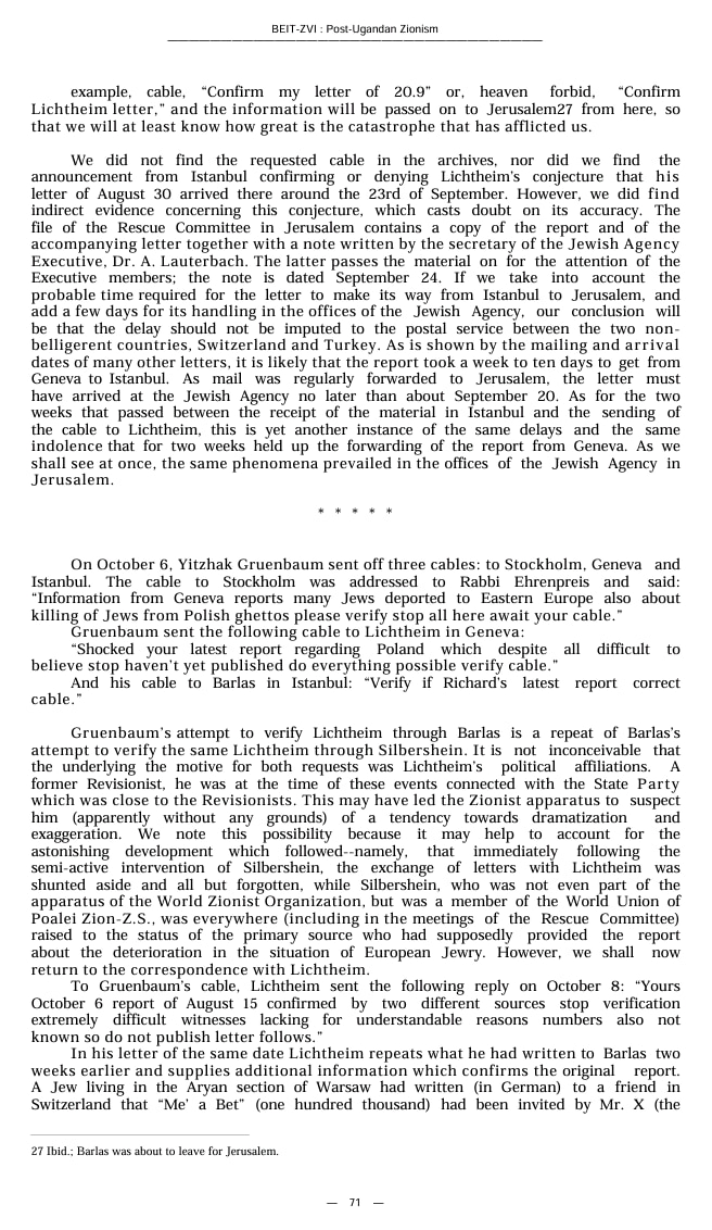 As we were researching the Haavara Agreement and Zionists' response to the Holocaust, this excellent book kept coming up as a resource. Although the author, Beit Zvi, was not trained as a historian, his research and analysis are top-notch. This book was one of the first to be released on the subject of Zionists' response to the Holocaust (the Hebrew version was first released in 1977, and this English version was released in the early 1990s), and as you shall see, he even corresponded with David Ben-Gurion and other Zionist leaders, too. Before using his research, we spent a lot of time verifying the sources, and honestly, Zvi's is top quality. Anyhow, we hope you enjoy this format, here is the same version but in PDF format.