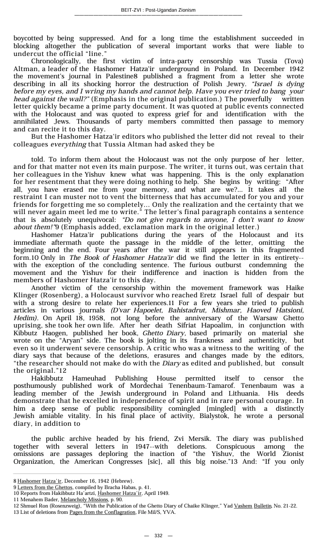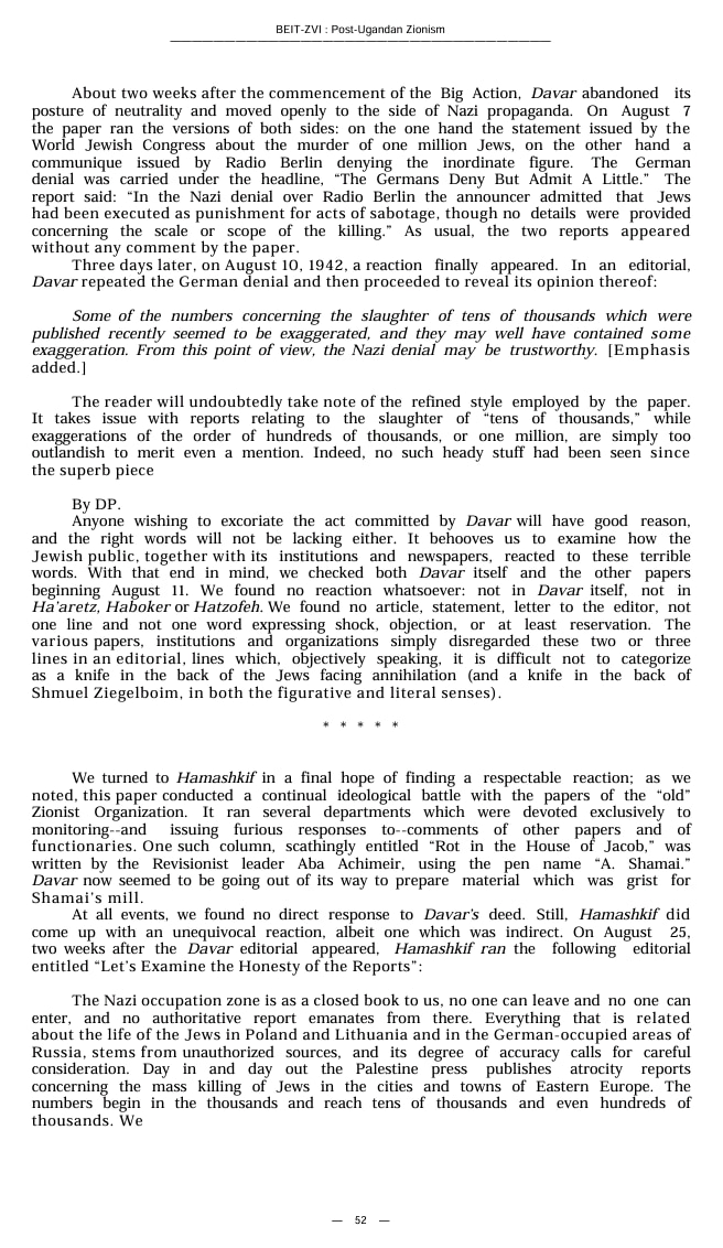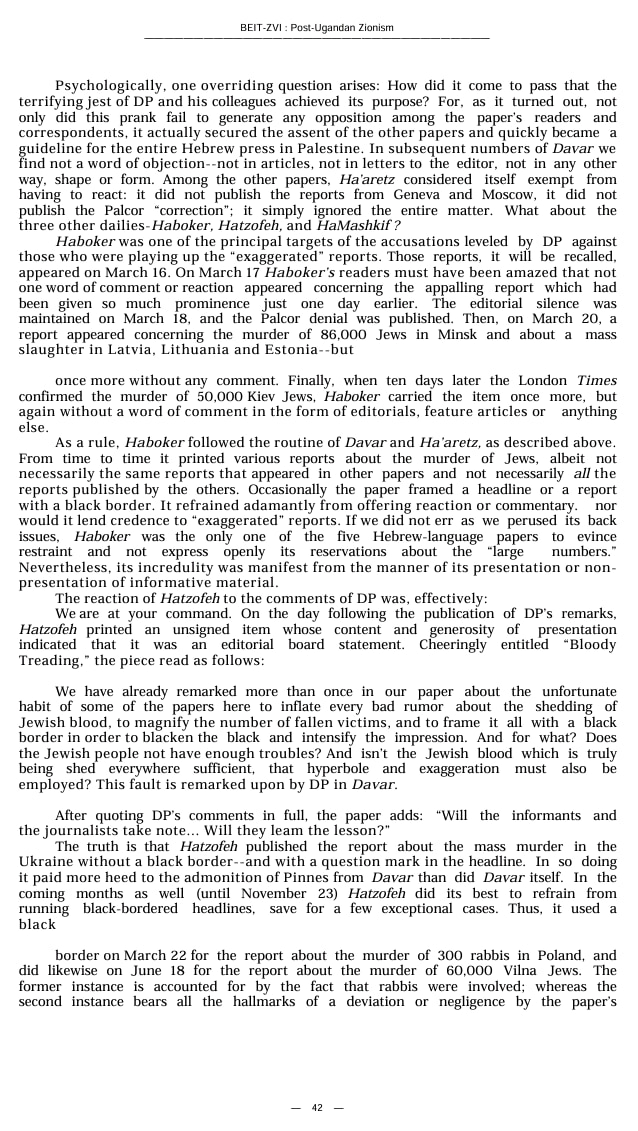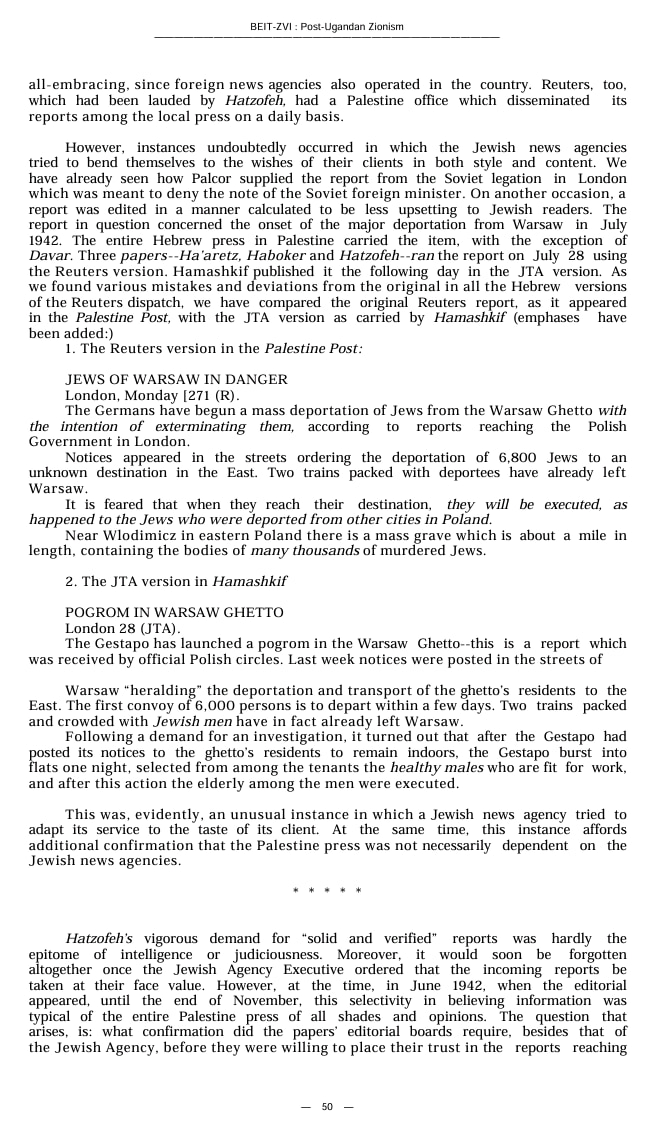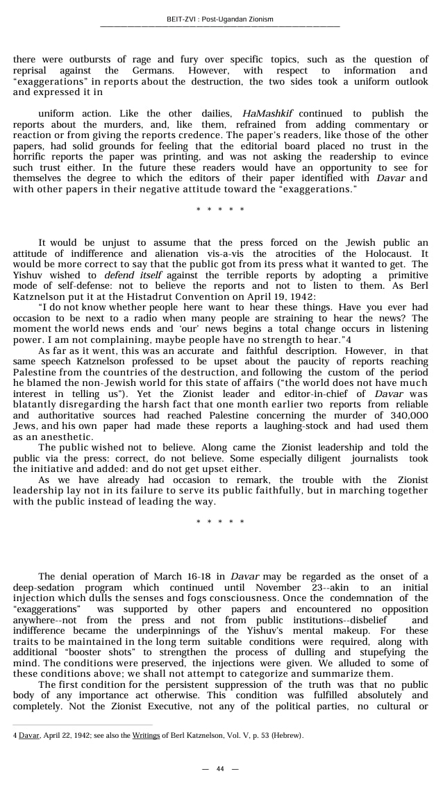 It was chilling to read the last two paragraphs. Beit-Zvi here is talking about how Israel's censorship worked since WWII. In our humble opinion, all that comes from Israelis should be treated as trash until proven otherwise. It must have been hard for him to write this; he had no joy writing about his people: