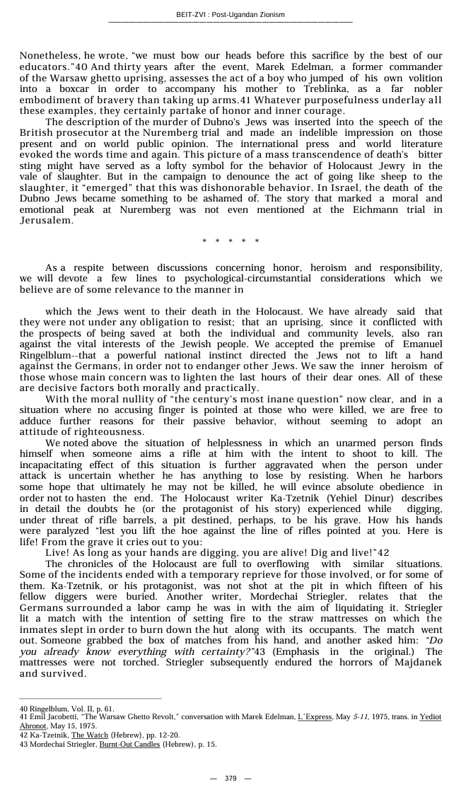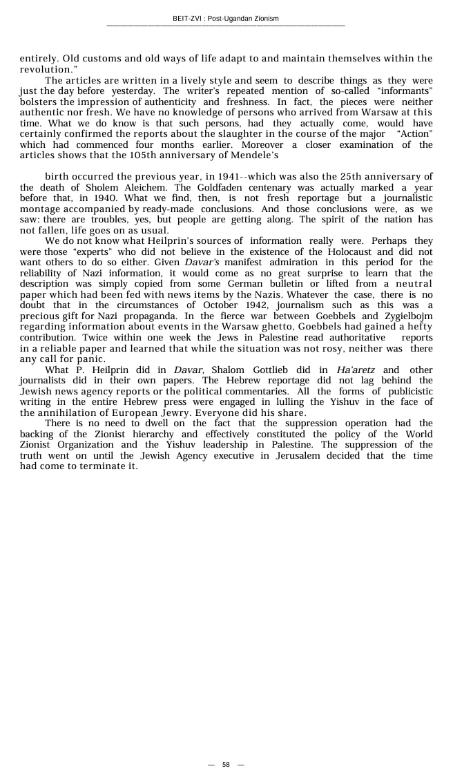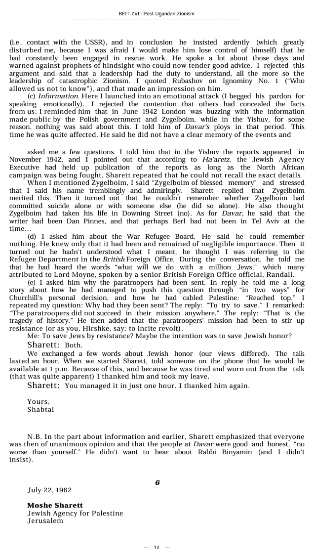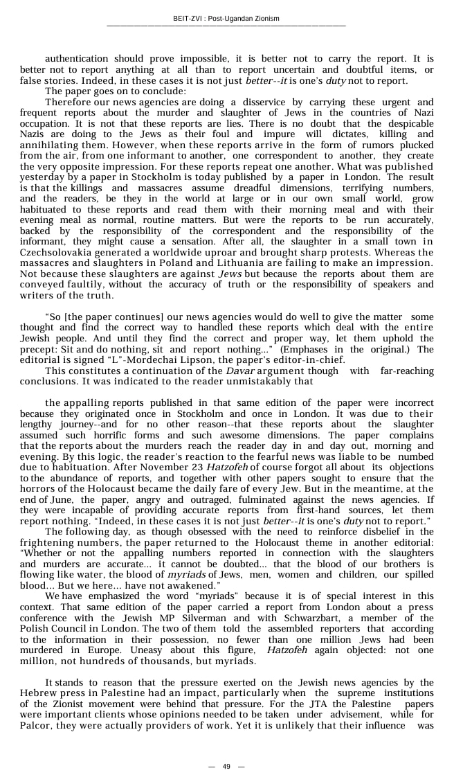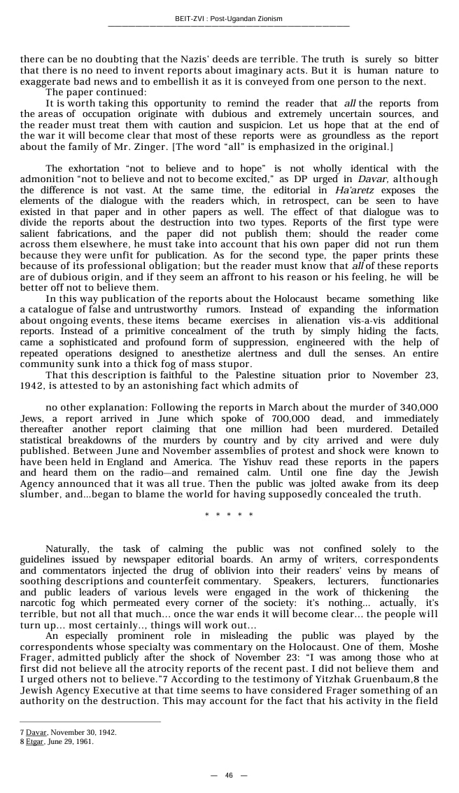 It was chilling to read the last two paragraphs. Beit-Zvi here is talking about how Israel's censorship worked since WWII. In our humble opinion, all that comes from Israelis should be treated as trash until proven otherwise. It must have been hard for him to write this; he had no joy writing about his people: