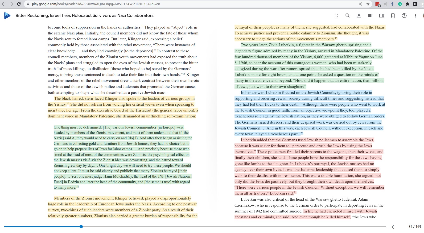 D) Even in the case of Russian Jewry, the mass majority of them favored immigrating to the US, Canada, and Australia, and that continued until such an option was closed (thanks to AIPAC lobbying efforts) after the collapse of the Soviet Union in the early 1990s. What was tragically funny that 75% of the last million and a half who immigrated to Israel (in the early 1990s from the former Soviet republics) were not even Jewish! The vast majority of them were economic migrants, and most of them would just leave if a well to do nation would grant them visas. E) After WWII ended, the Jews who survived the Holocaust were so mad with Zionists which drove them to immigrate to countries other than Palestine. It seems that the majority of KAPOs in the ghettos were Zionists and that destroyed much of the trust between them (see Dan Porat, p . 35-36). This is a major taboo subject in Jewish communities around the world that got Hannah Arendt canceled when she exposed this phenomenon in 1963 (see her "Eichmann in Jerusalem" book, Chapter VII - p. 153-178).