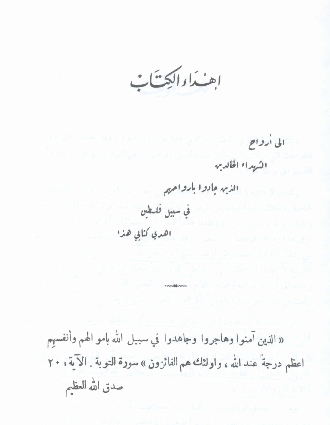 النكبة الفلسطينية والفردوس المفقودللأستاذ عارف العارف - المجلد الأول - إهداء الكتاب - صفحة 2 |