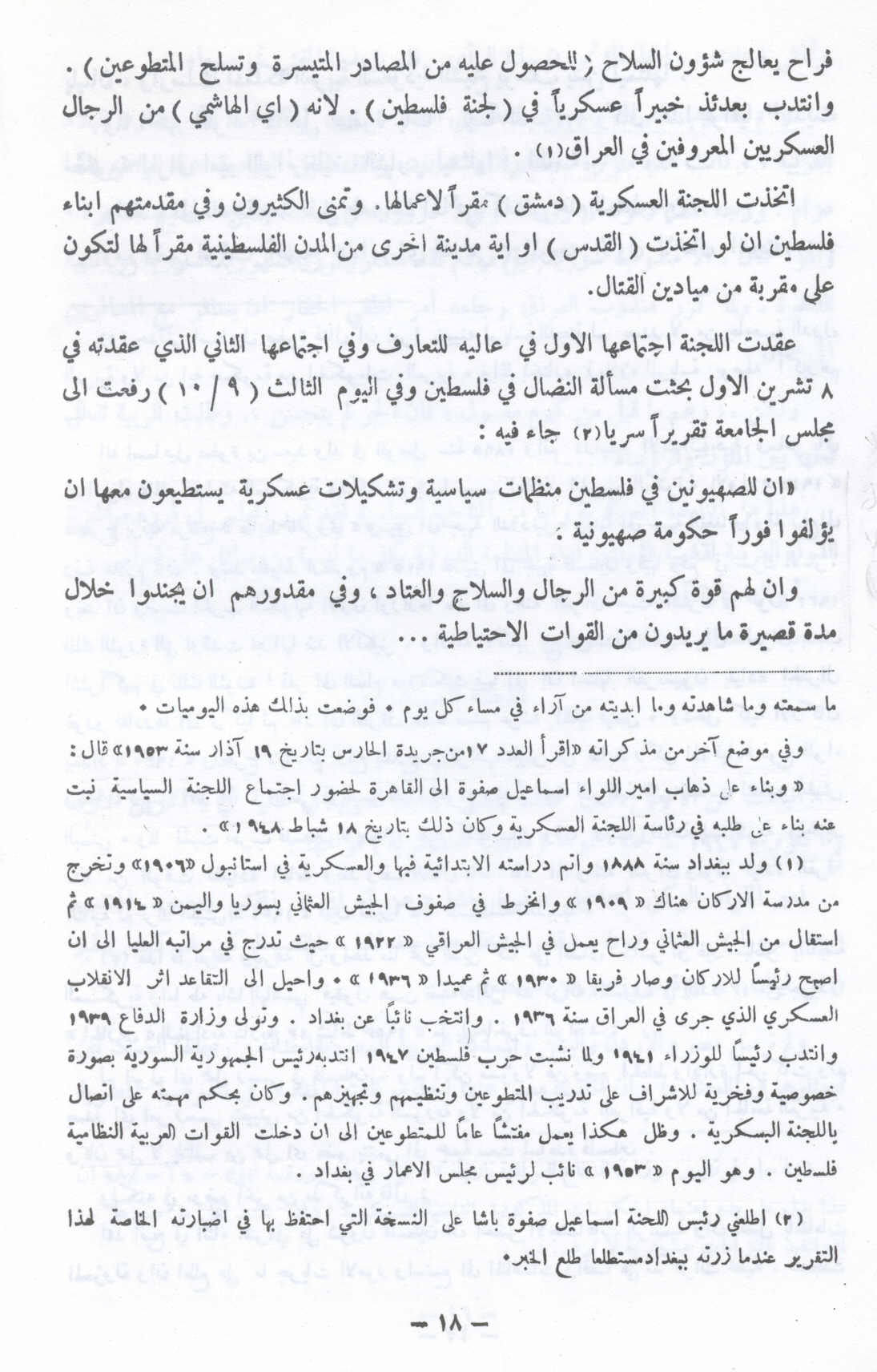 (2) أطلعني رئيس اللجنة إسماعيل صفوة باشا على النسخة التي احتفظ بها في إضبارته الخاصة لهذا التقرير عندما زرته ببغداد مستطلعا طلع الخبر .