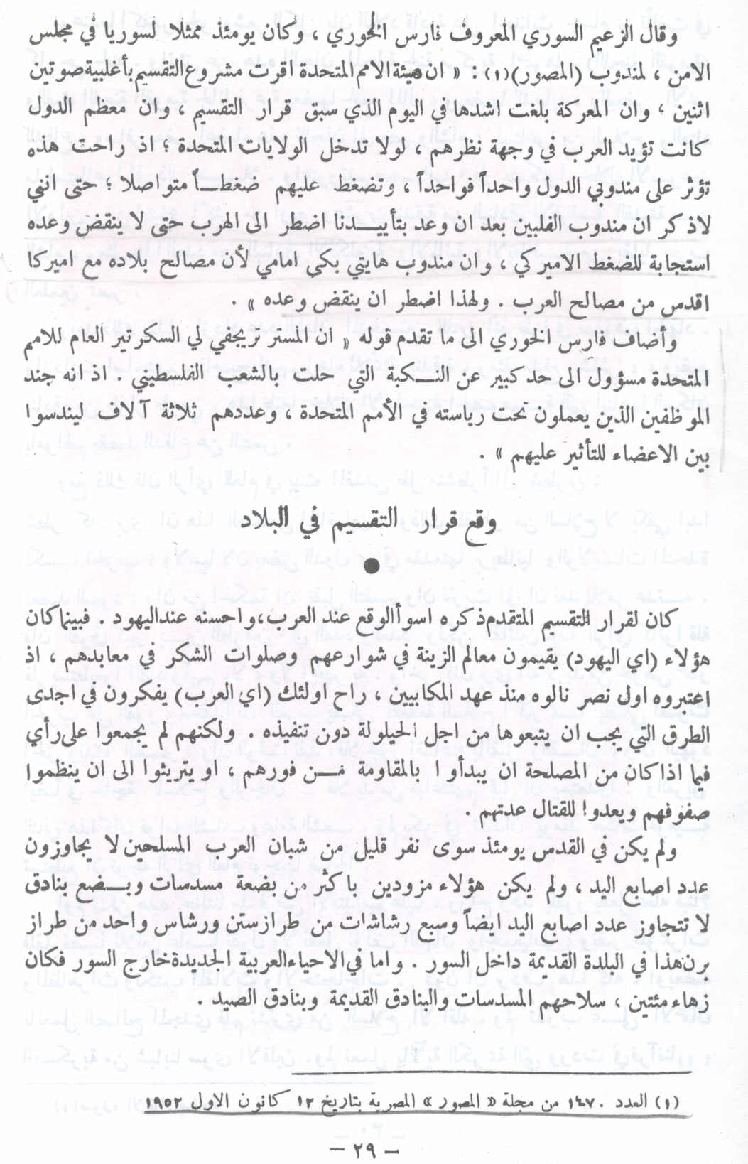 وقع قرار التقسيم على البلاد - 8 كانون أول 1947 -- النكبة الفلسطينية والفردوس المفقود للأستاذ عارف العارف |