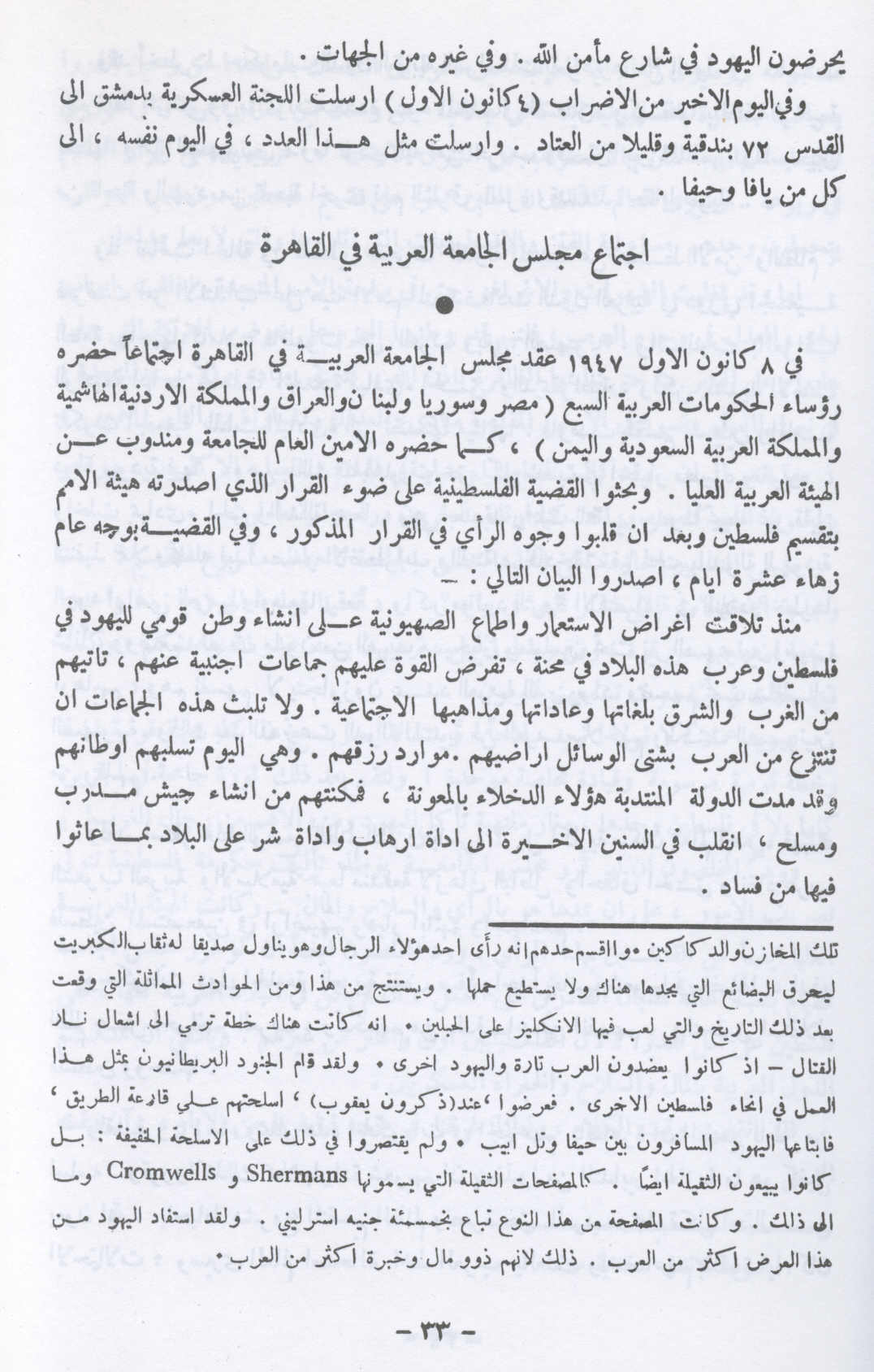 إجتماع مجلس الجامعة العربية في القاهرة -- النكبة الفلسطينية والفردوس المفقود للأستاذ عارف العارف |