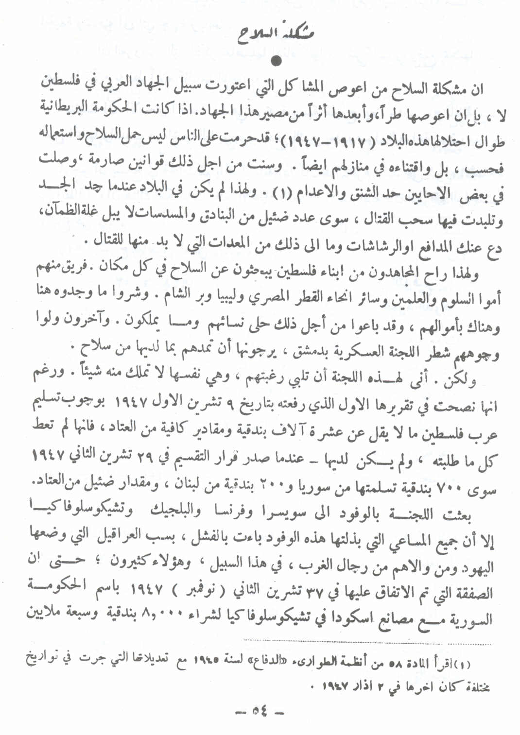 مشكلة السلاح --النكبة الفلسطينية والفردوس المفقود للأستاذ عارف العارف |