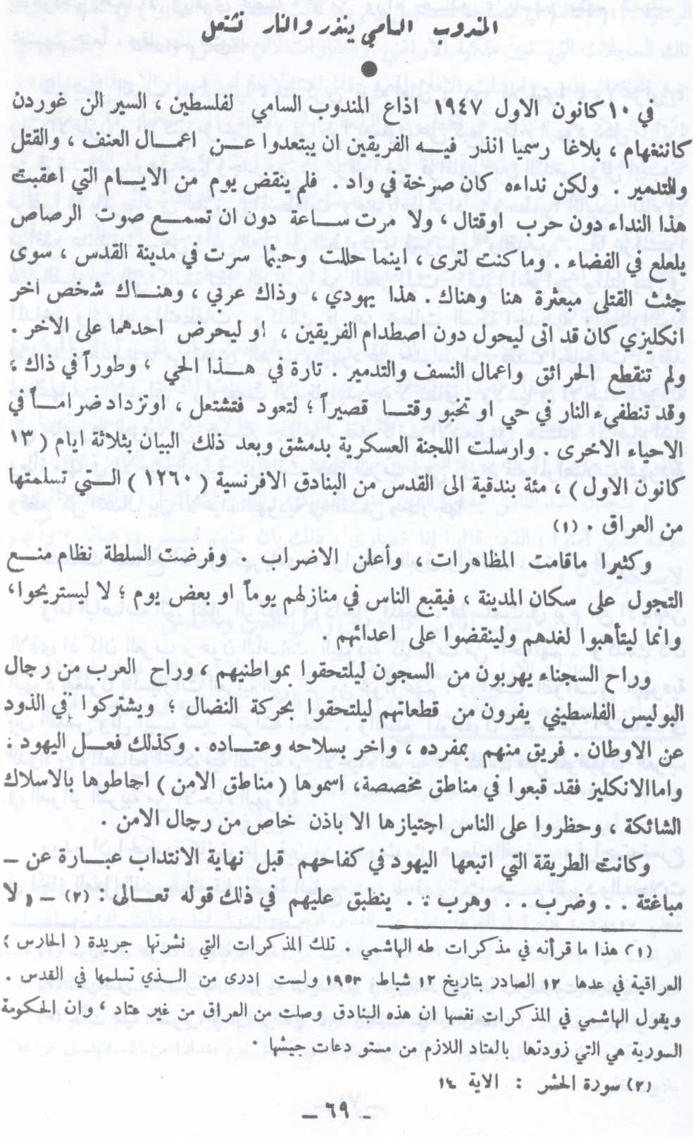 المندوب السامي يُنذر والنار تشتعل -- النكبة الفلسطينية والفردوس المفقود للأستاذ عارف العارف |