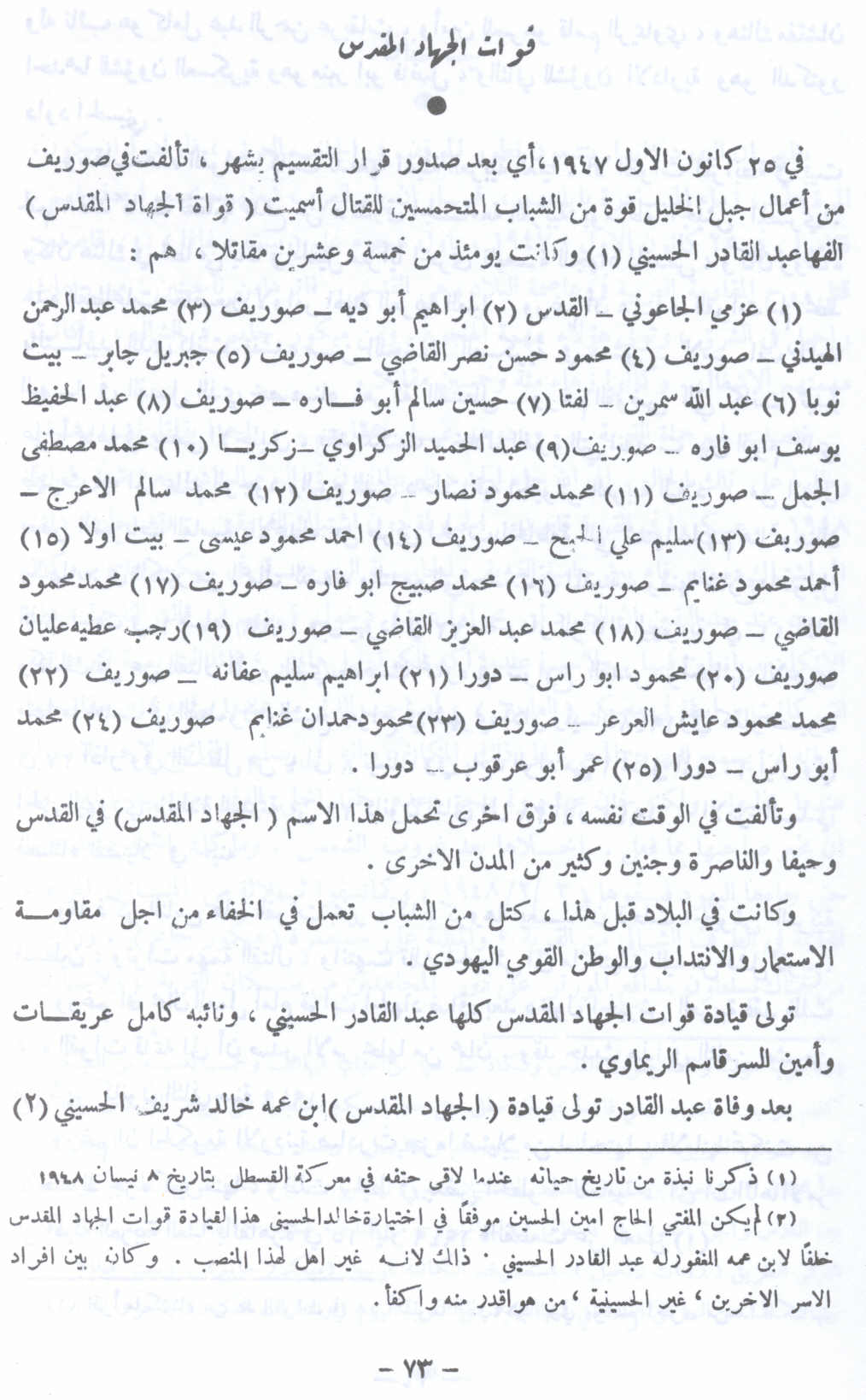قوات الجهاد المقدس - النكبة الفلسطينية والفردوس المفقود للأستاذ عارف العارف |