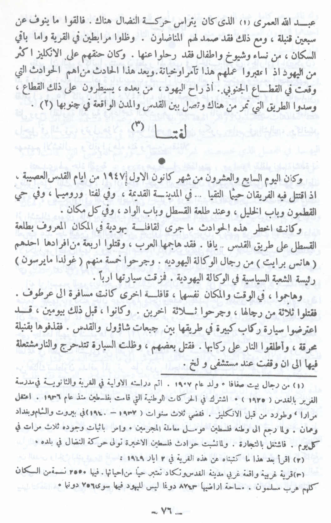 نبذة عن المجاهد عبد الله العمري (أسفل الصفحة) -لفتا - 27 كانون أول 1947 - النكبة الفلسطينية والفردوس المفقود للأستاذ عارف العارف |