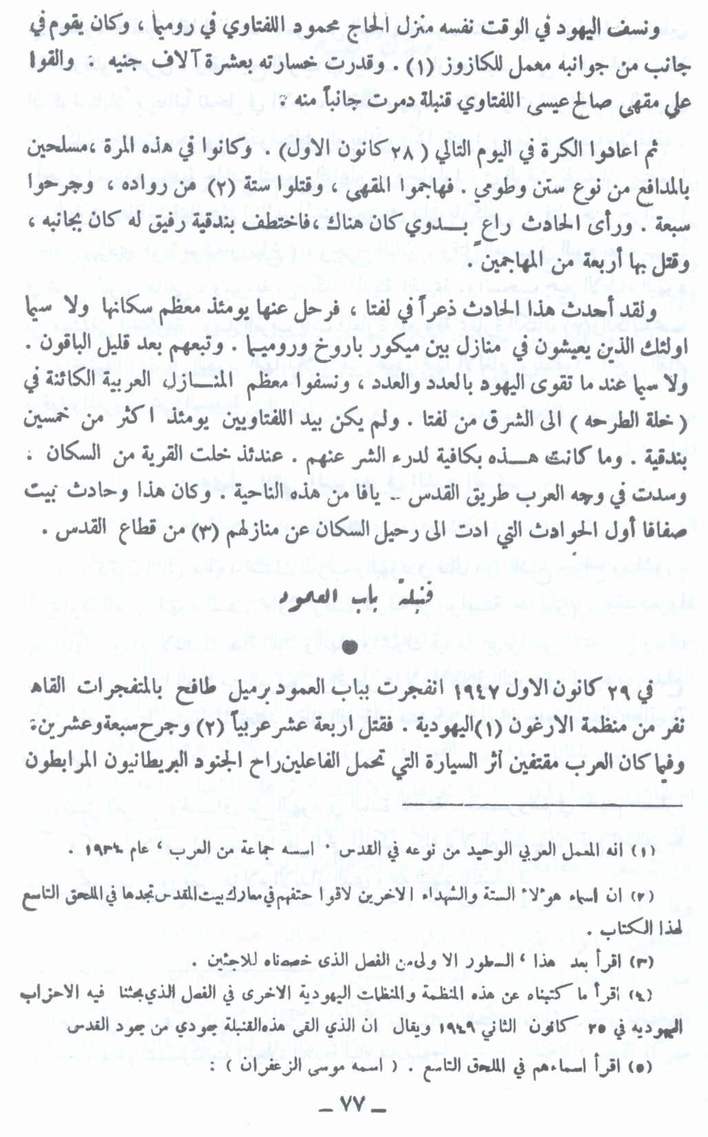 قنبلة باب العمود (أسفل الصفحة) - 29 كانون أول 1947 - النكبة الفلسطينية والفردوس المفقود للأستاذ عارف العارف |