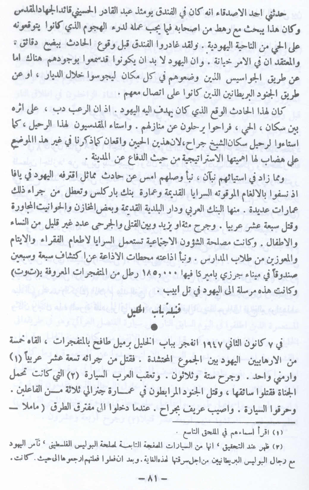 قنبلة باب الخليل (أسفل الصفحة) - 7 كانون ثاني 1947 - النكبة الفلسطينية والفردوس المفقود للأستاذ عارف العارف |
