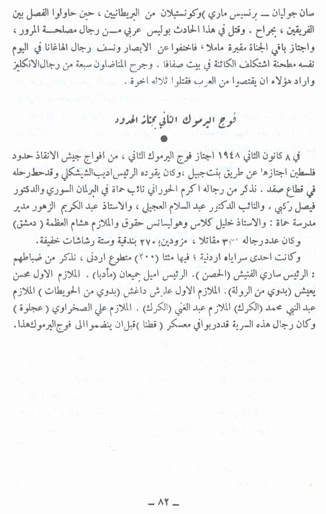 فوج اليرموك الثاني يجتاز الحدود - 8 كانون ثاني 1947 - النكبة الفلسطينية والفردوس المفقود للأستاذ عارف العارف |